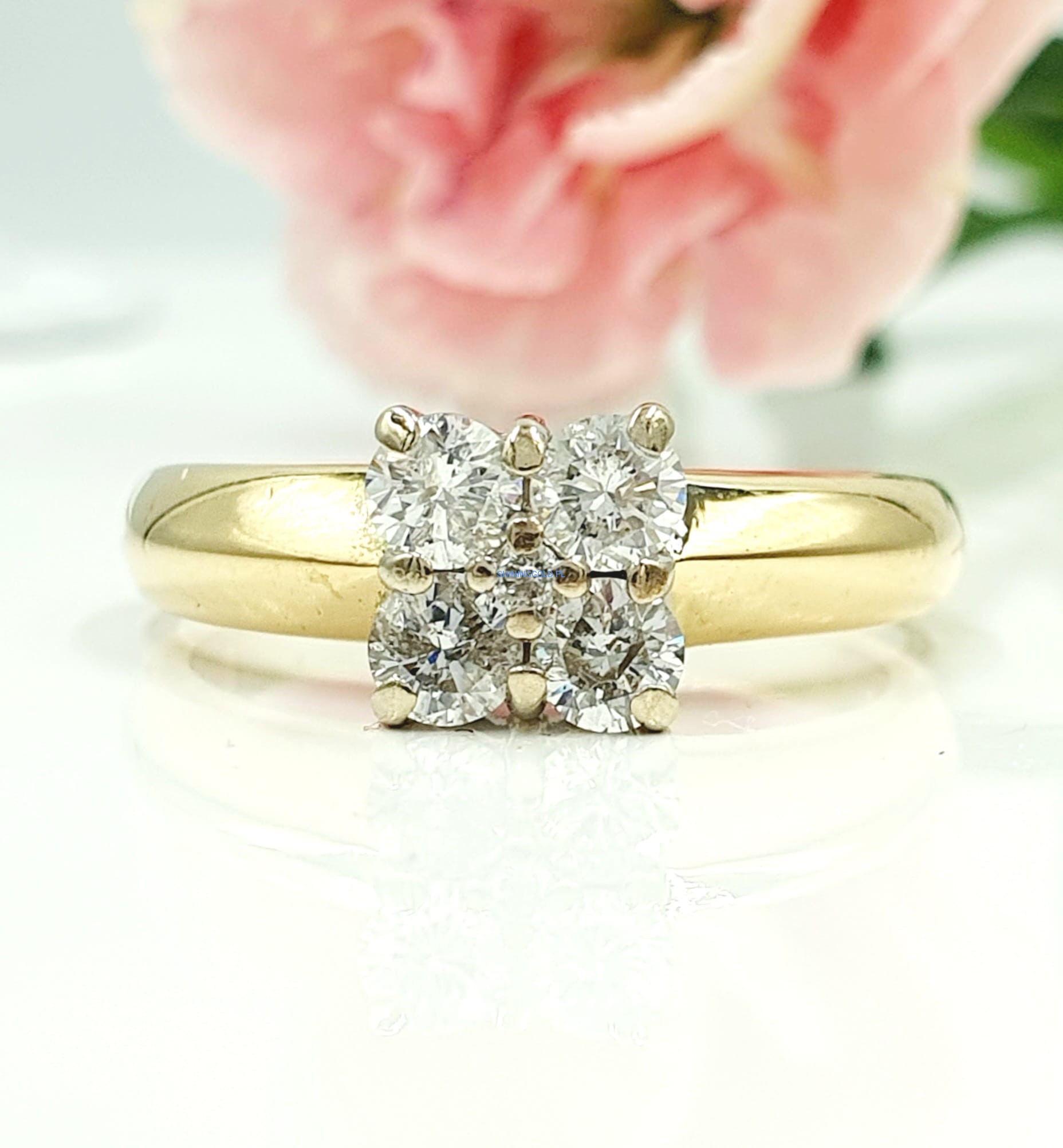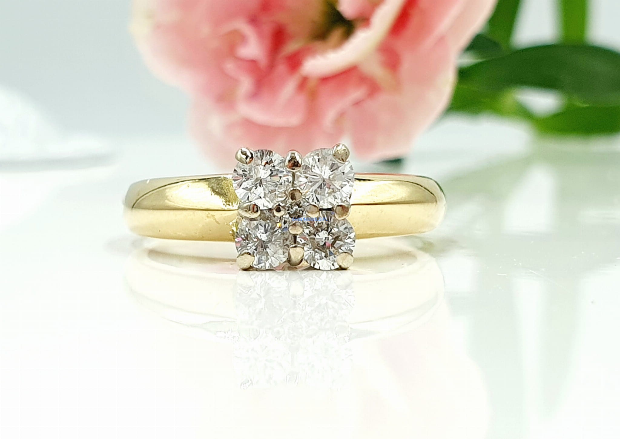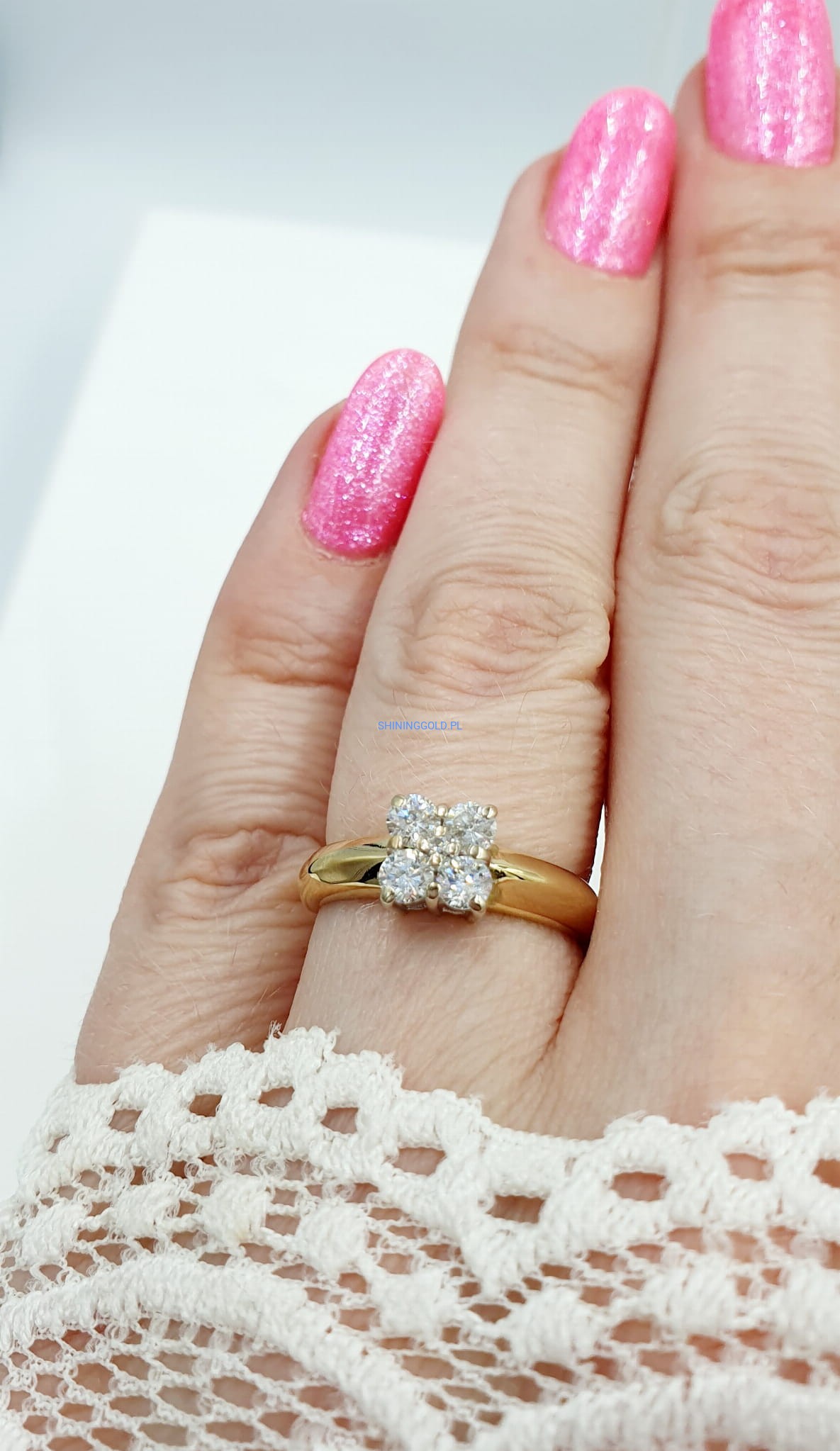 Dodaj ten wyjątkowy złoty pierścionek z diamentami do swojej kolekcji biżuterii, ciesząc się jego niezwykłym blaskiem i elegancją każdego dnia.