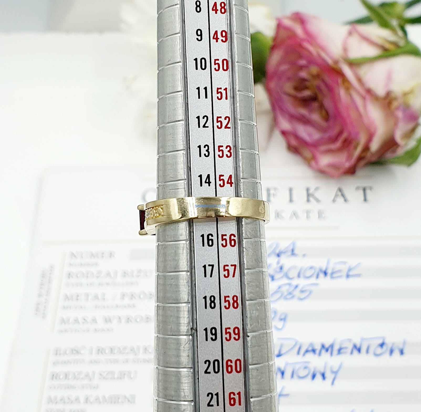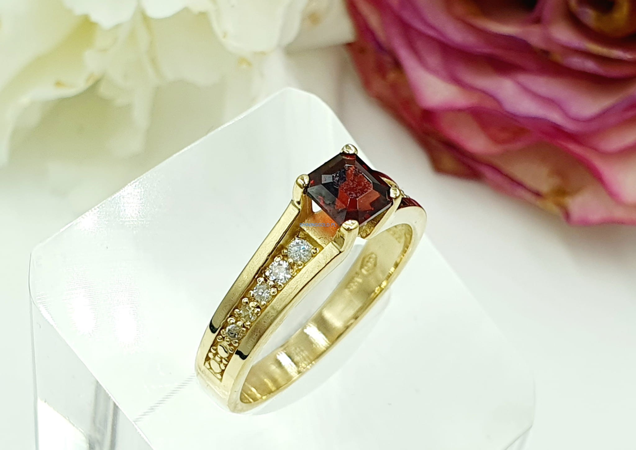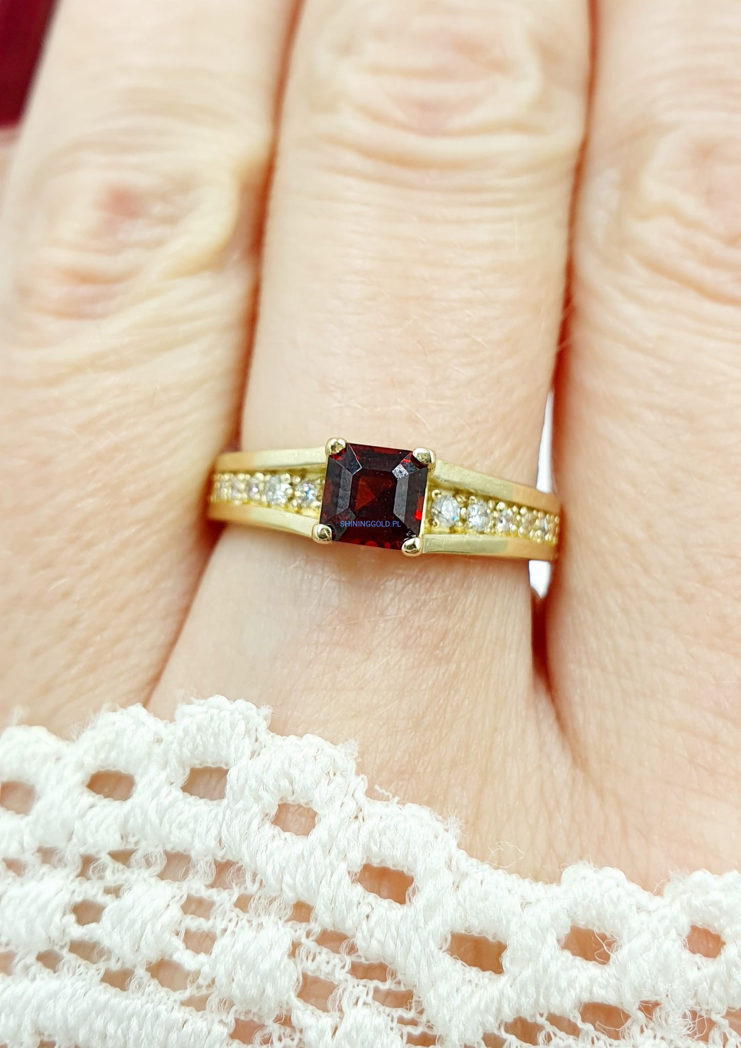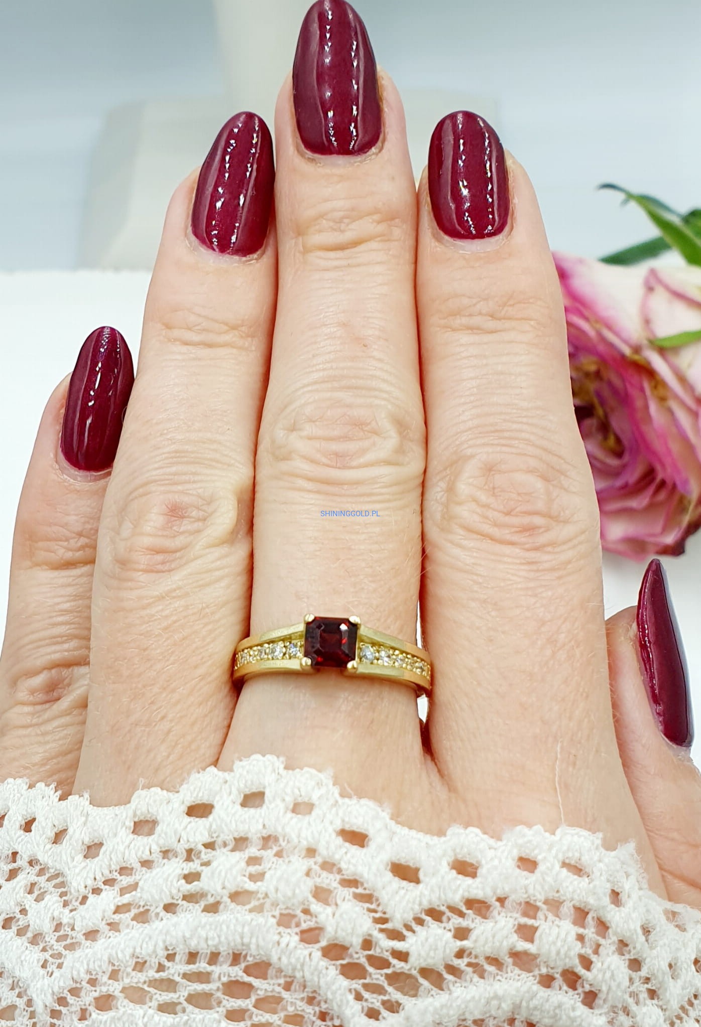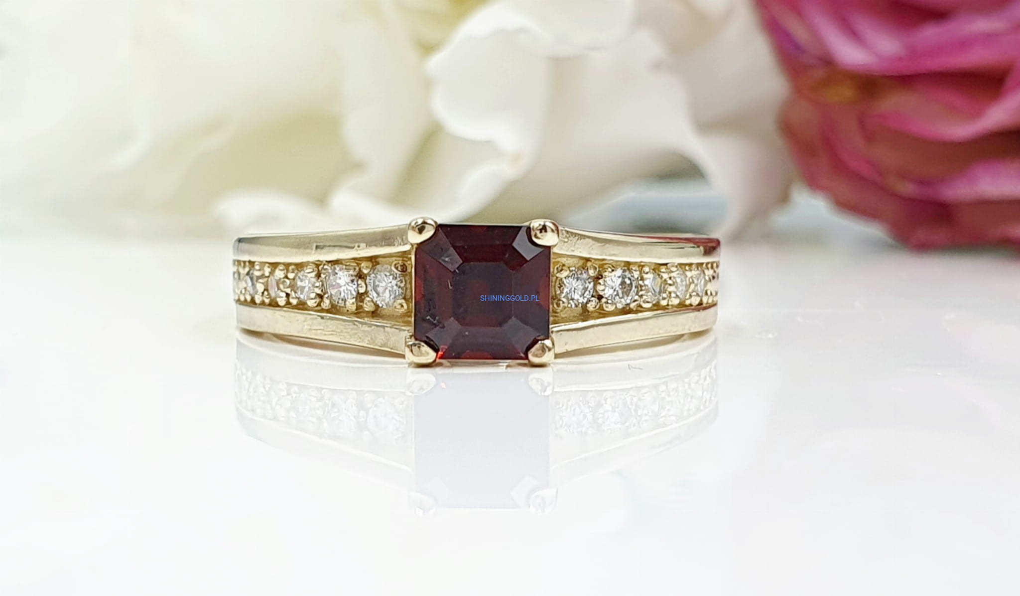 Złoty pierścionek z Granatem i Diamentami (1099.WS)