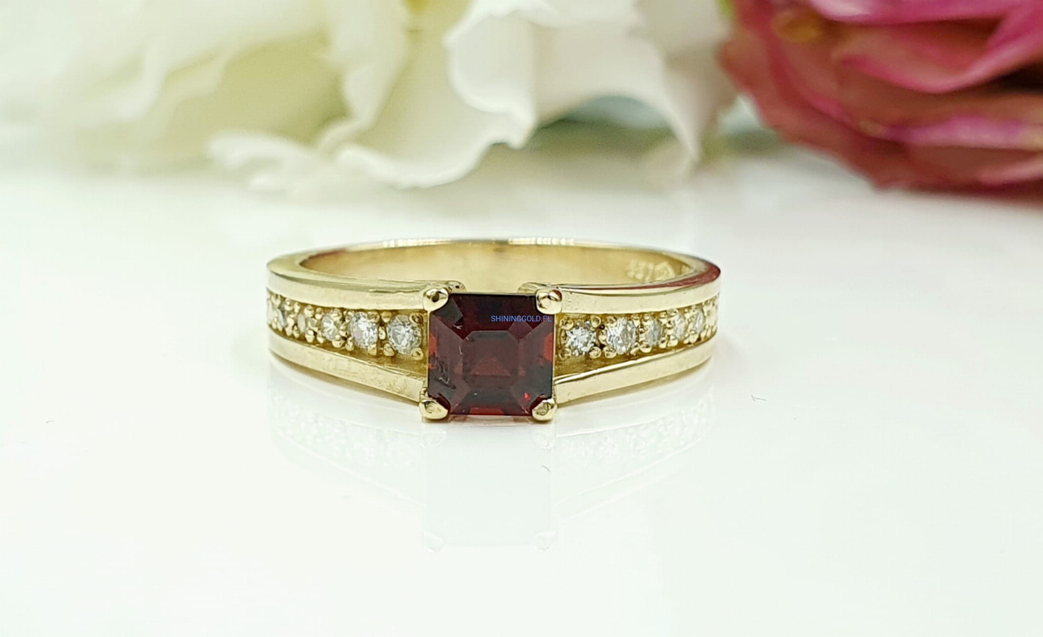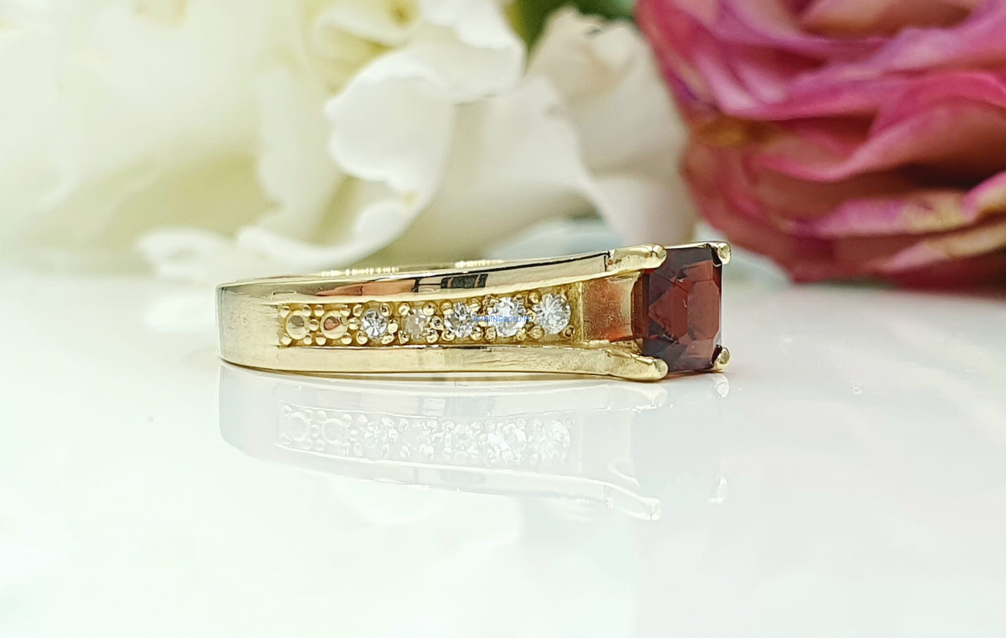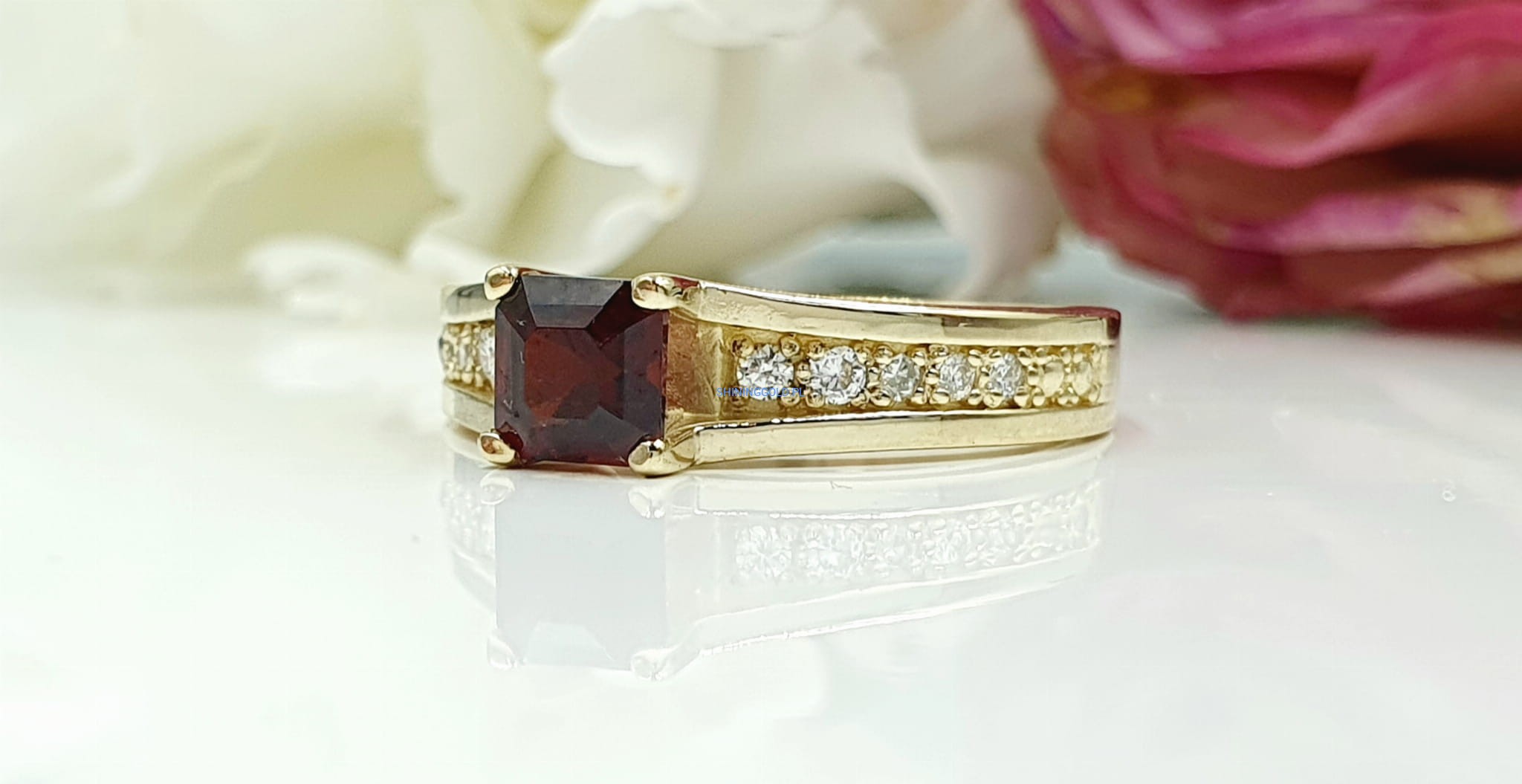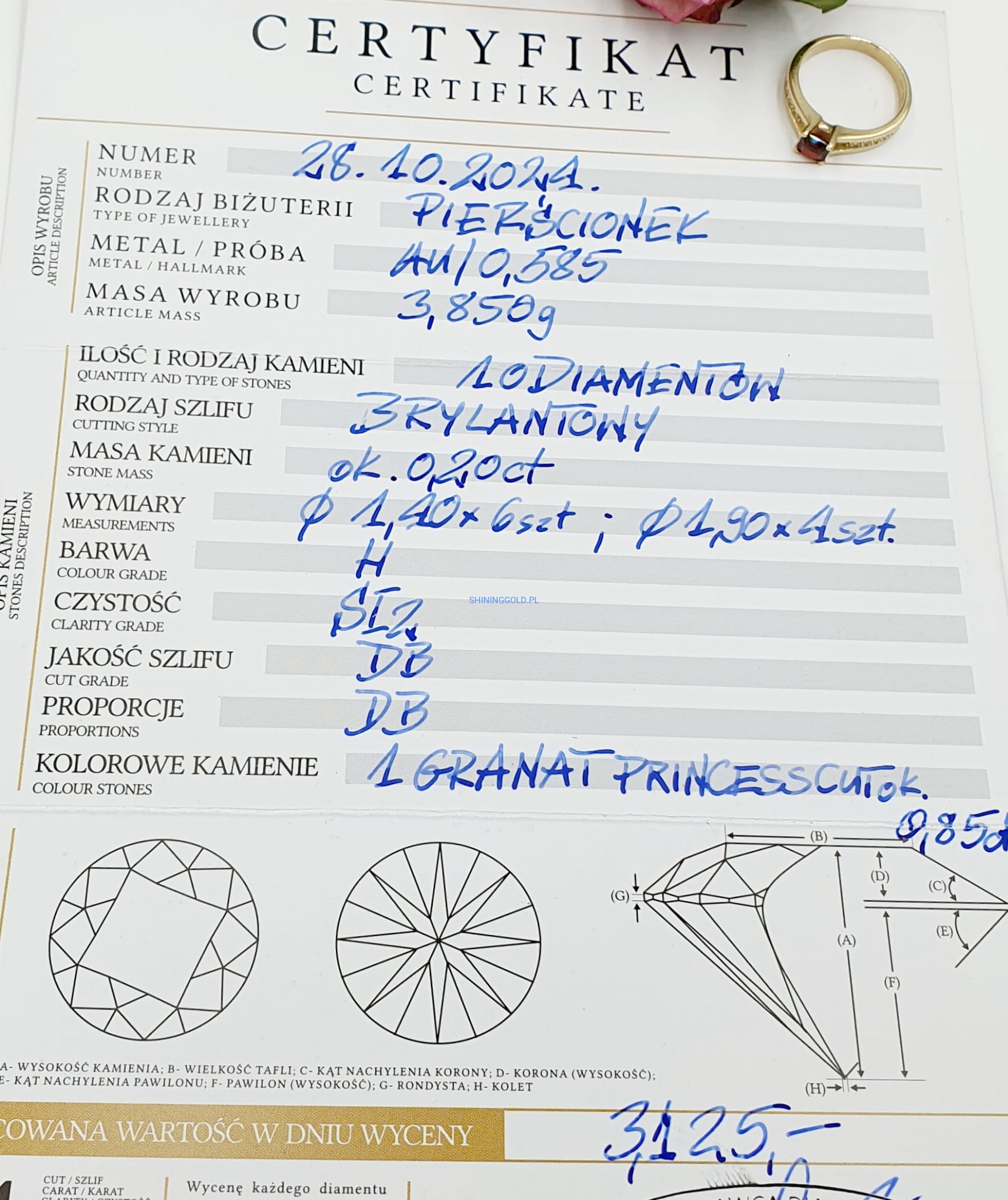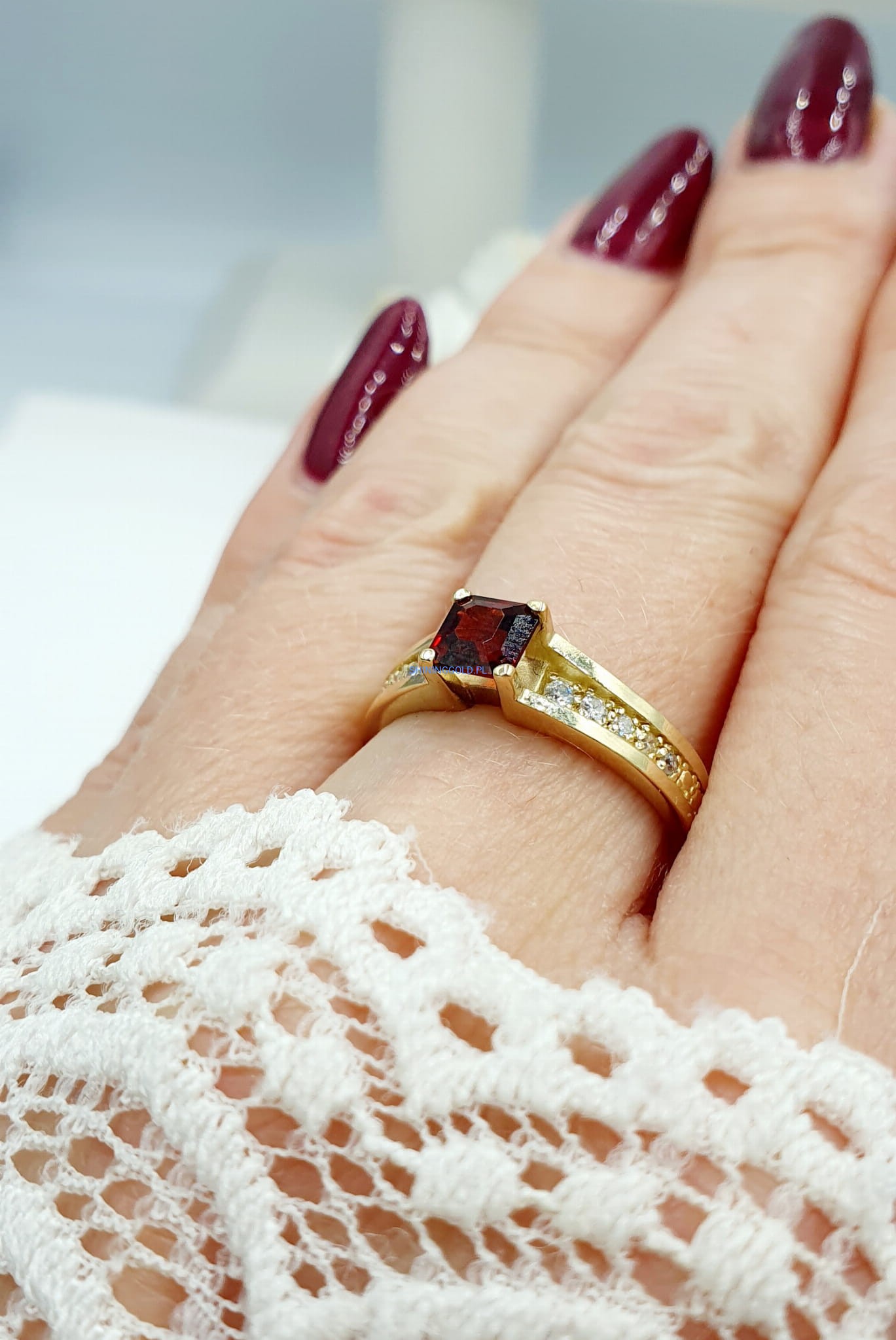 Złoty pierścionek z Granatem i Diamentami (1099.WS)