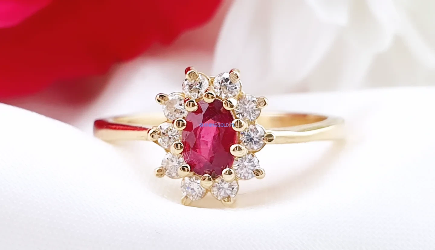 Złoty pierścionek z naturalnym rubinem i diamentami – klasyka w biżuteryjnym wydaniu