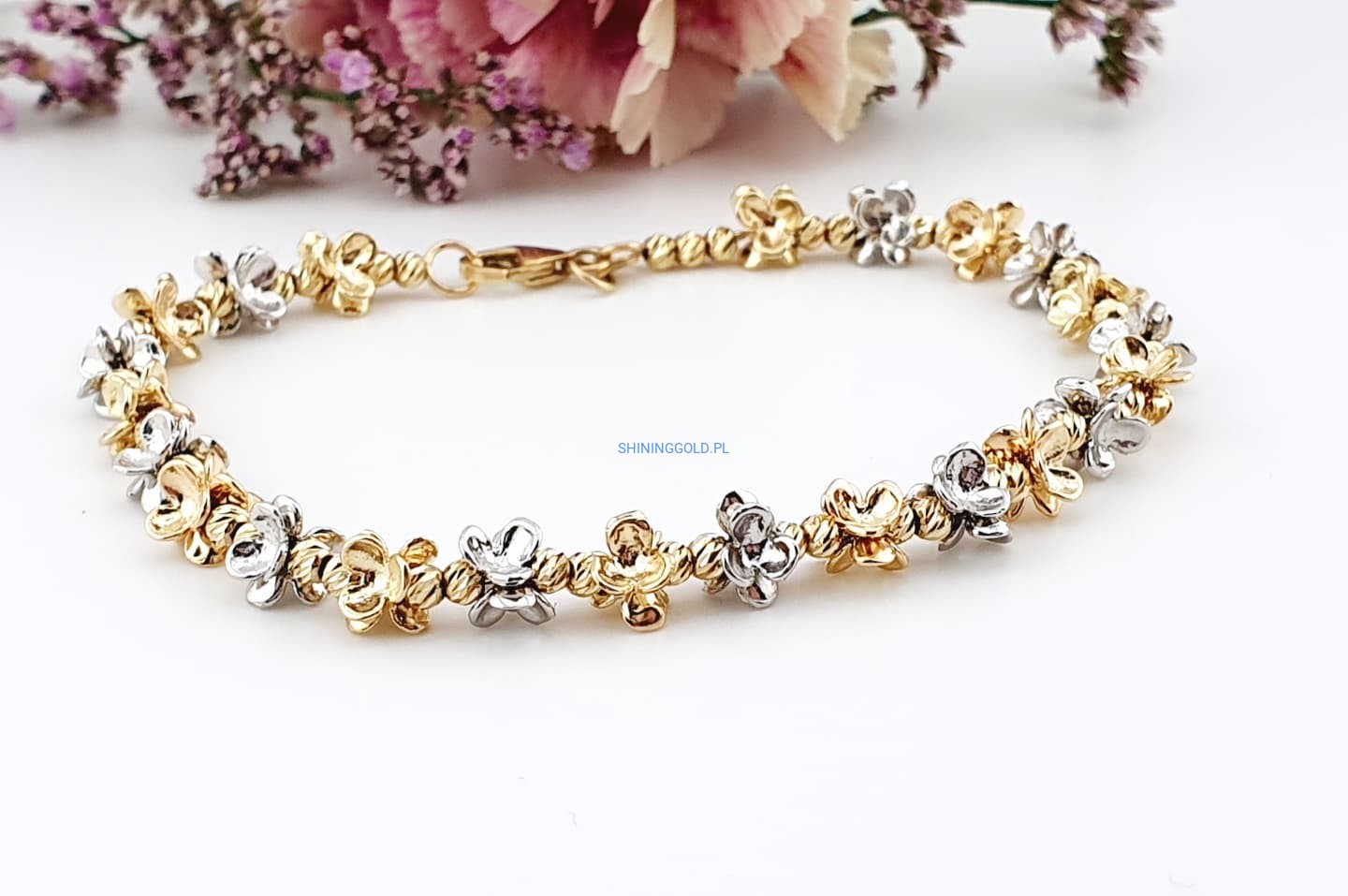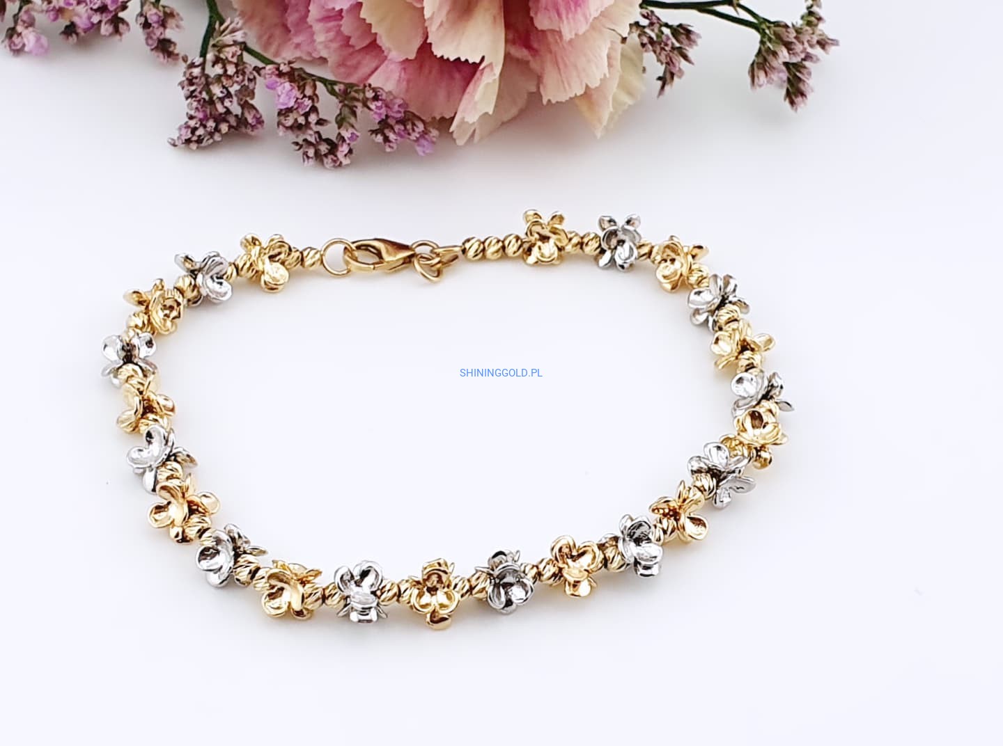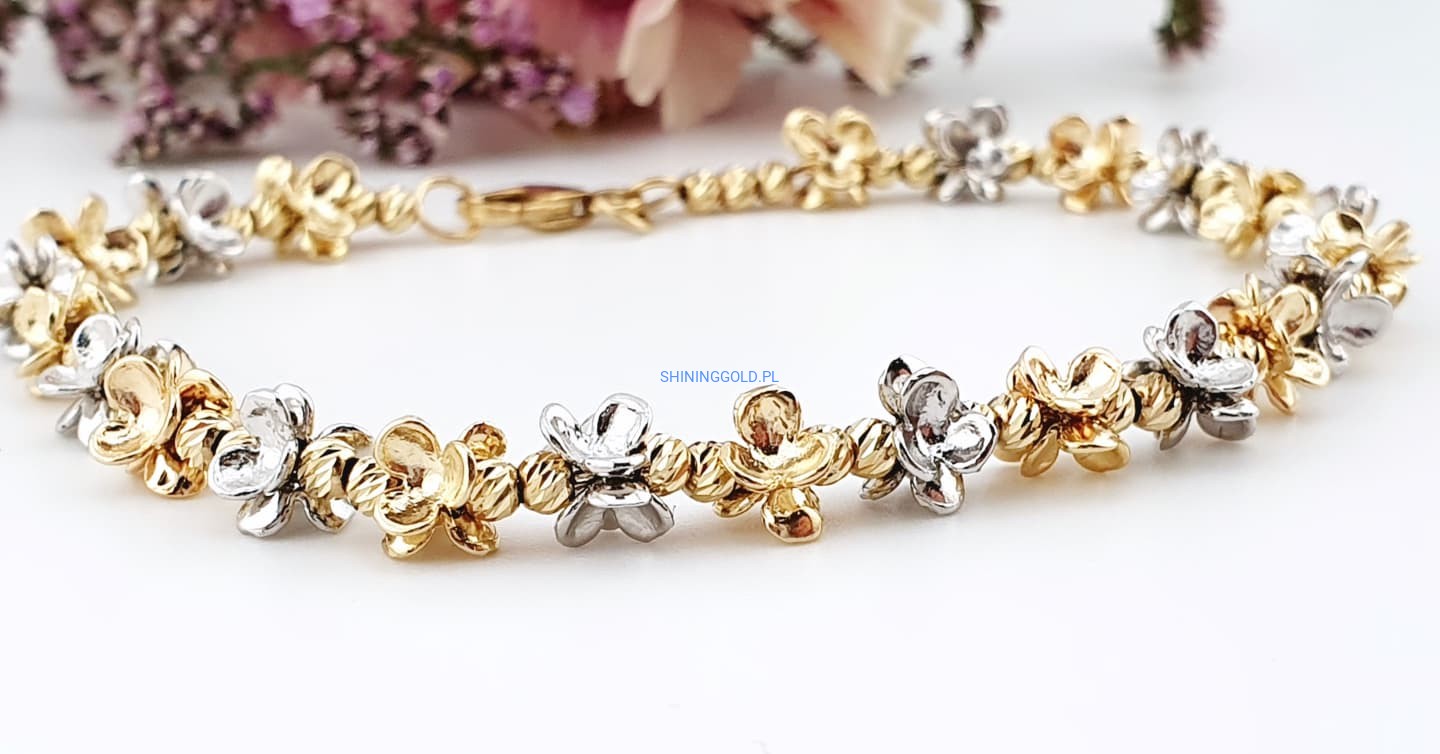 Złota, nowa Bransoletka z Dwukolorowymi Kwiatuszkami (979.WS)