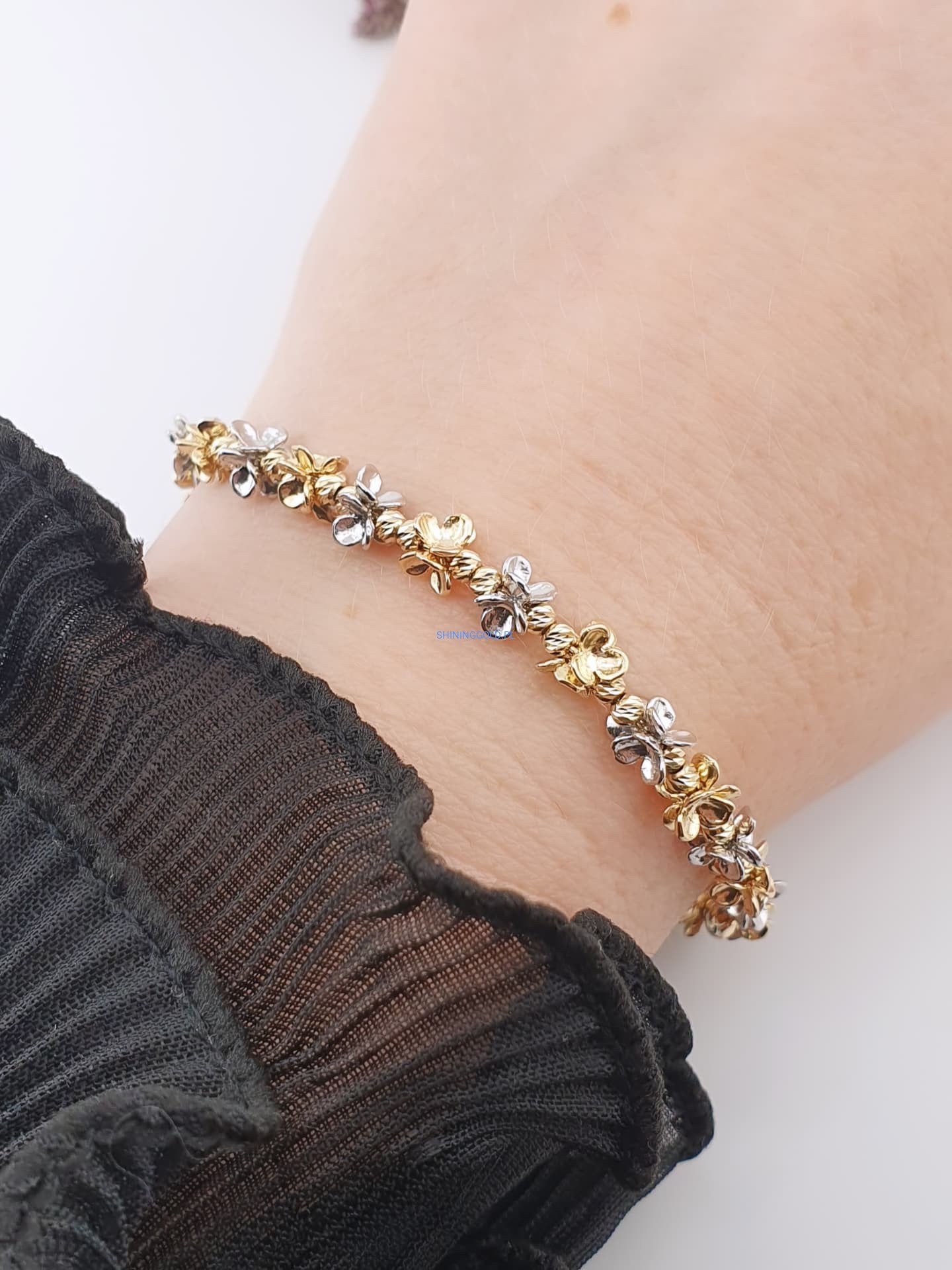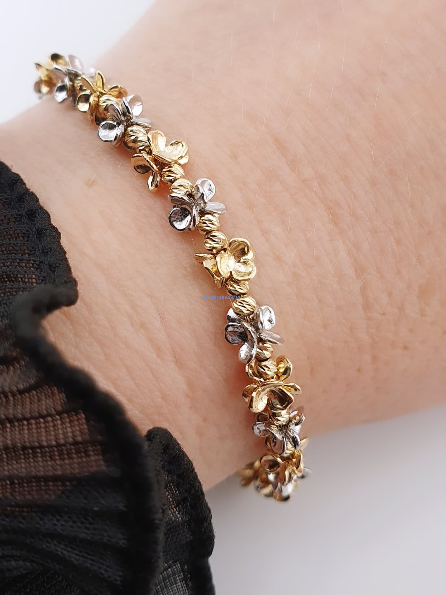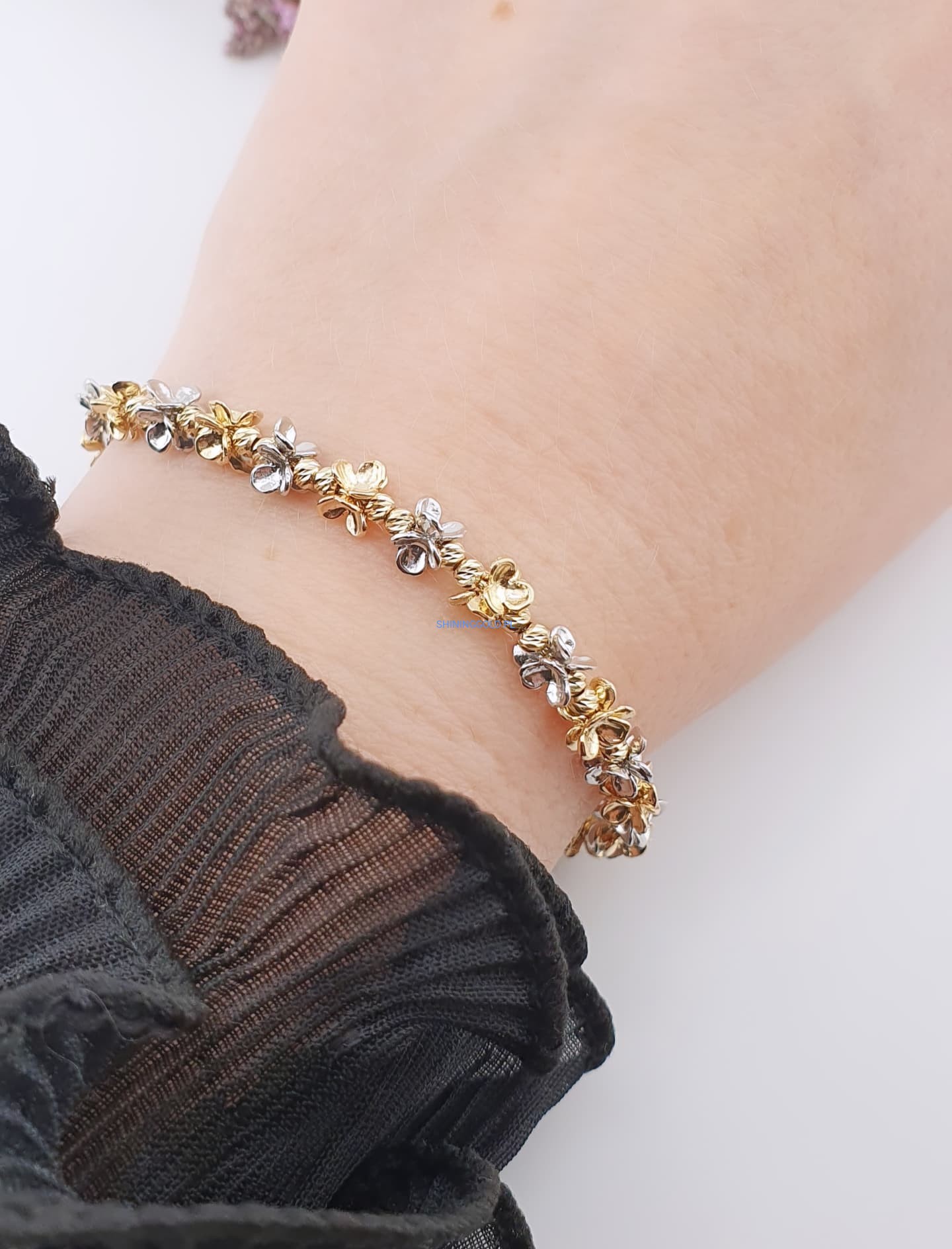 Złota, nowa Bransoletka z Dwukolorowymi Kwiatuszkami (979.WS)