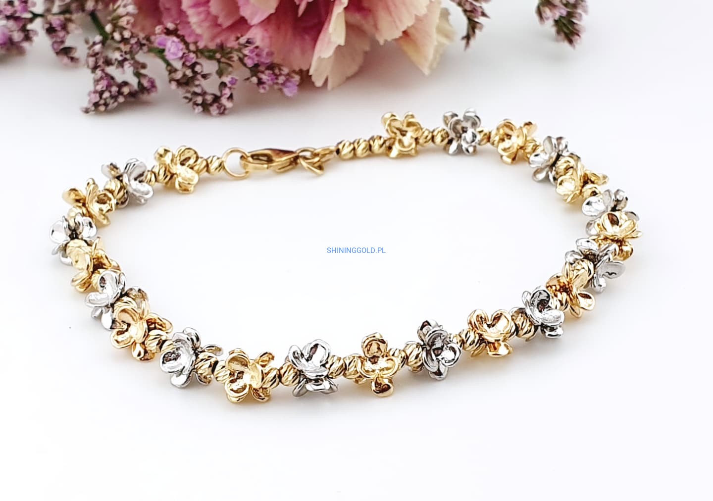 Złota Bransoletka z Dwukolorowymi Kwiatuszkami – Próba 585