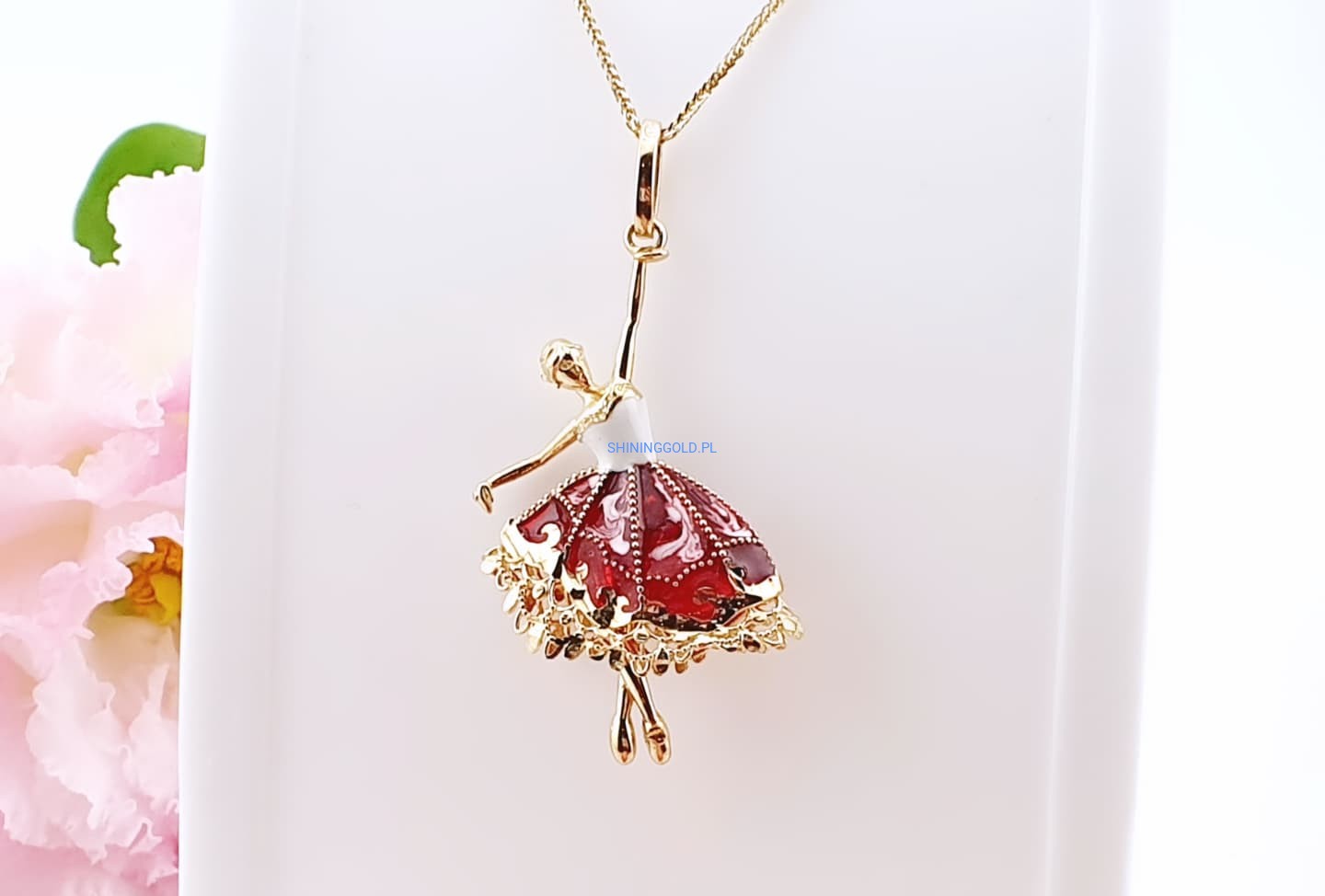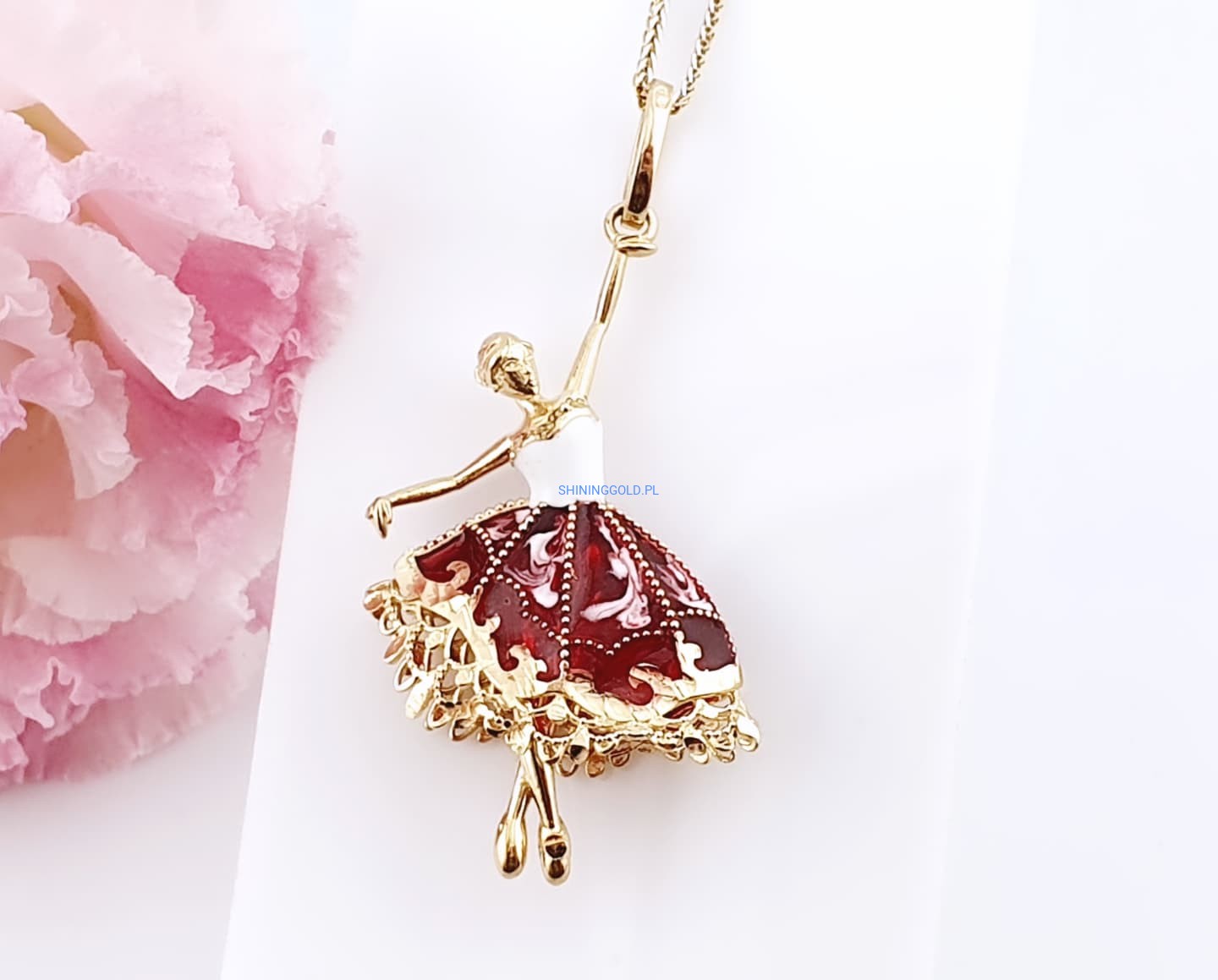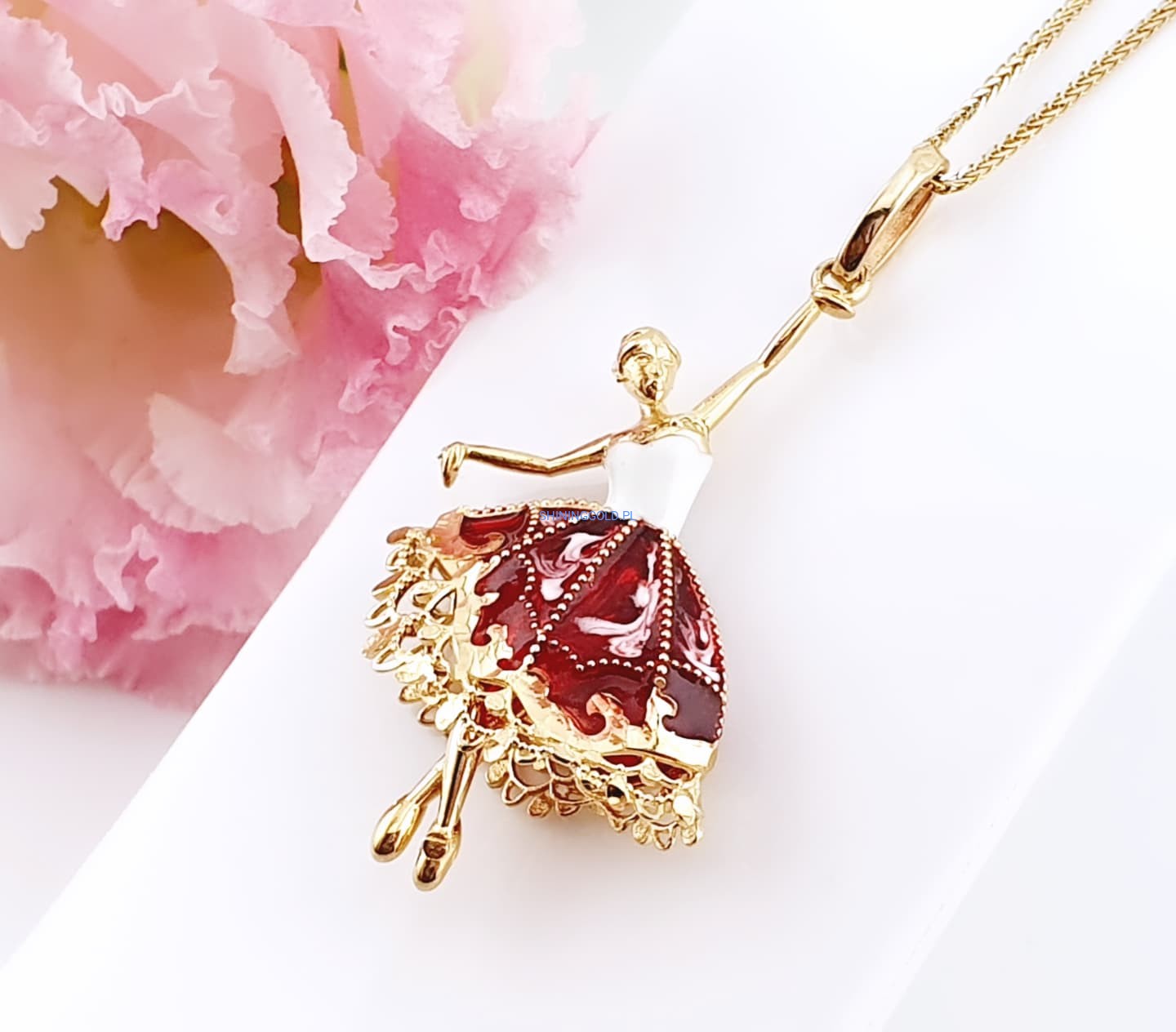 Elegancka zawieszka w kształcie baletnicy, wykonana z żółtego złota próby 585. To wyrazisty i artystyczny element biżuterii, który zachwyca dopracowanymi detalami oraz symboliką lekkości, gracji i pasji.