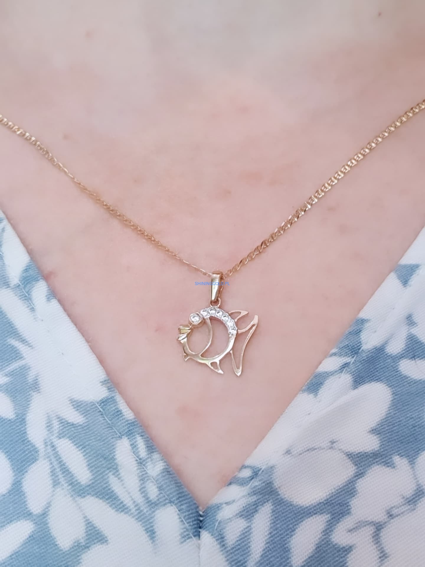 Złota, nowa zawieszka Rybka to subtelny i elegancki dodatek, wykonany z wysokiej jakości złota próby 585. Delikatny kształt rybki symbolizuje szczęście, pomyślność i harmonię, co czyni ją nie tylko ozdobą, ale także wyjątkowym talizmanem. Zawieszka doskonale sprawdzi się zarówno w codziennych stylizacjach, jak i jako prezent na wyjątkowe okazje.