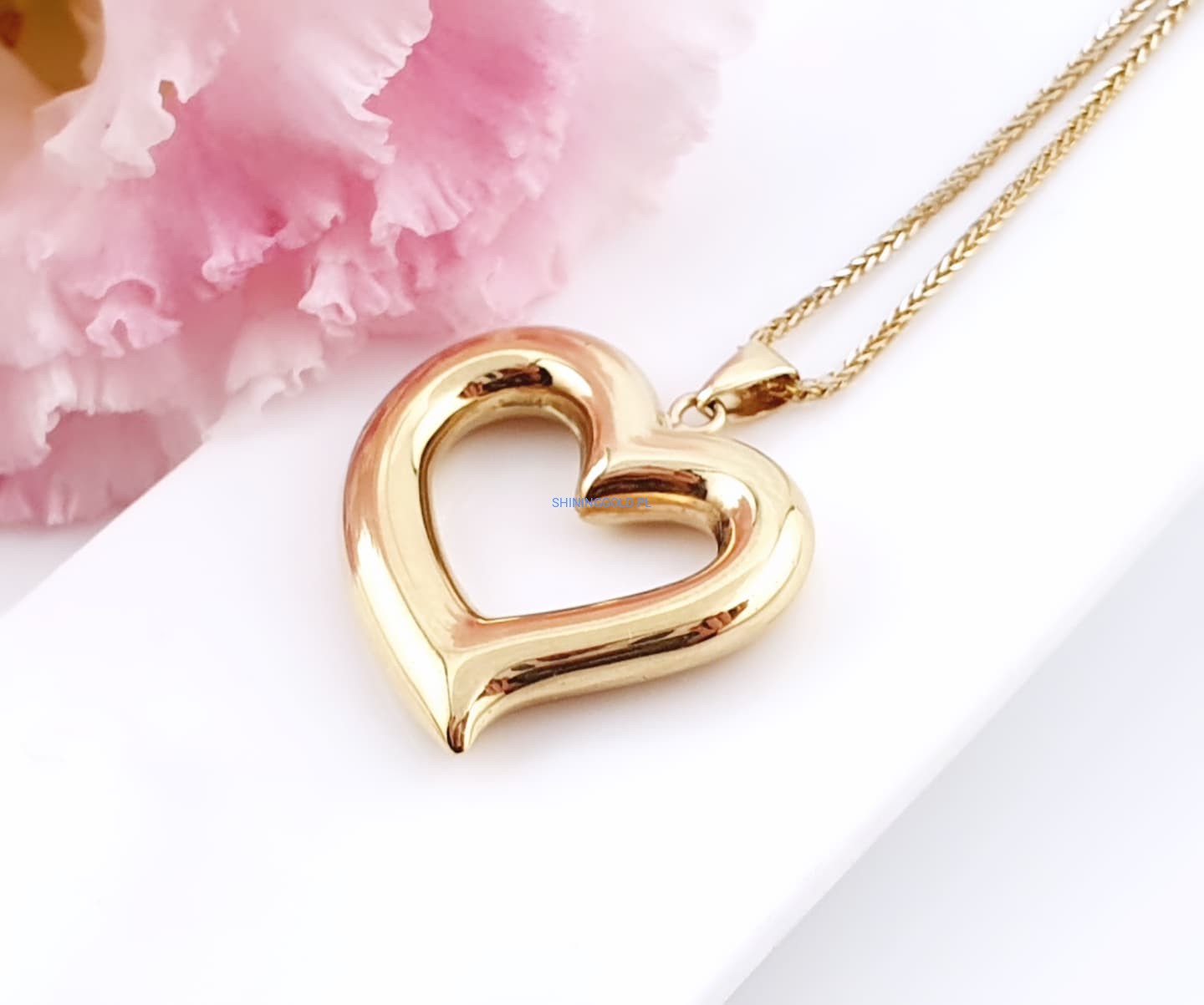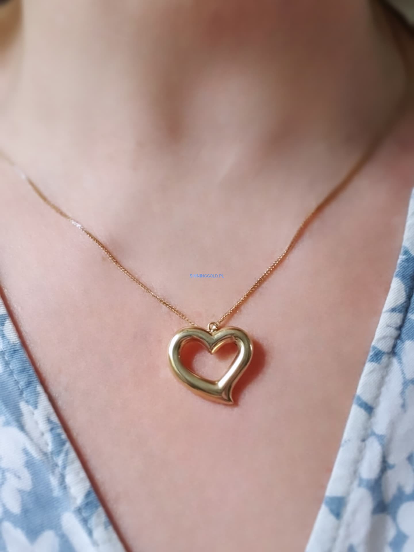 Wyjątkowa zawieszka w kształcie serca wykonana z wysokiej jakości żółtego złota próby 585. Wyrób dmuchany sprawia, że mimo imponujących rozmiarów zawieszka pozostaje lekka i komfortowa w noszeniu, zachowując przy tym swoją wyrazistą formę.