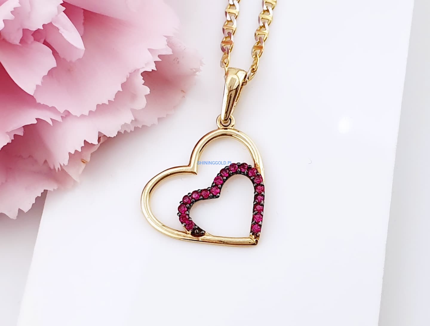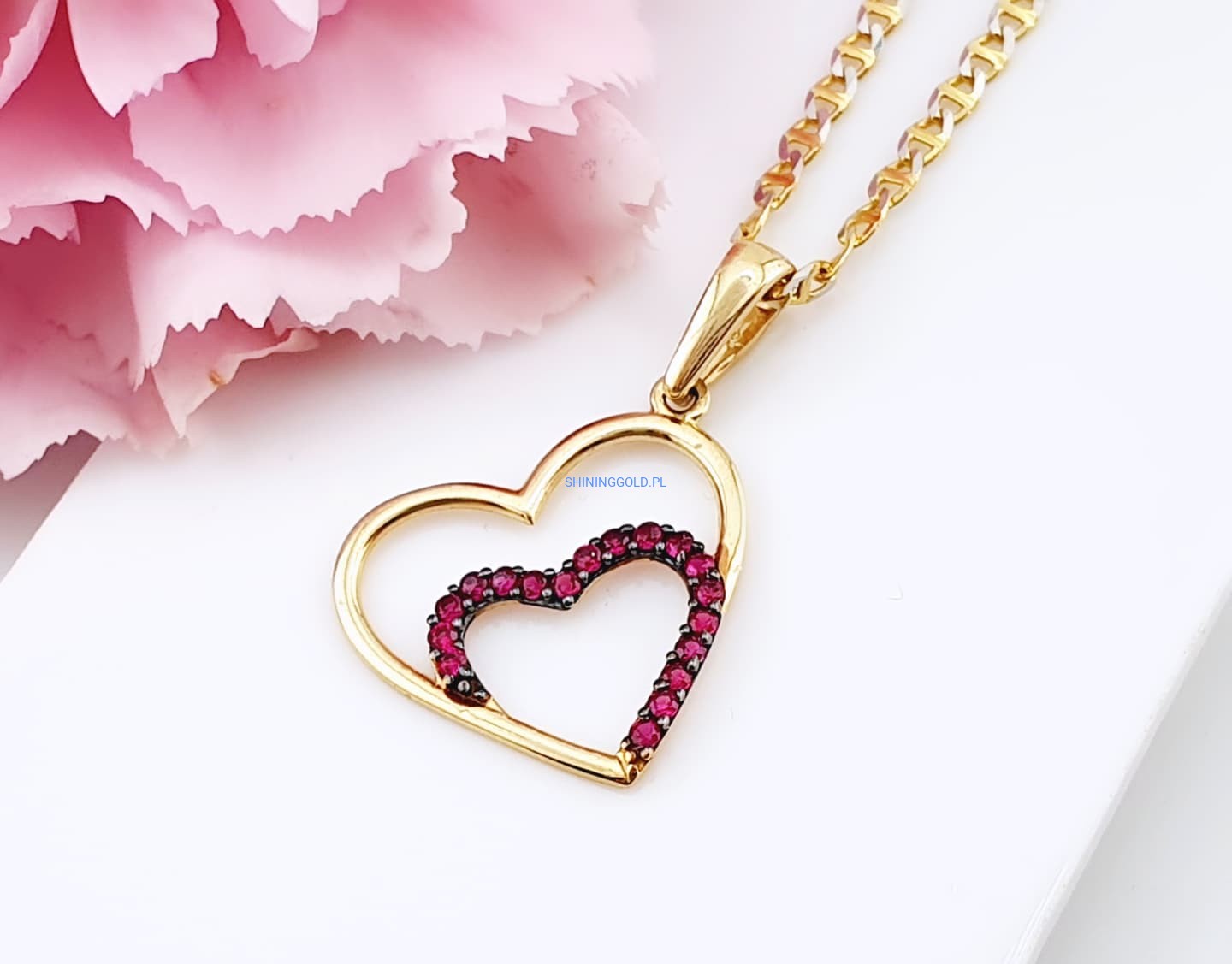 Złota, nowa zawieszka Serce z cyrkoniami (3111WS)