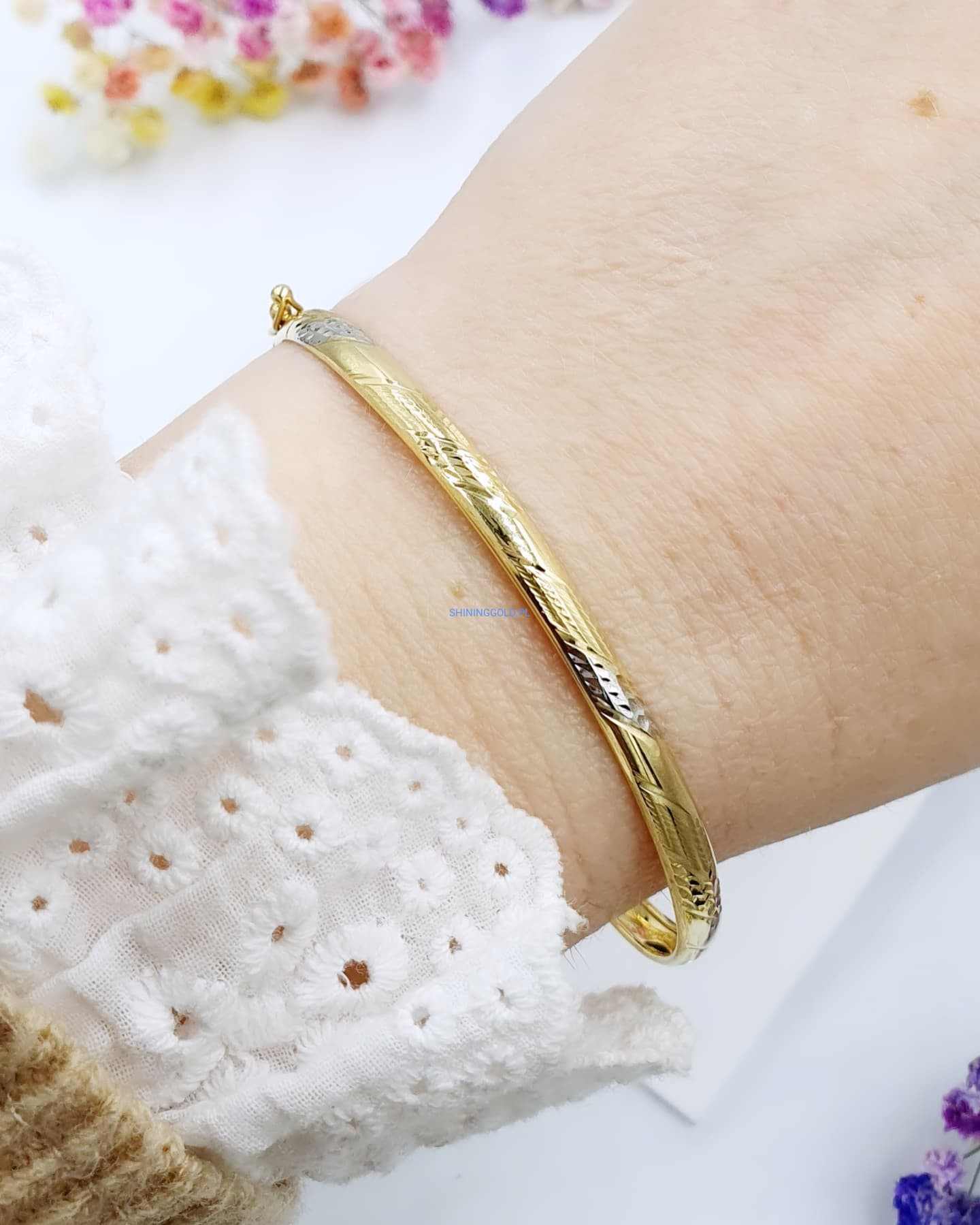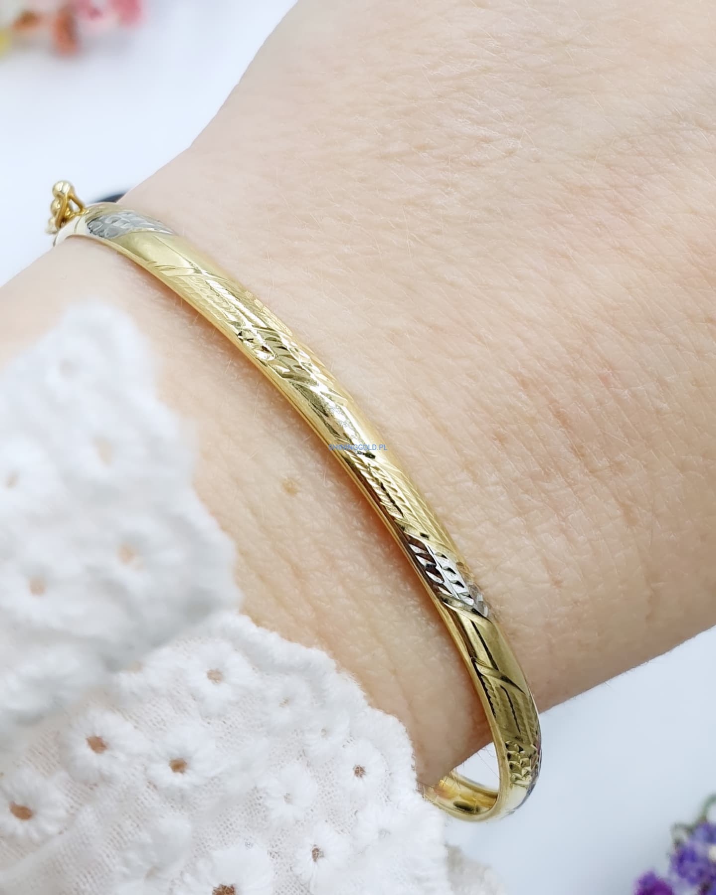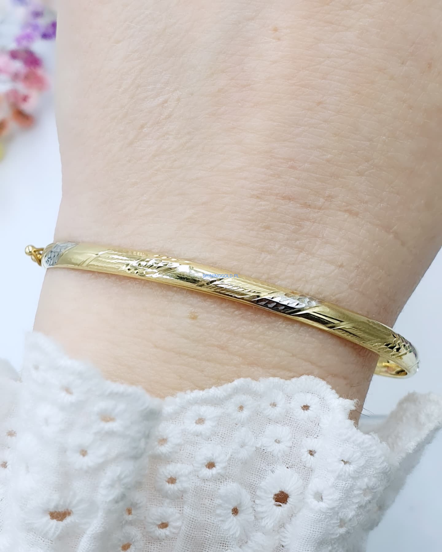 Złota, nowa sztywna bransoletka