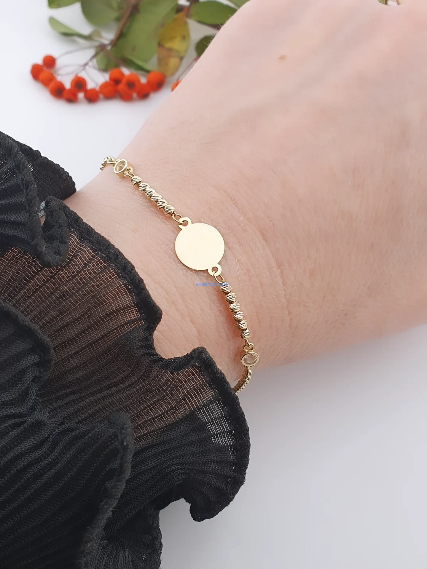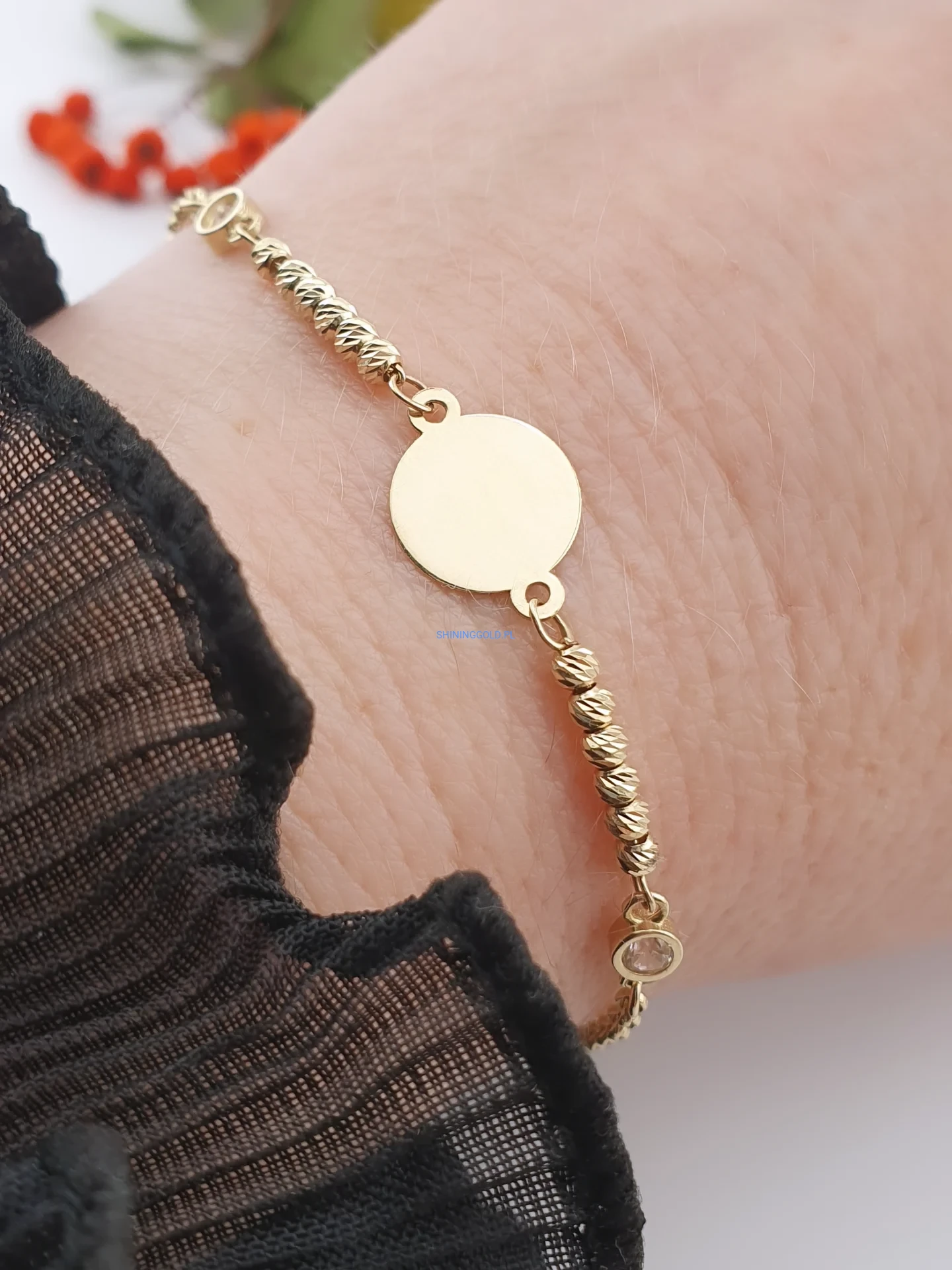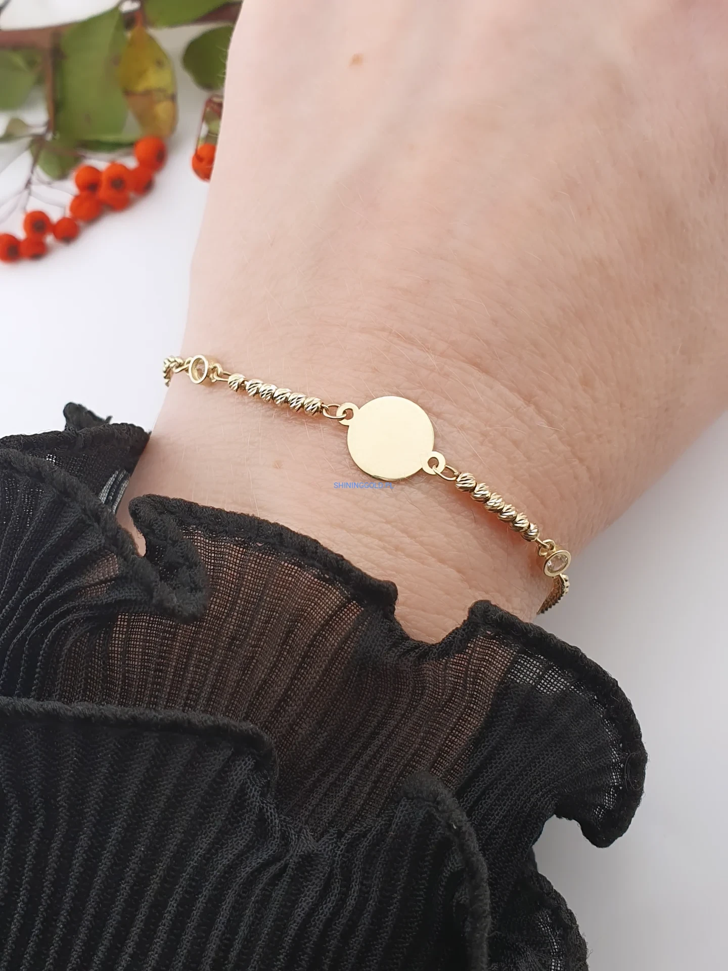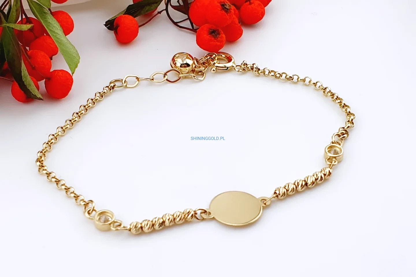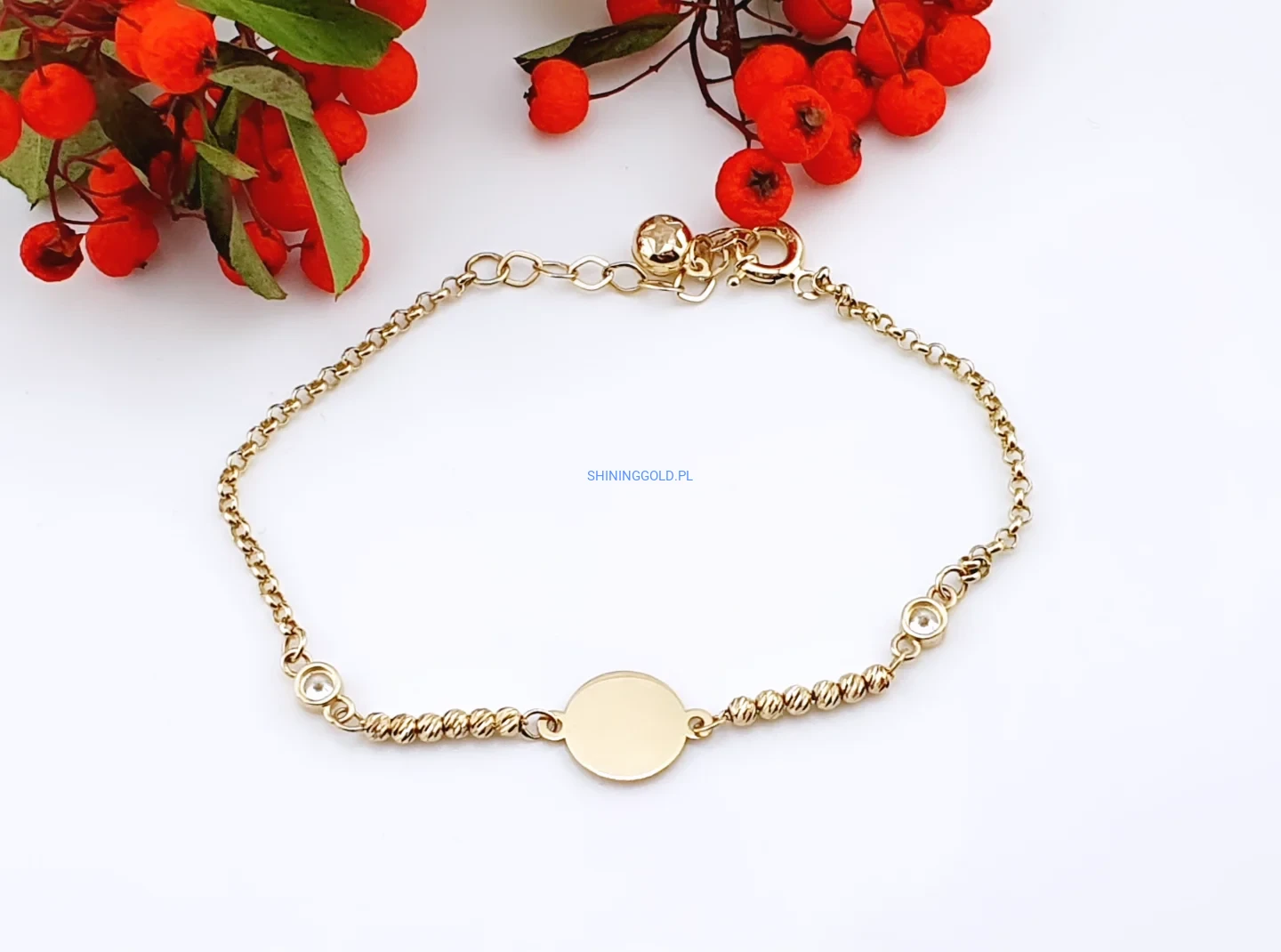 Złota bransoletka 585 z okrągłą blaszką (433P)