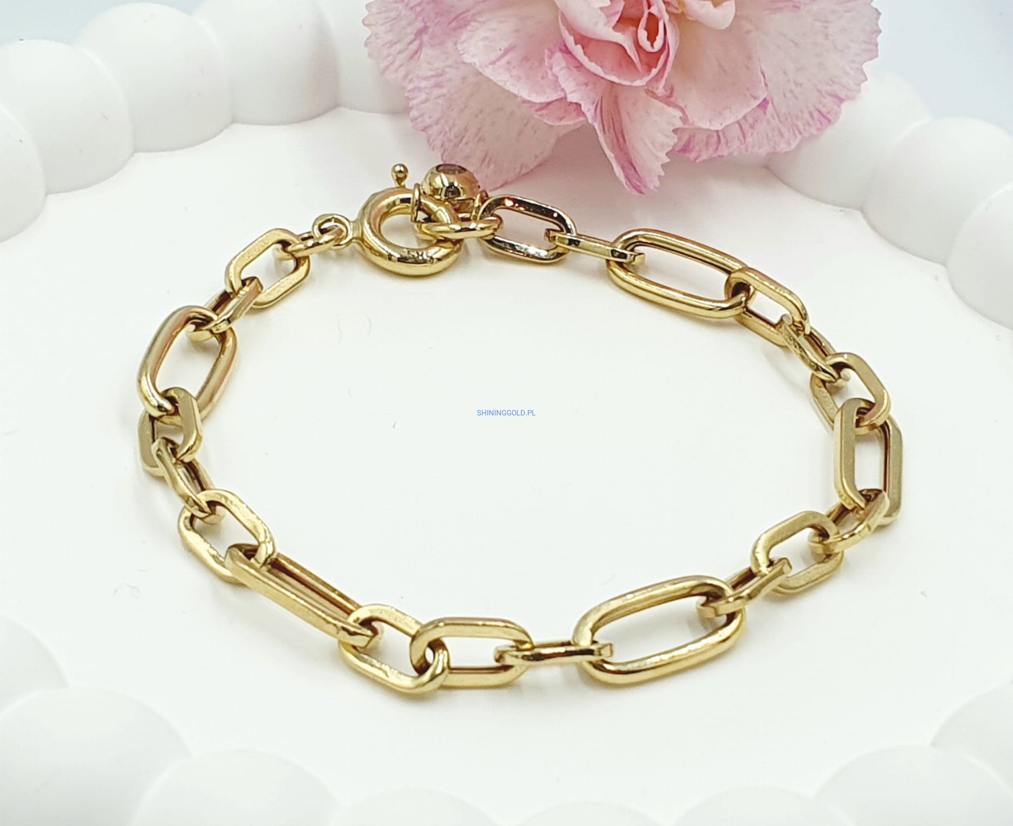 - Wysoka jakość wykonania: Wykonana z 14-karatowego złota, bransoleta zapewnia trwałość i długowieczność.