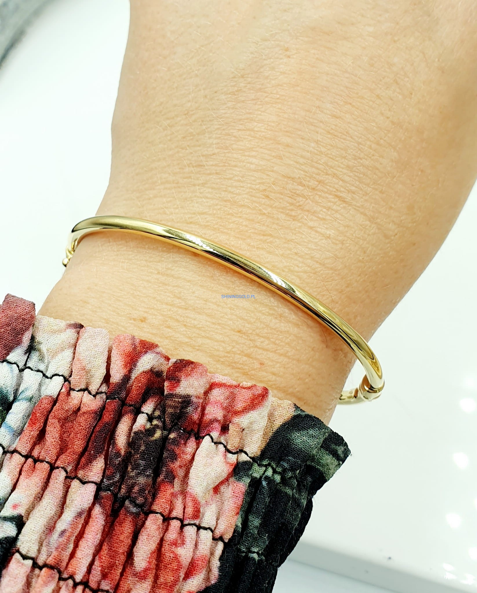 Ta delikatna, nowa sztywna bransoletka to symbol elegancji i klasy, który doskonale komponuje się z różnymi stylizacjami. Wykonana z wysokiej jakości złota o próbie 585, łączy w sobie lekkość i solidność, tworząc idealny dodatek na każdą okazję.