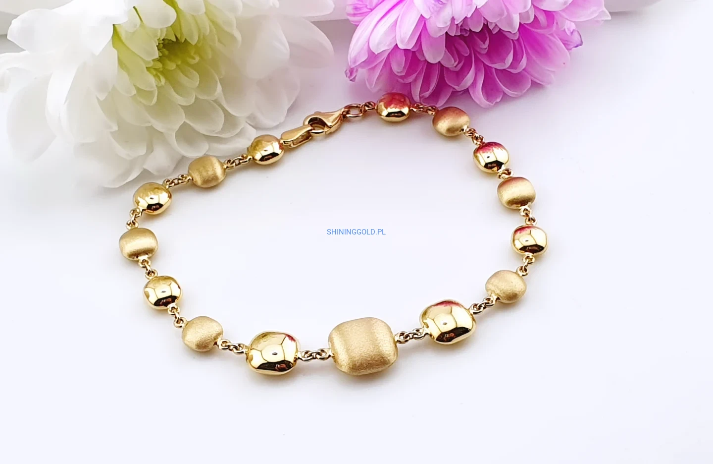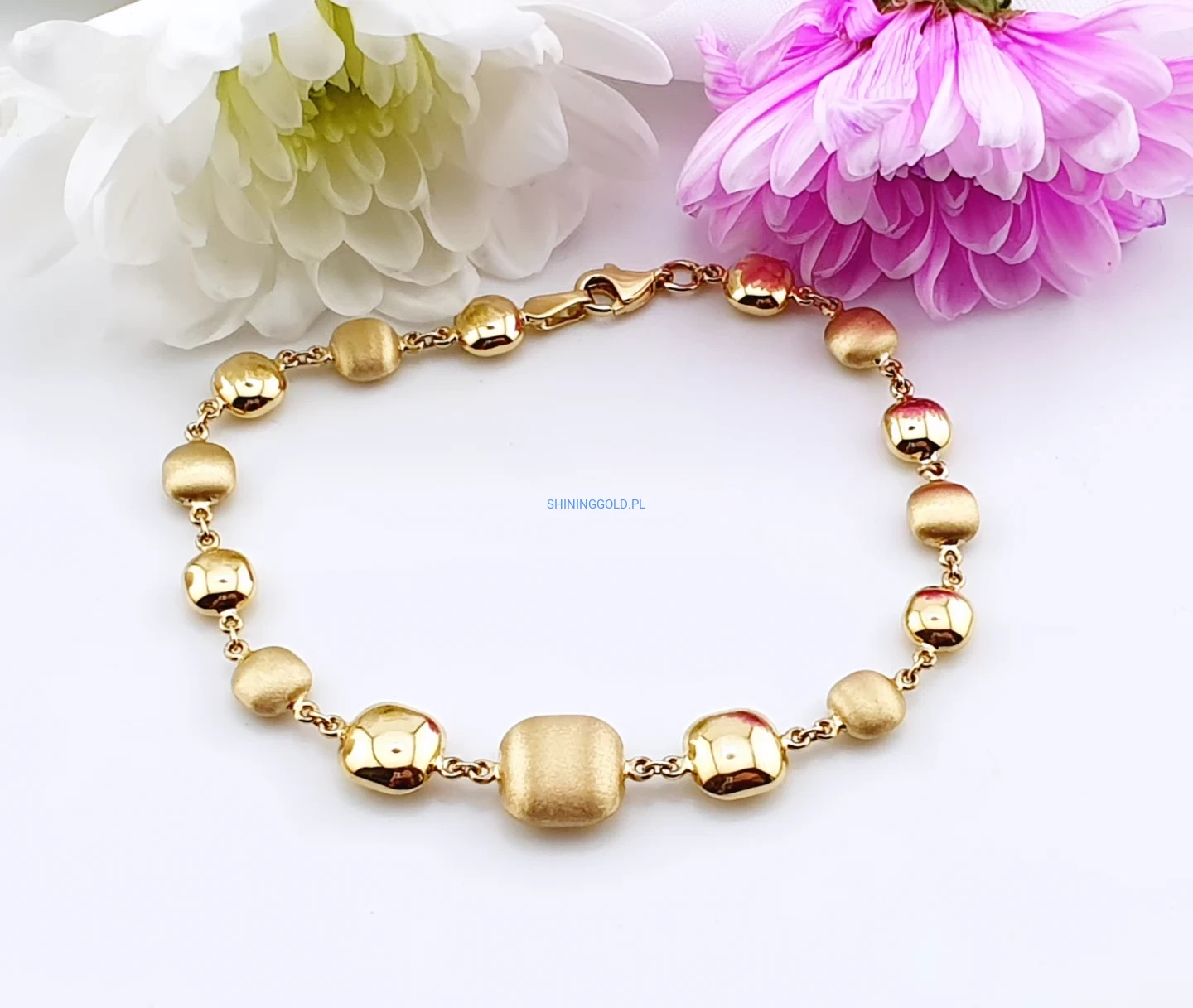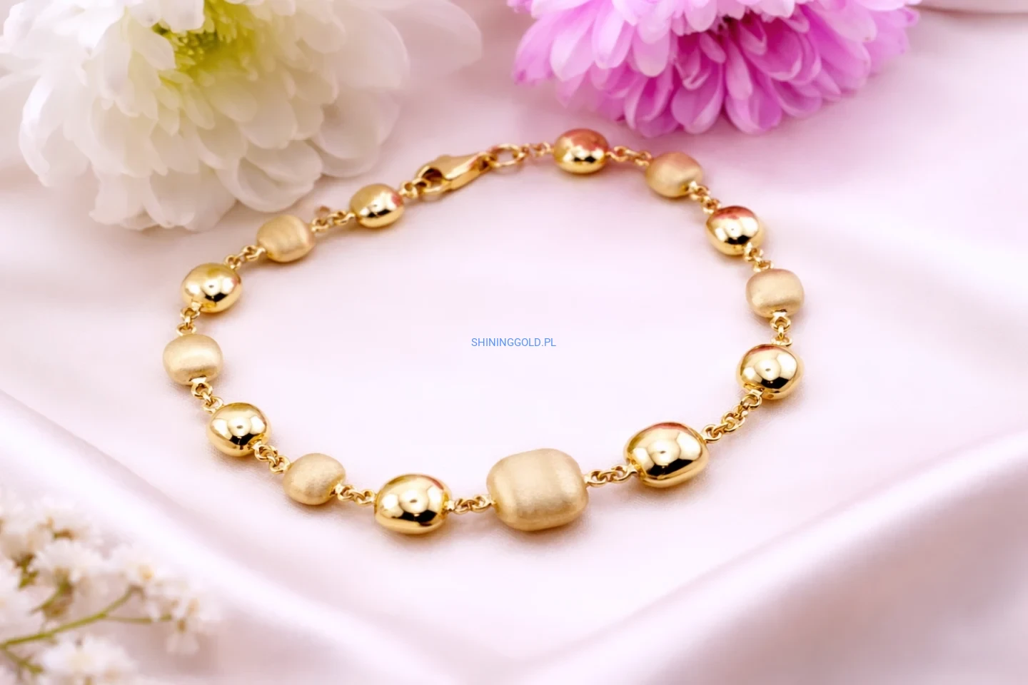 Złota bransoletka 585 – kulki z satynowym wykończeniem