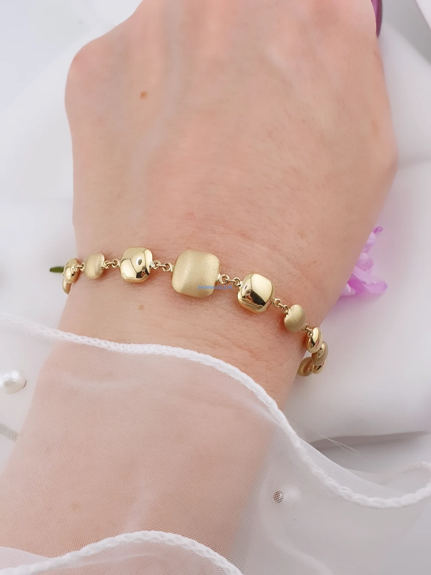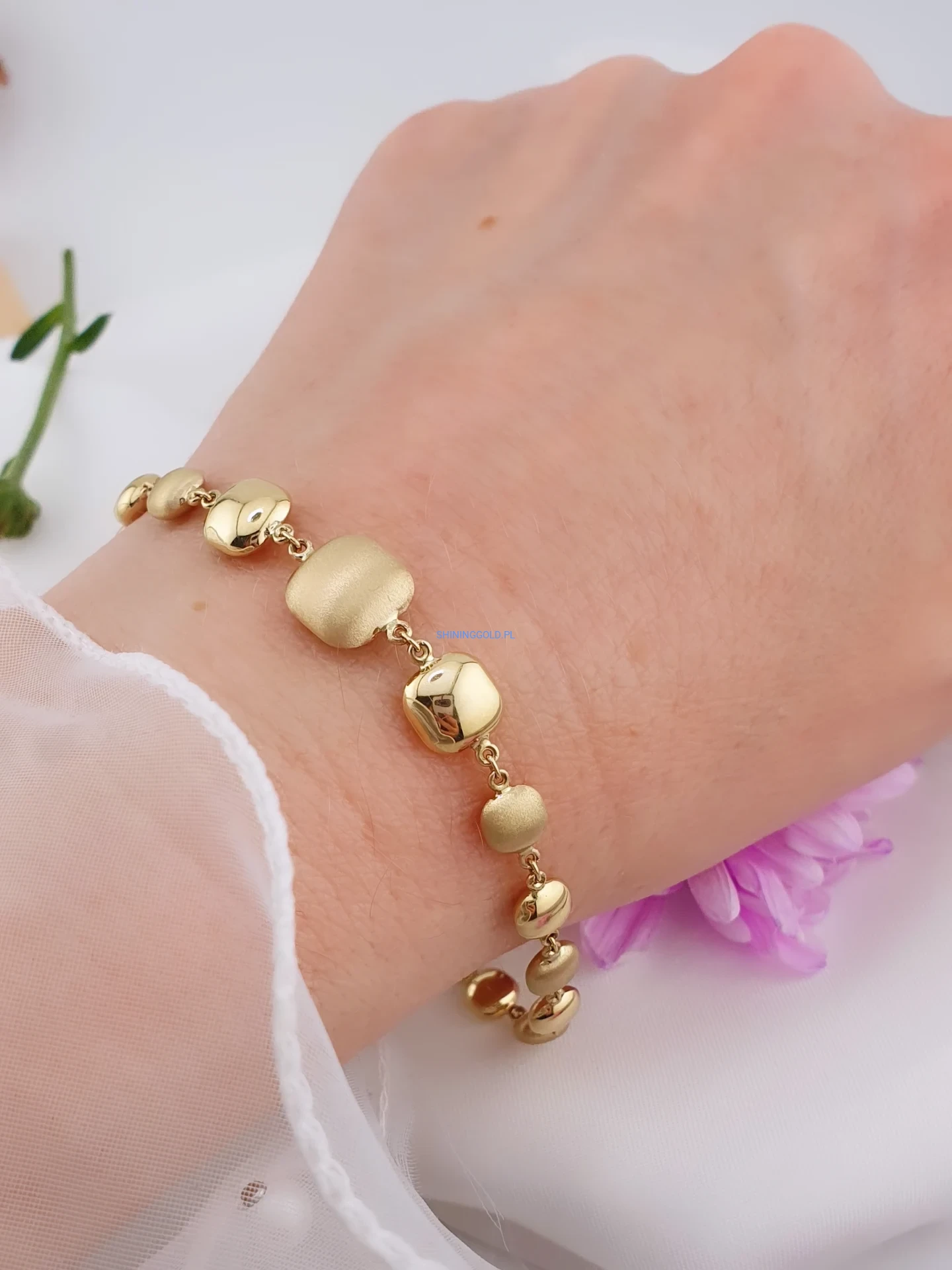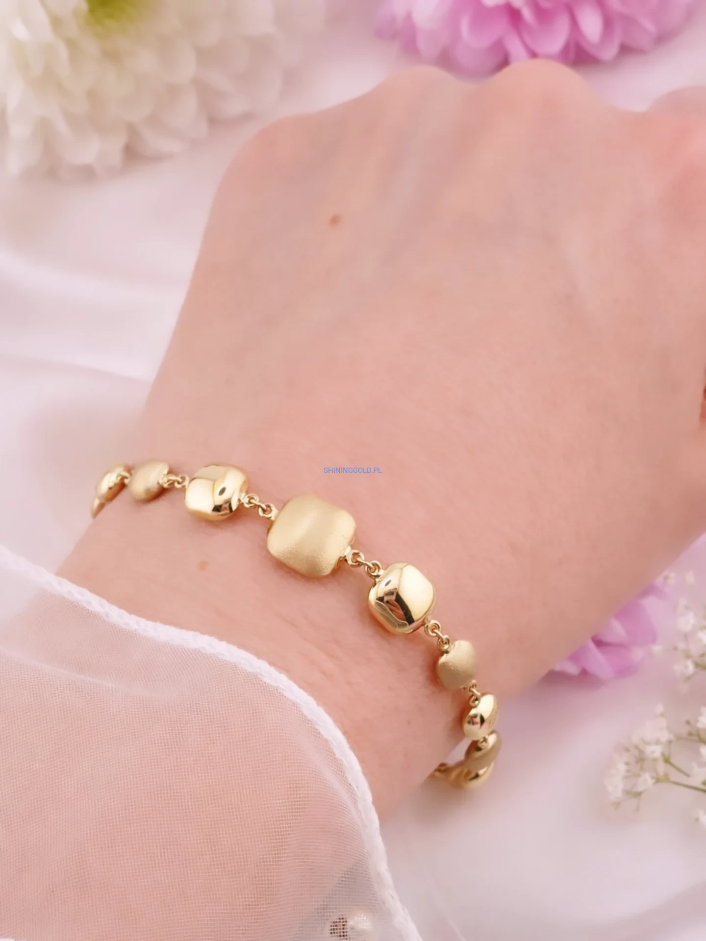 Złota bransoletka 585 – kulki z satynowym wykończeniem
