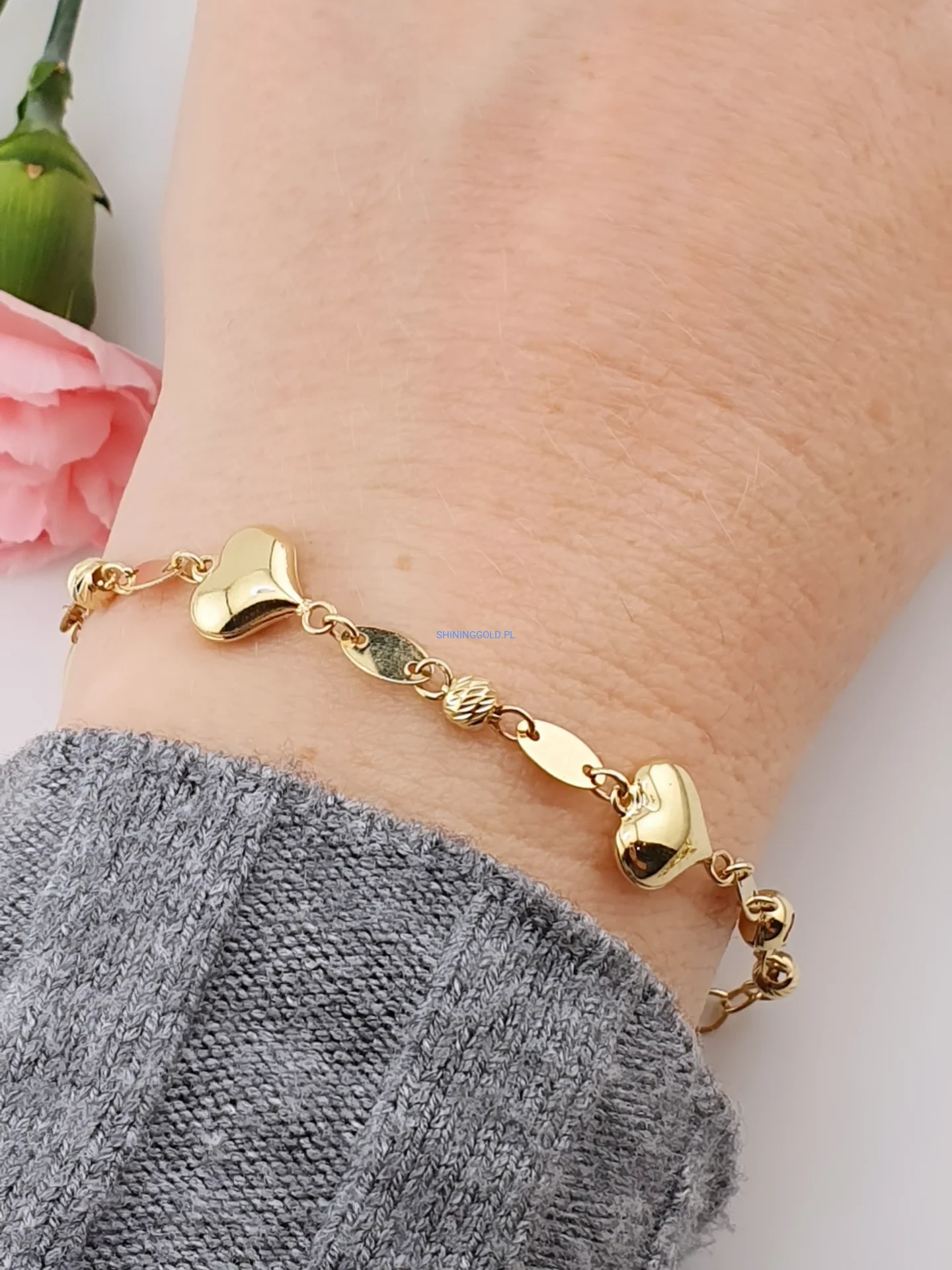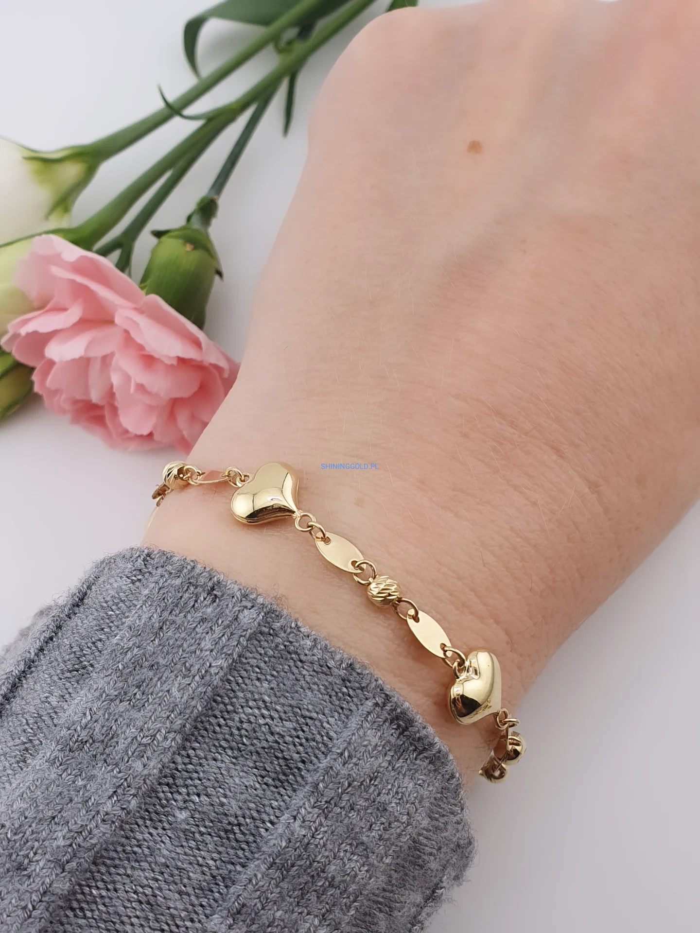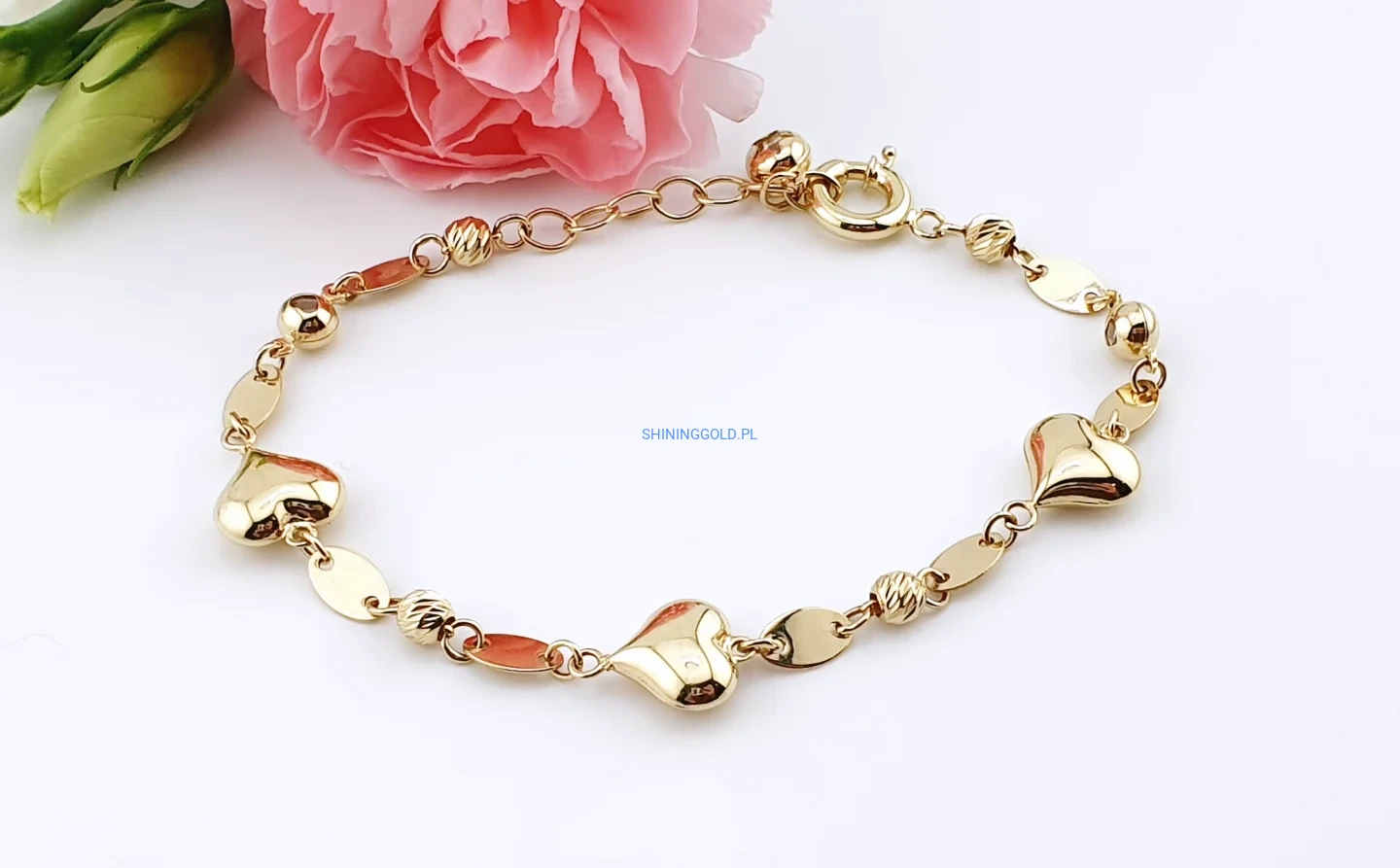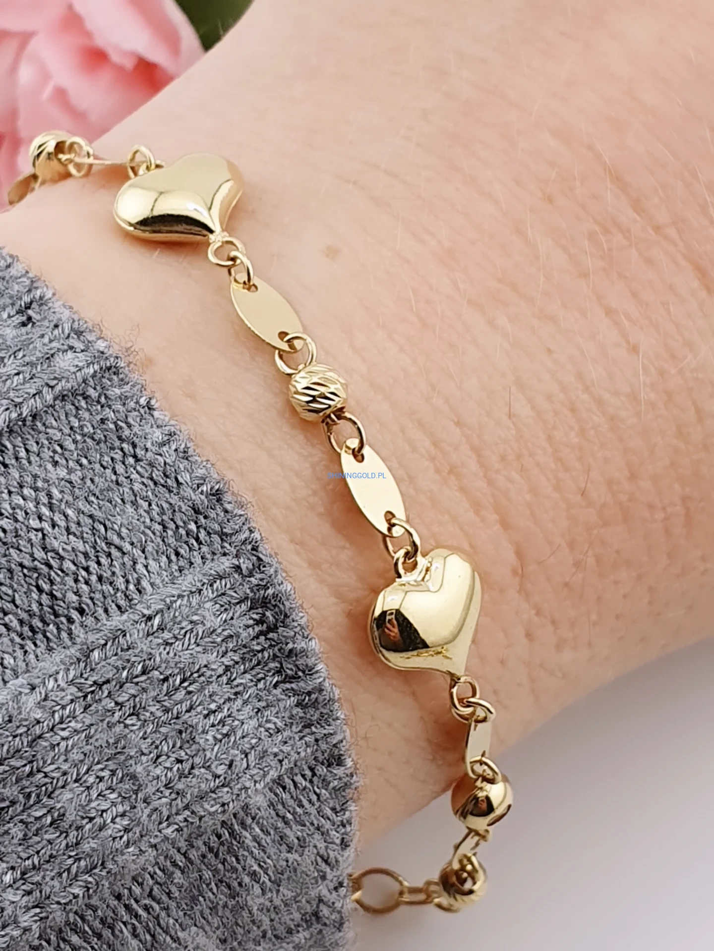 Złota bransoletka serduszka 926WS to wyjątkowo kobieca i romantyczna biżuteria, która zachwyca subtelnym urokiem. Wykonana ze złota próby 585, ozdobiona delikatnymi zawieszkami w kształcie serc, symbolizującymi miłość i bliskość. Jej regulowana długość sprawia, że idealnie dopasowuje się do nadgarstka, dodając elegancji każdej stylizacji.