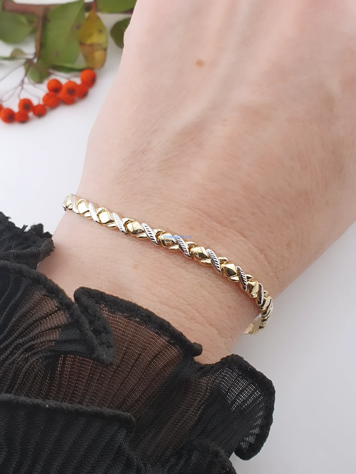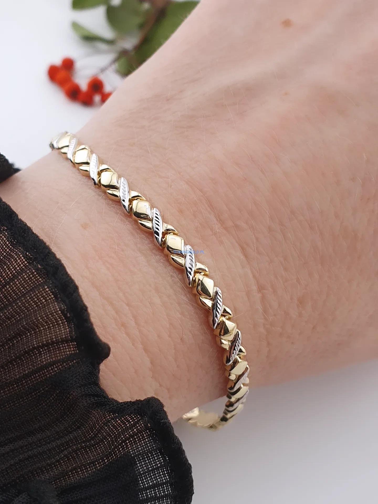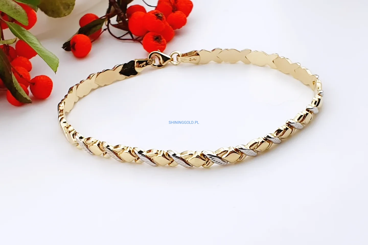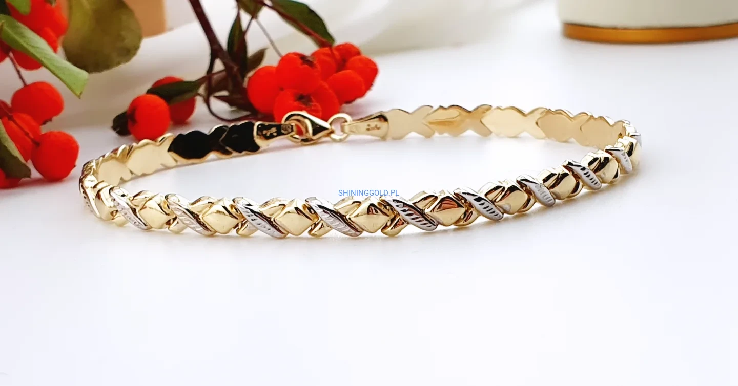 Złota bransoletka splot dwukolorowy 585 (429P)