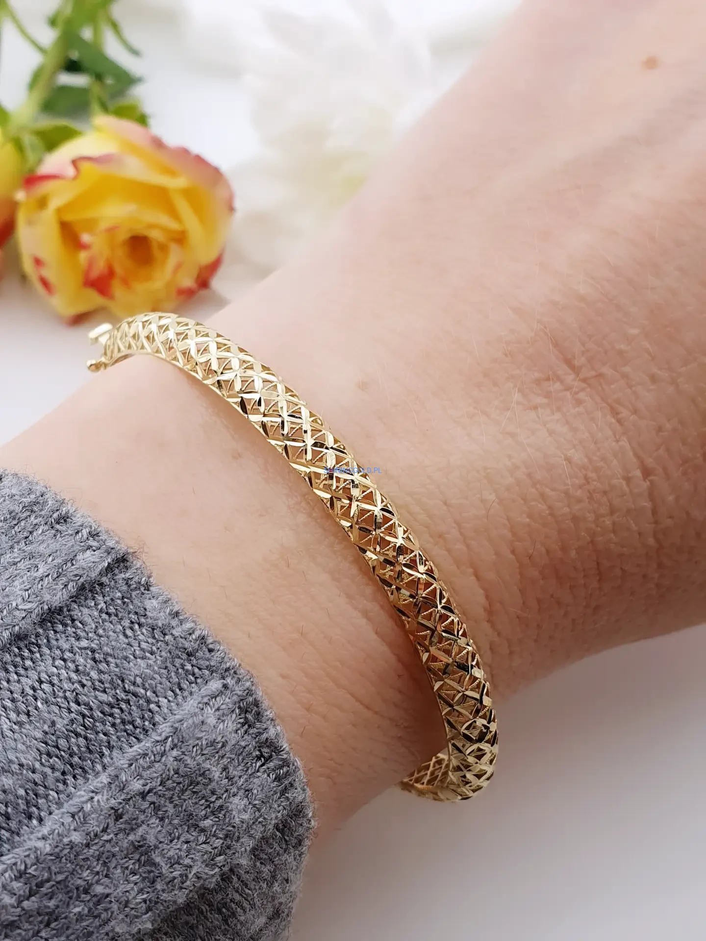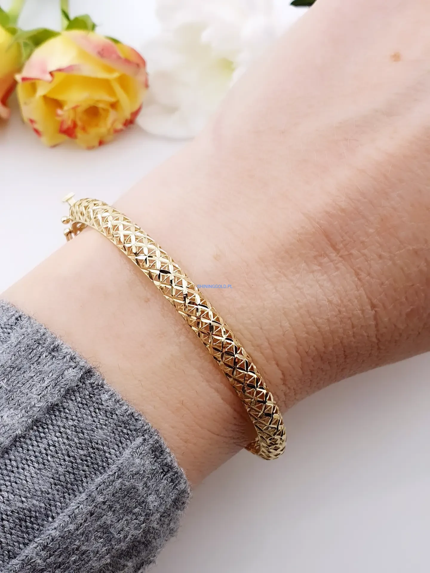 Złota bransoletka sztywna ażurowa 585 (426P)