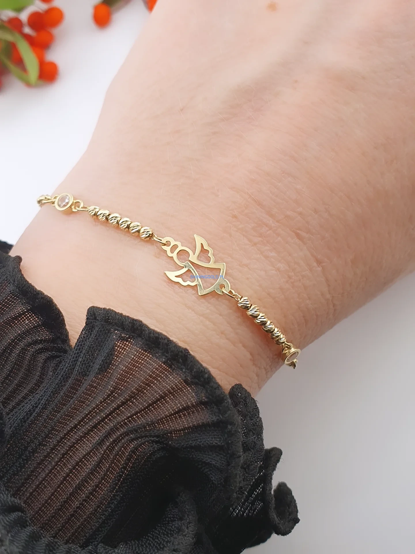 Złota, nowa bransoletka z aniołkiem – delikatna i pełna znaczenia