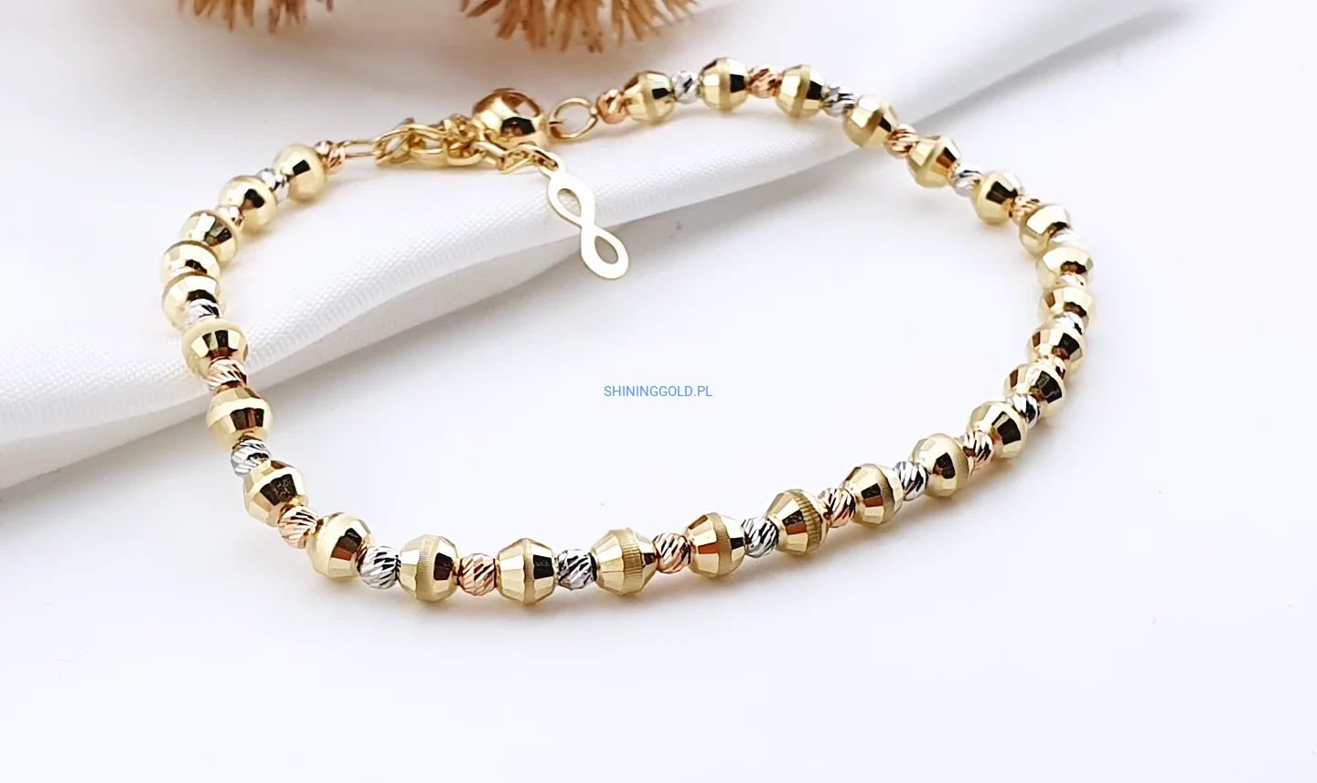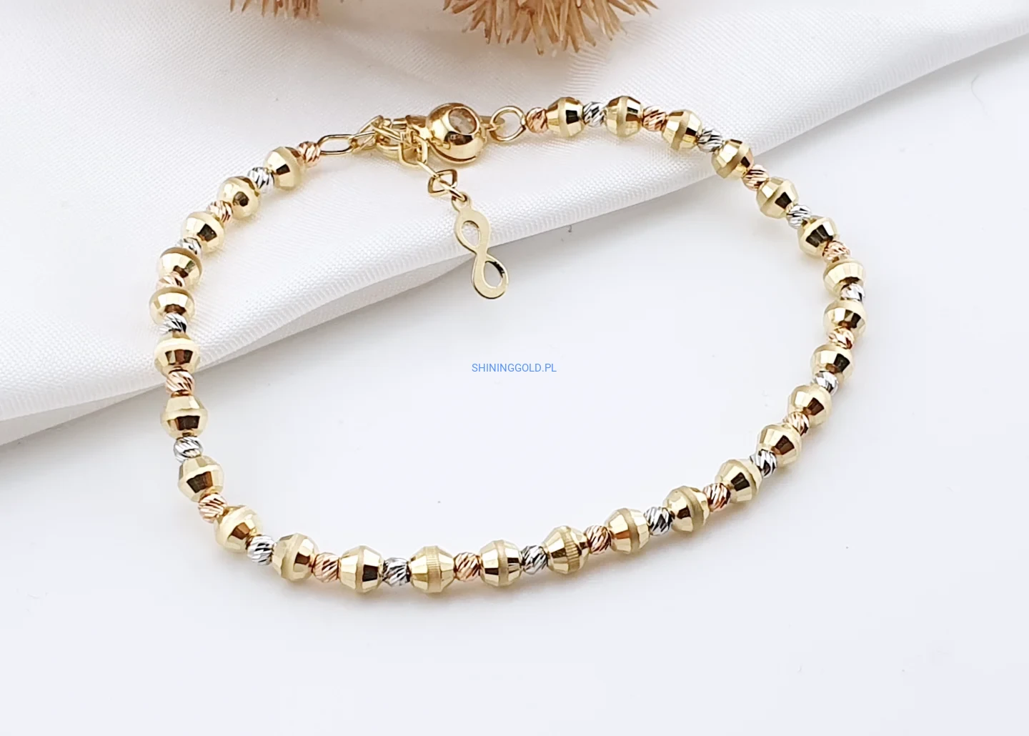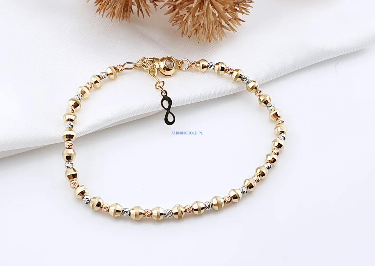 Złota bransoletka z kuleczkami 585, 17–19cm(416a)