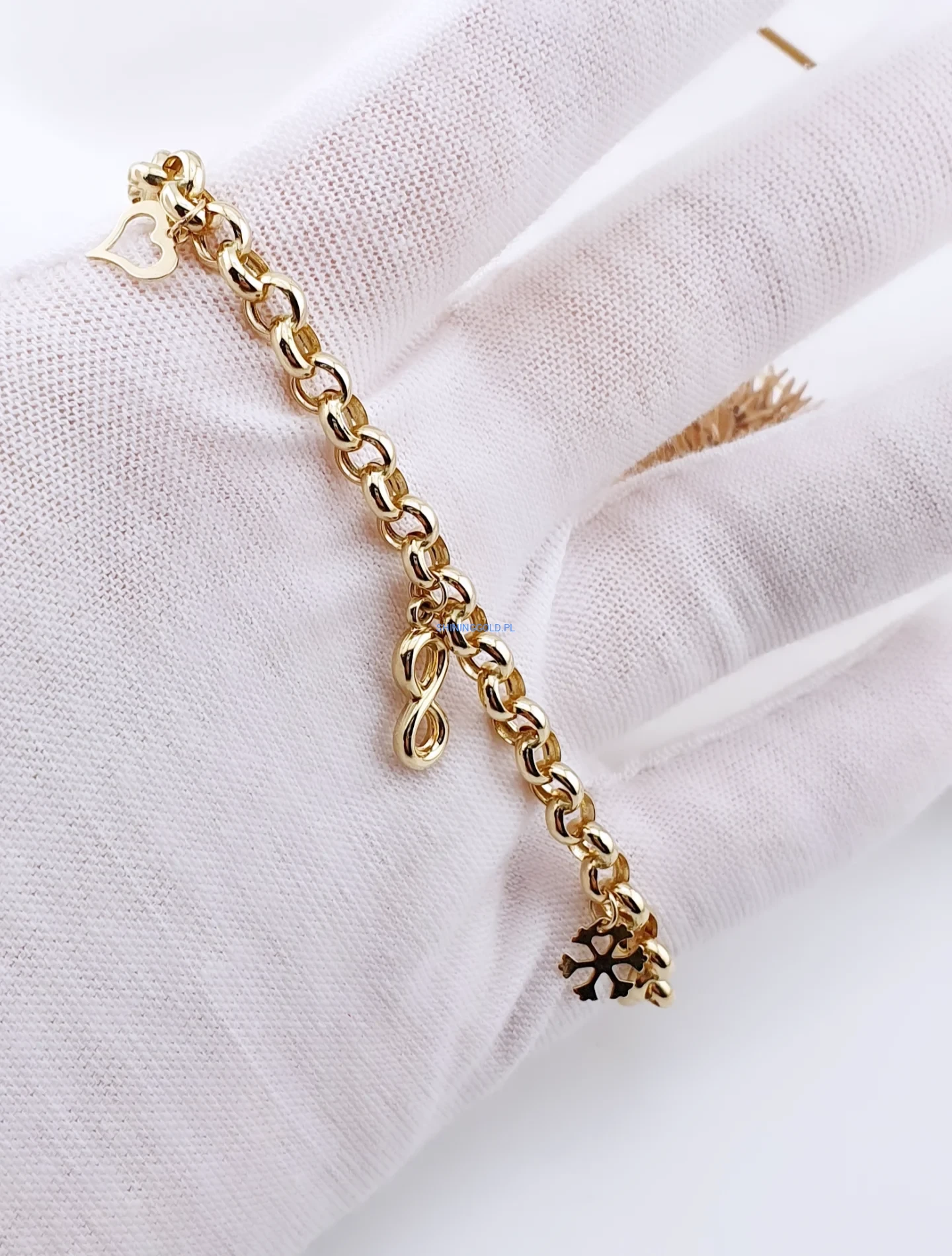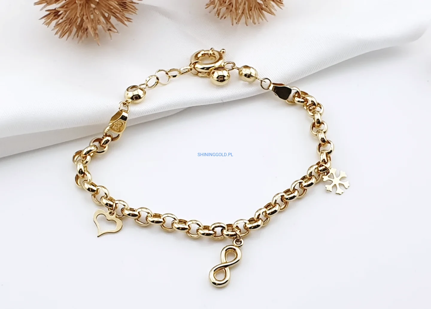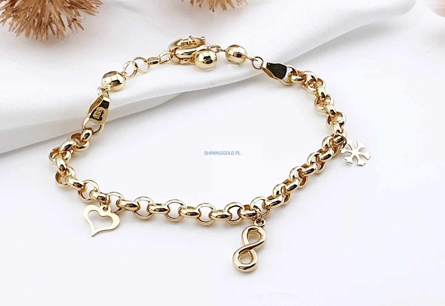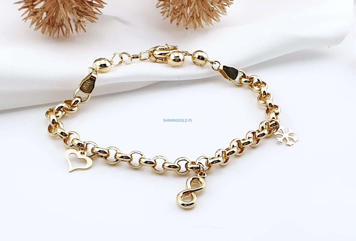 Złota bransoletka z zawieszkami 585, 17–19cm (411a)