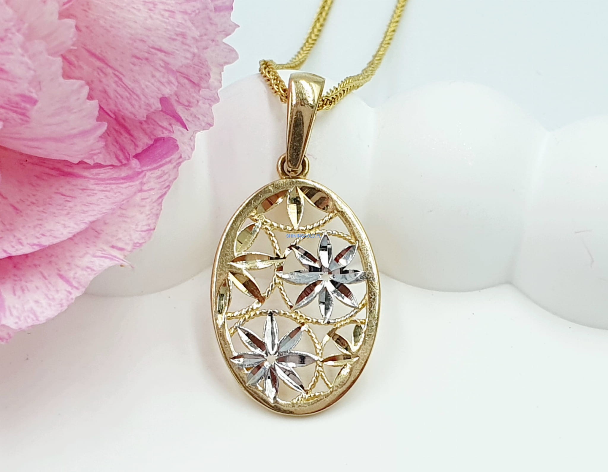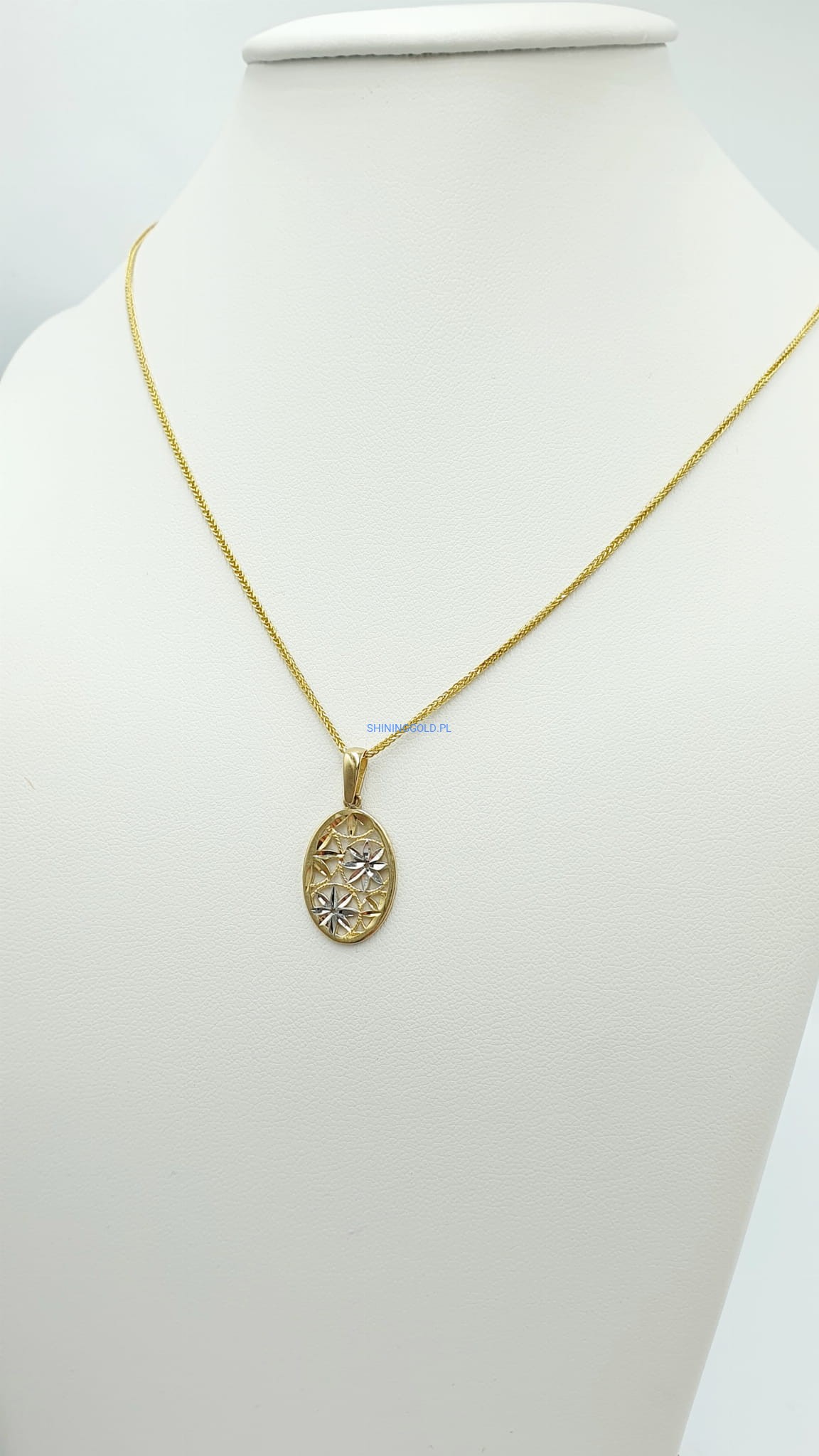 Ta złota zawieszka to elegancki i stylowy dodatek, który doda subtelnego blasku każdej stylizacji. Idealna zarówno na specjalne okazje, jak i do codziennego noszenia.