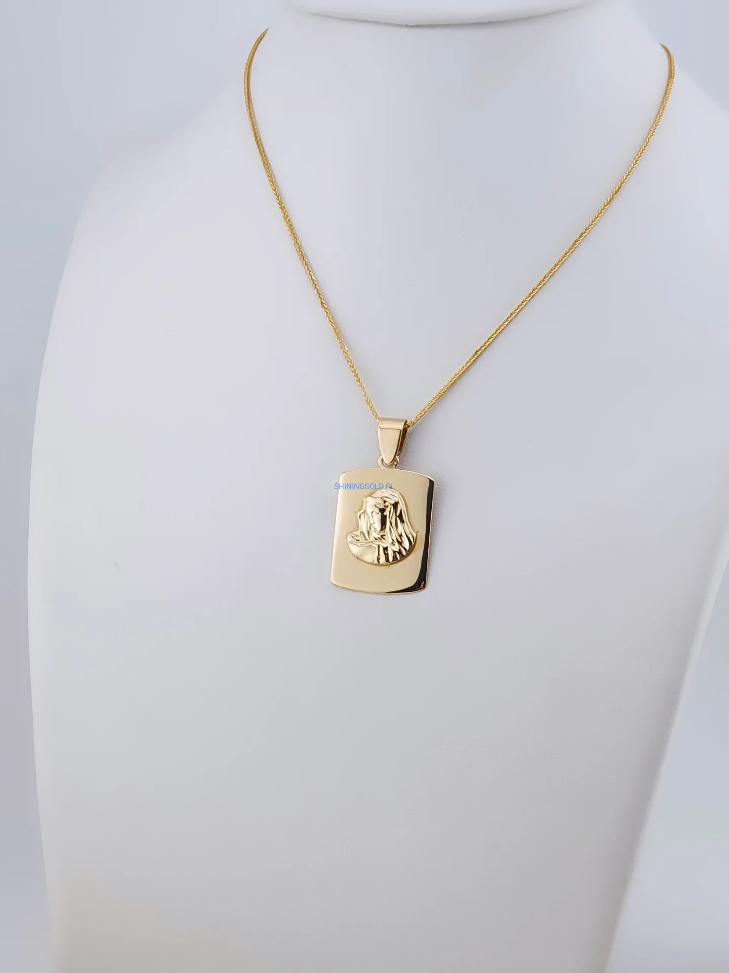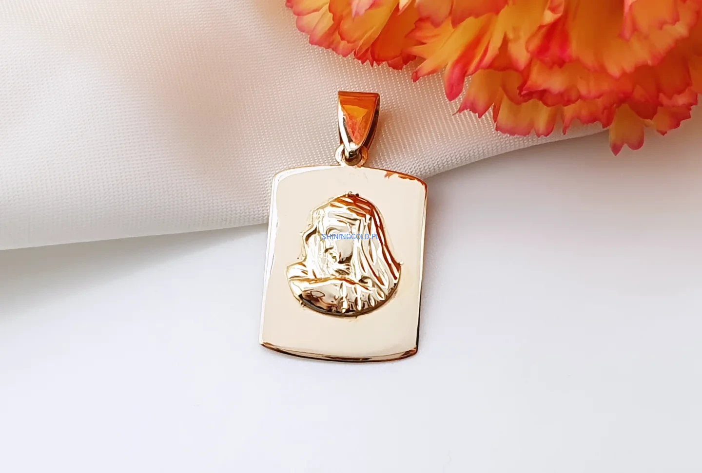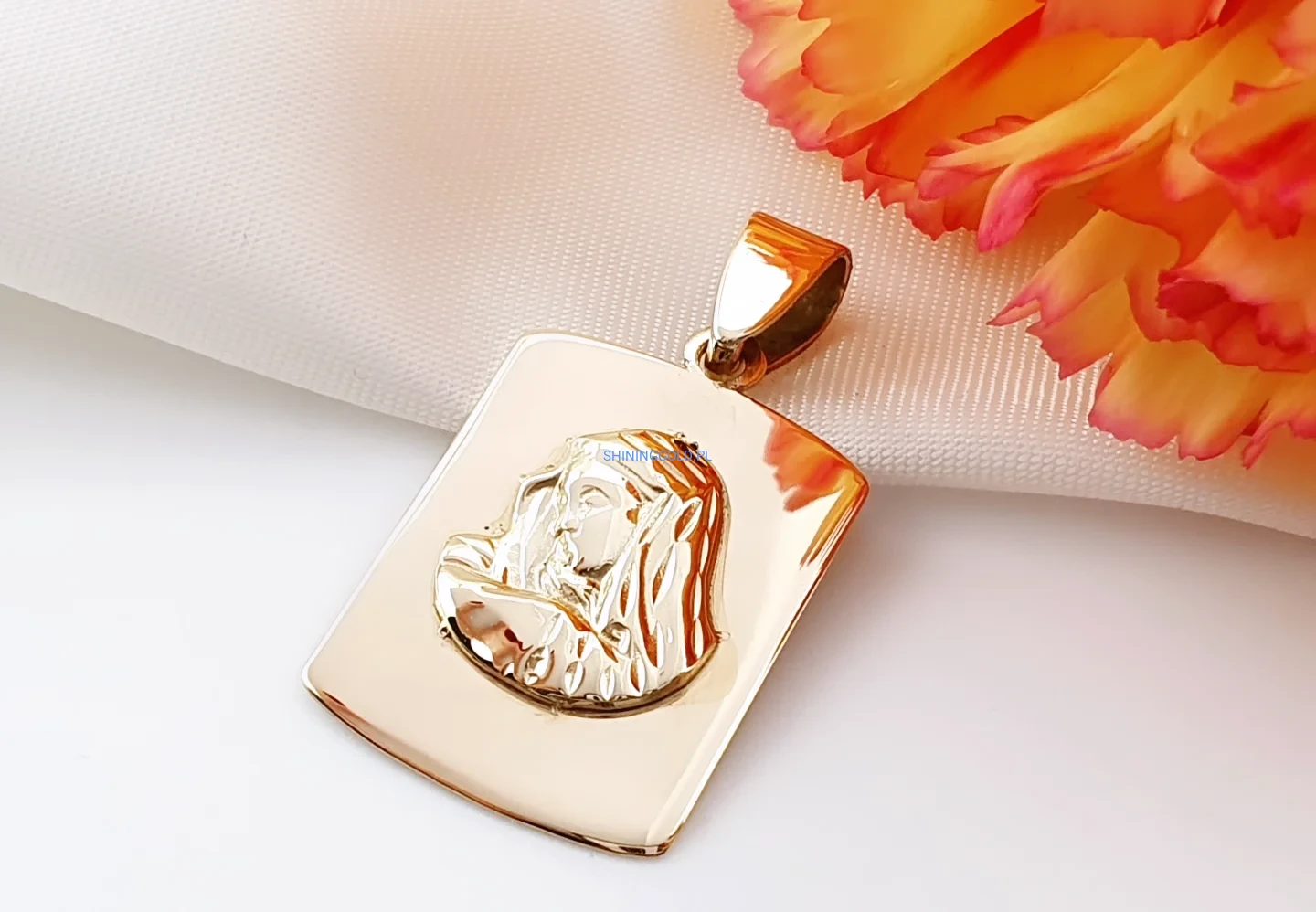 Model o prostokątnej formie z wypukłym wizerunkiem (świętej postaci) prezentuje się elegancko i ponadczasowo, dzięki czemu idealnie sprawdzi się jako prezent oraz codzienny symbol wiary. Subtelny połysk podkreśla detale i nadaje biżuterii wyjątkowego charakteru.
