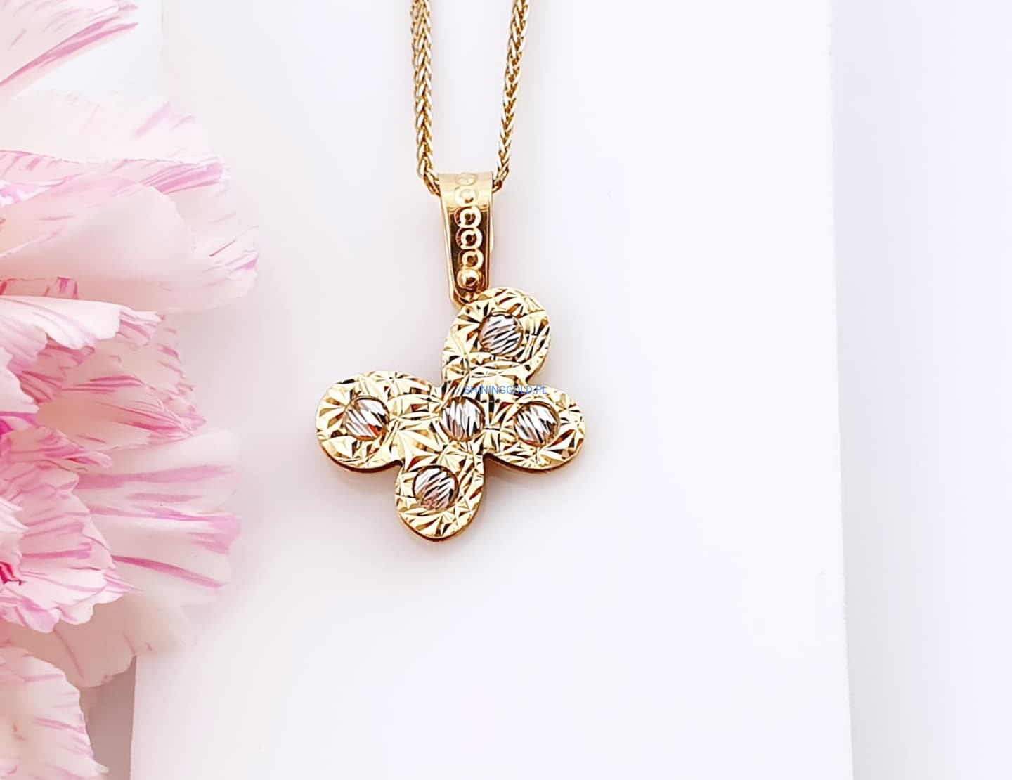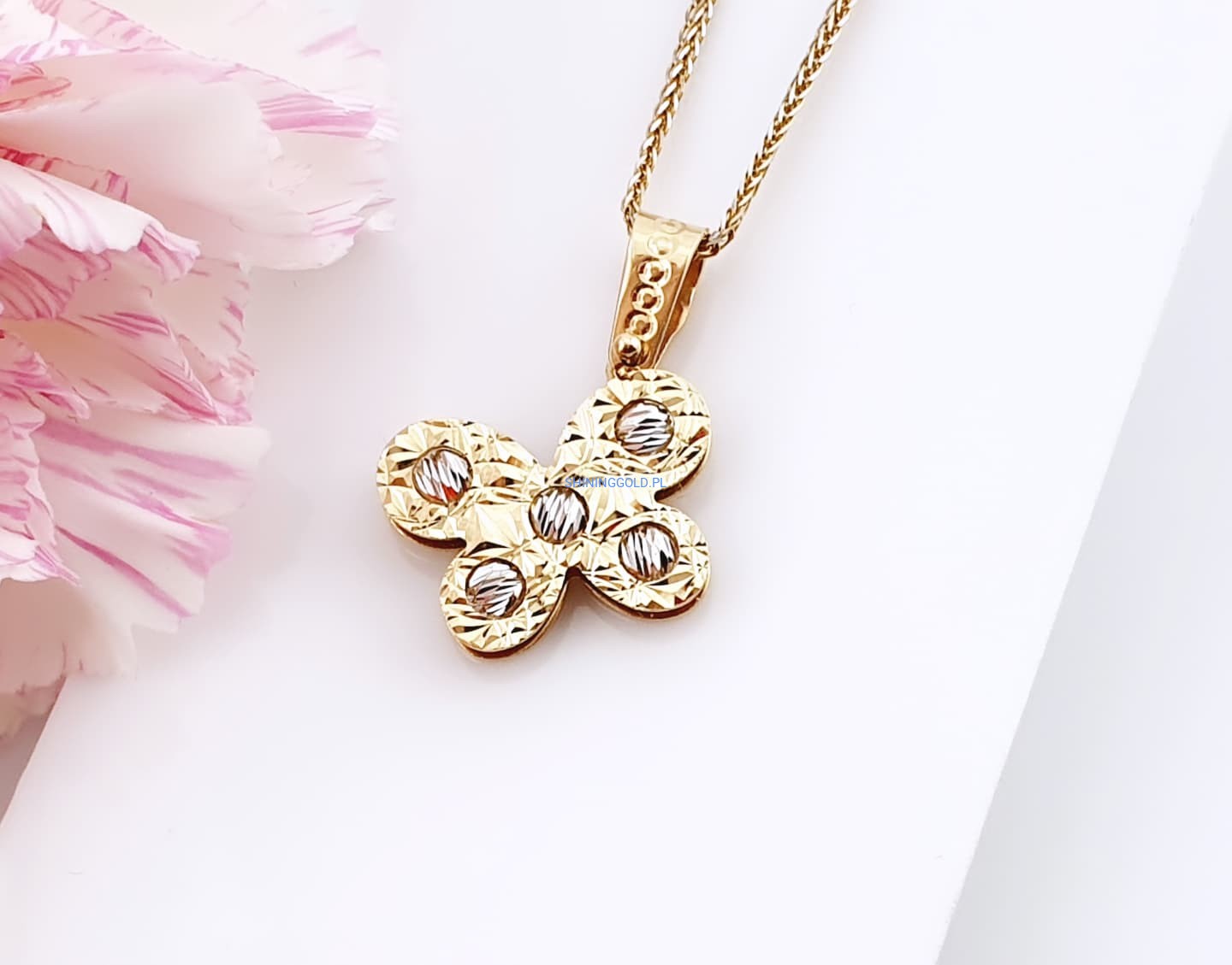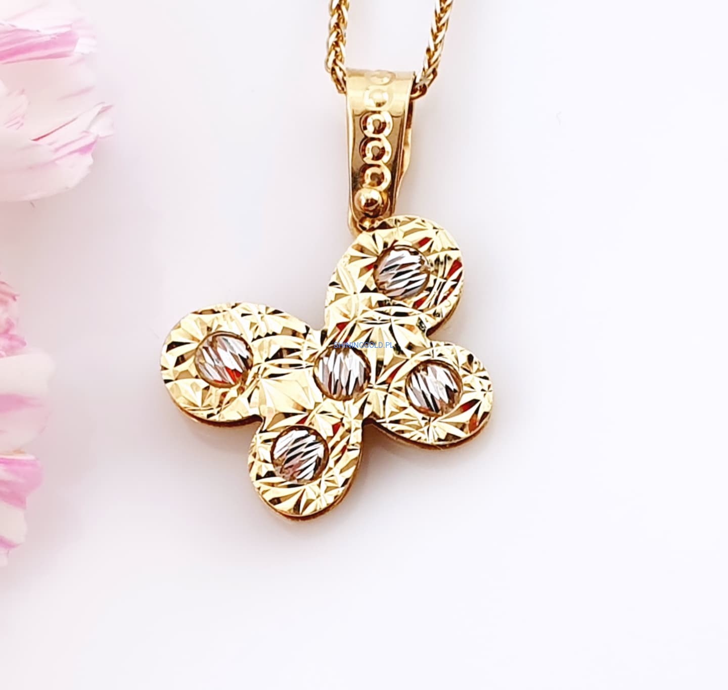Zakończenie: Złota zawieszka Motylek to elegancki wybór, który w subtelny sposób podkreśli Twoją urodę i doda lekkości każdej stylizacji. Doskonały prezent dla bliskiej osoby lub wyjątkowy element w Twojej kolekcji biżuteryjnej. Zamów już dziś i ciesz się pięknem tej wyjątkowej biżuterii!