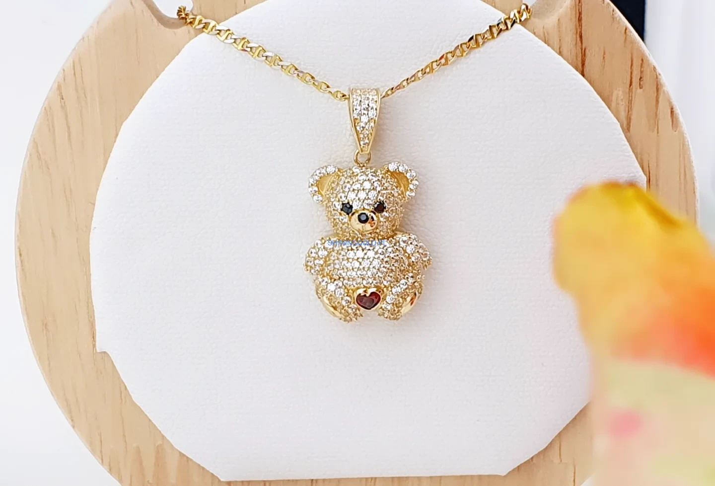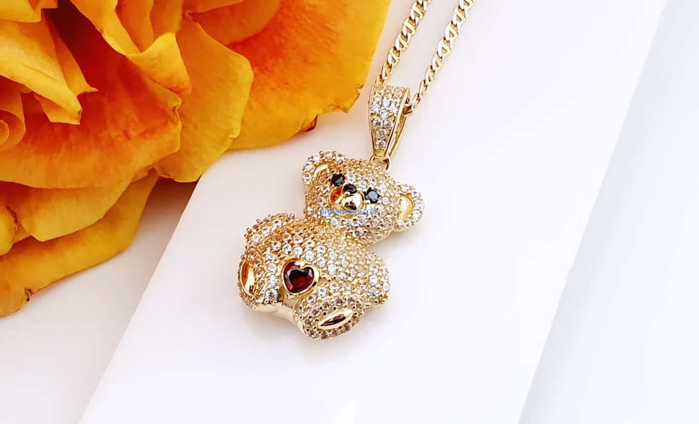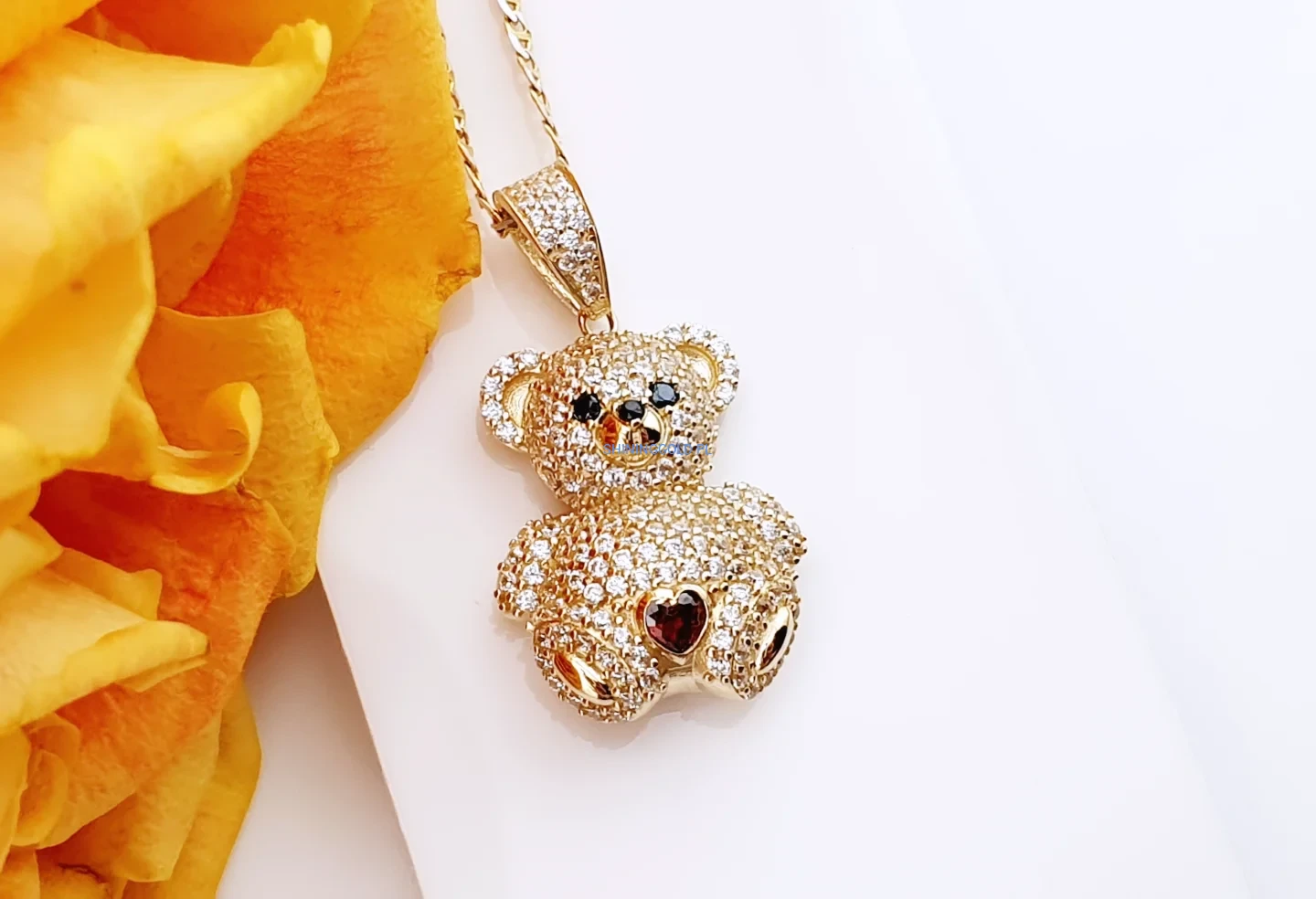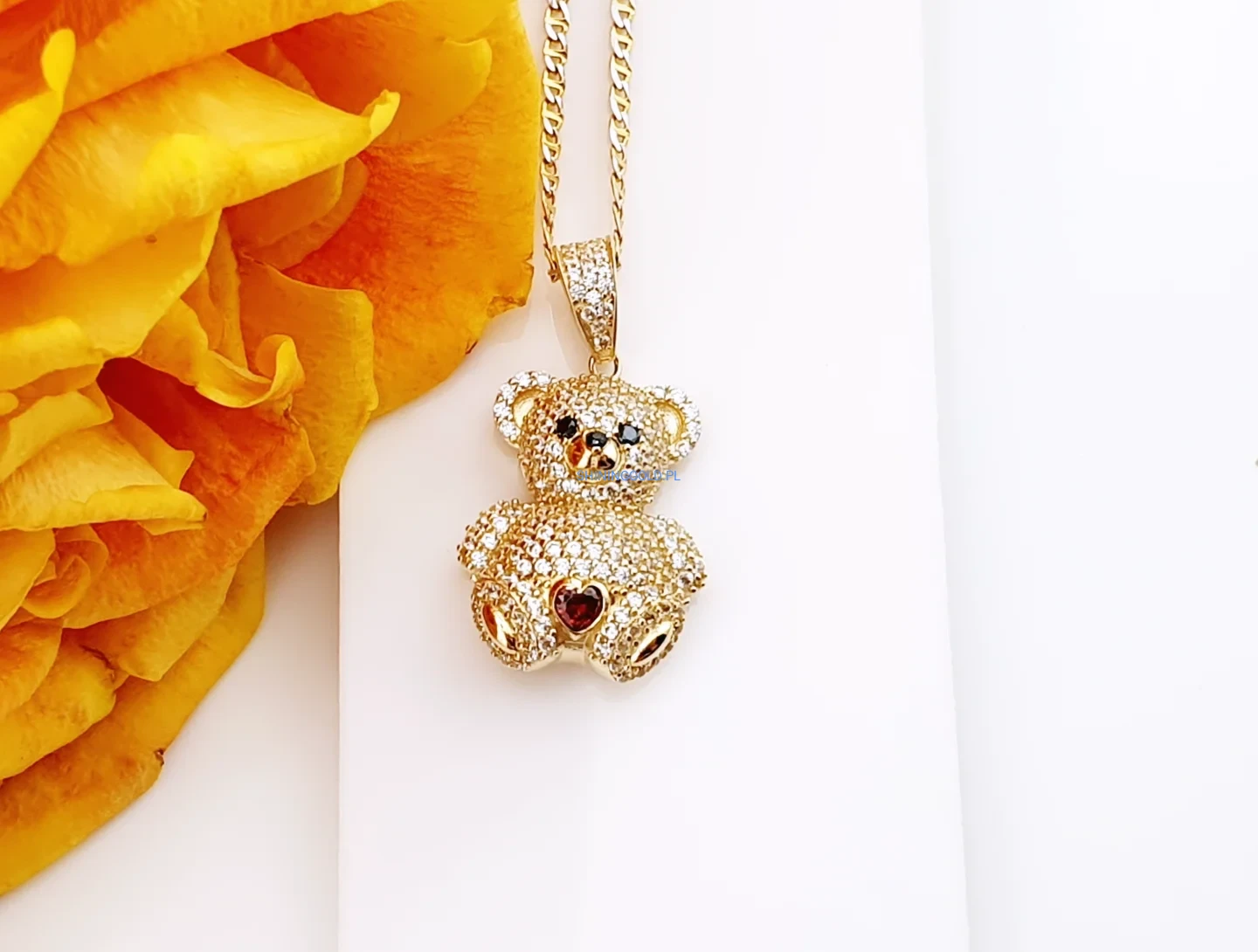 Urocza zawieszka w kształcie misia to biżuteria, która łączy elegancję z odrobiną słodyczy.