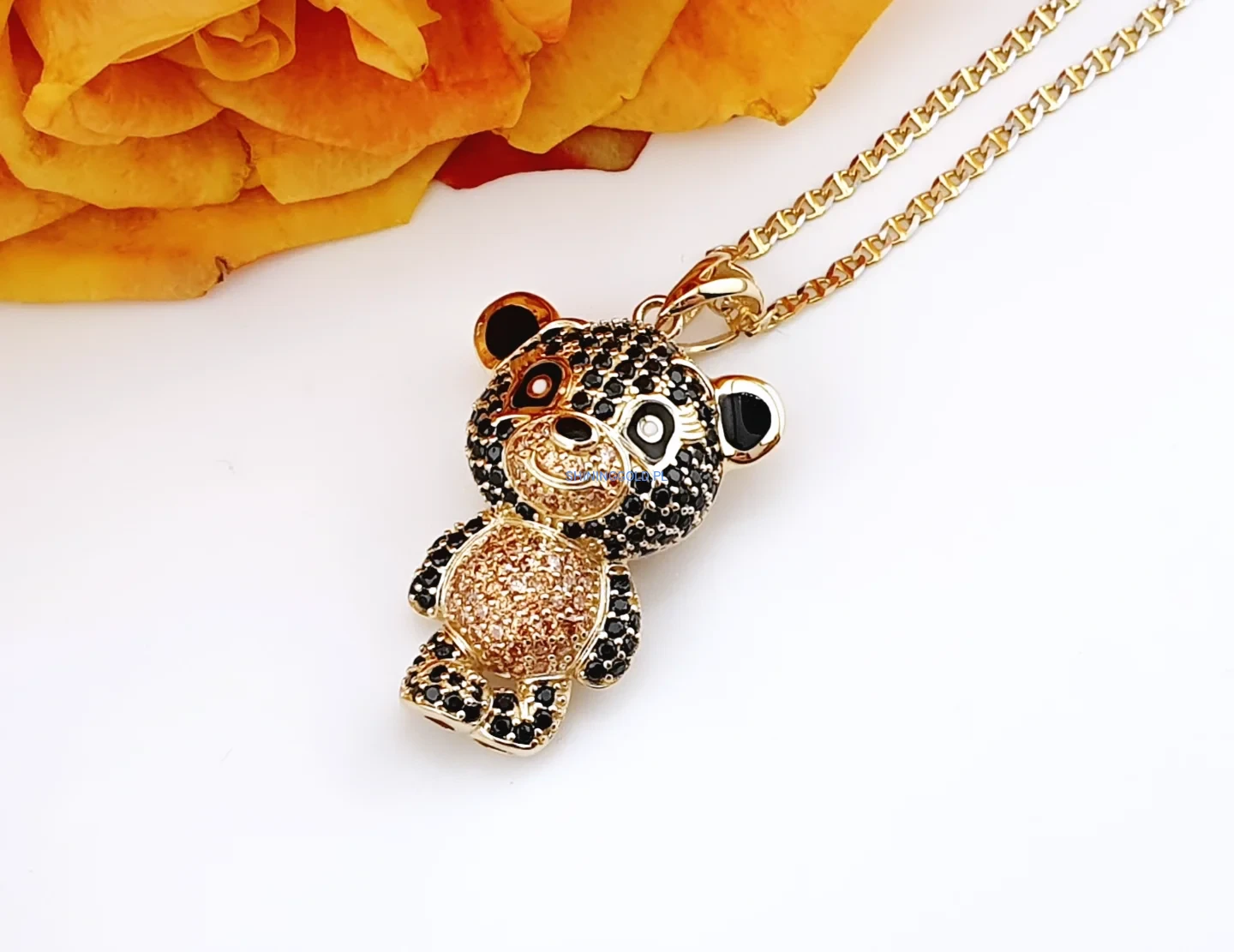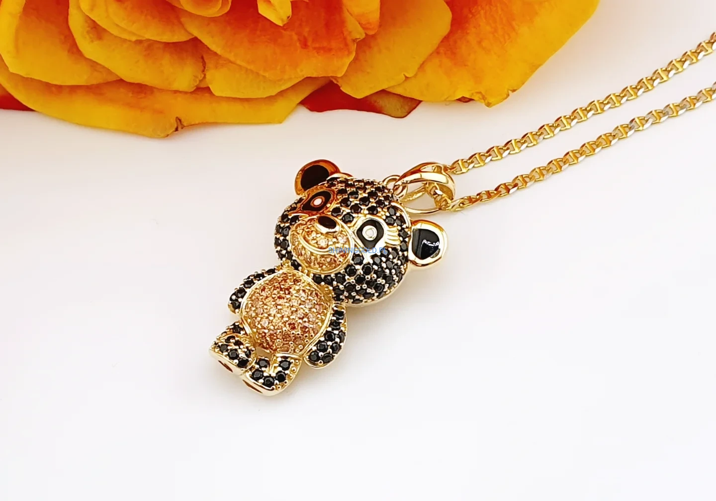 Złota zawieszka miś z czarnymi cyrkoniami (312A)