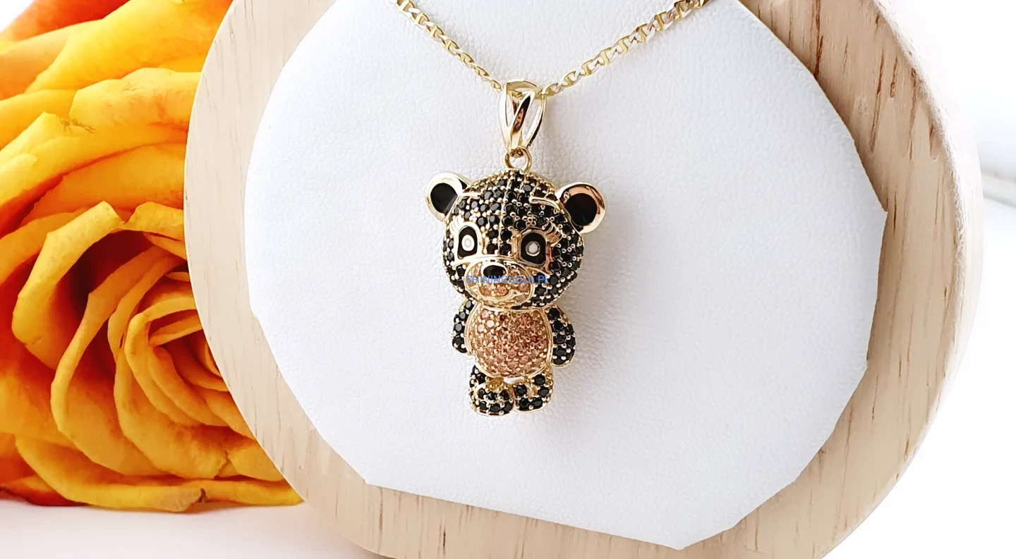 Stylowa zawieszka w kształcie misia to połączenie uroku i elegancji w nowoczesnym wydaniu.