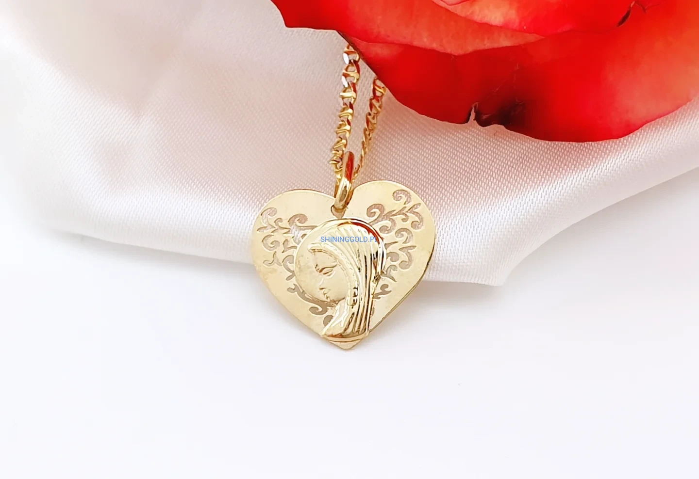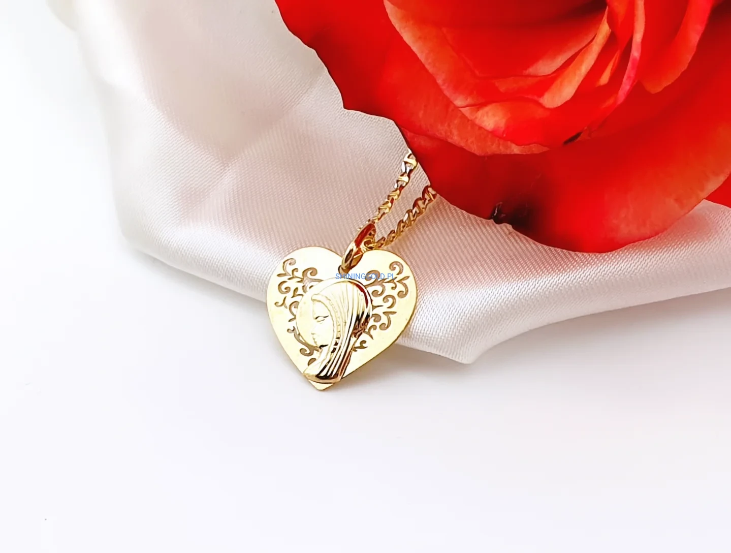 Złota zawieszka serce z Matką Boską (369.WS)