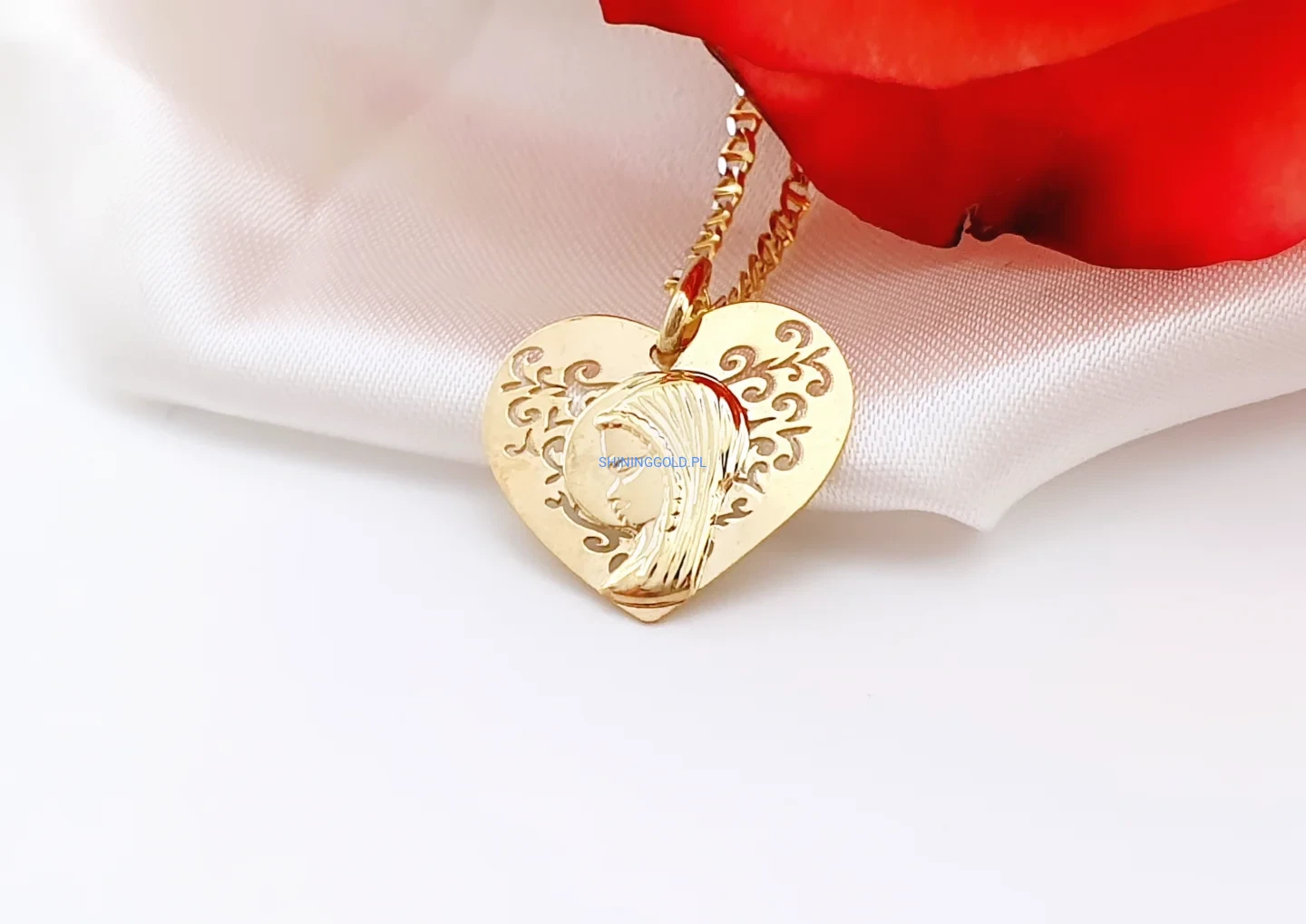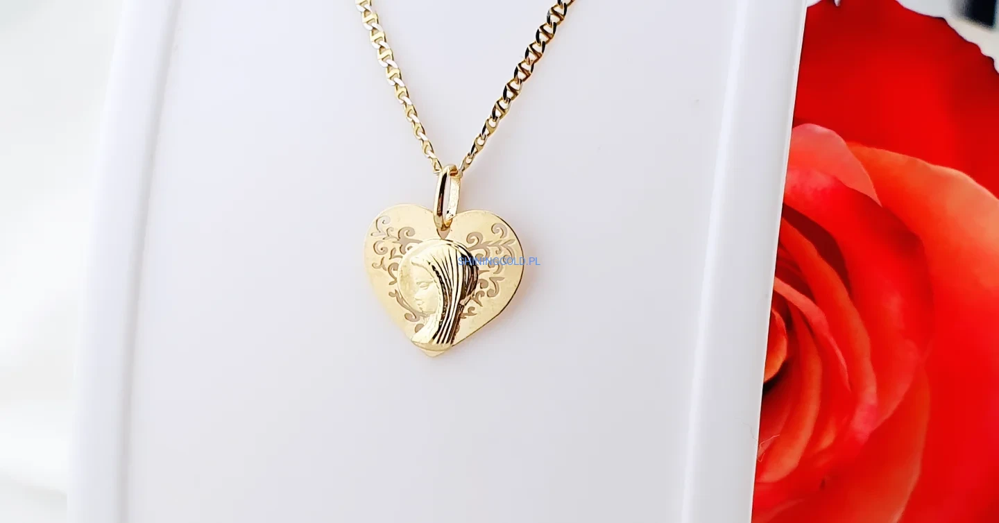Złota zawieszka 375 – serce z wizerunkiem Matki Boskiej