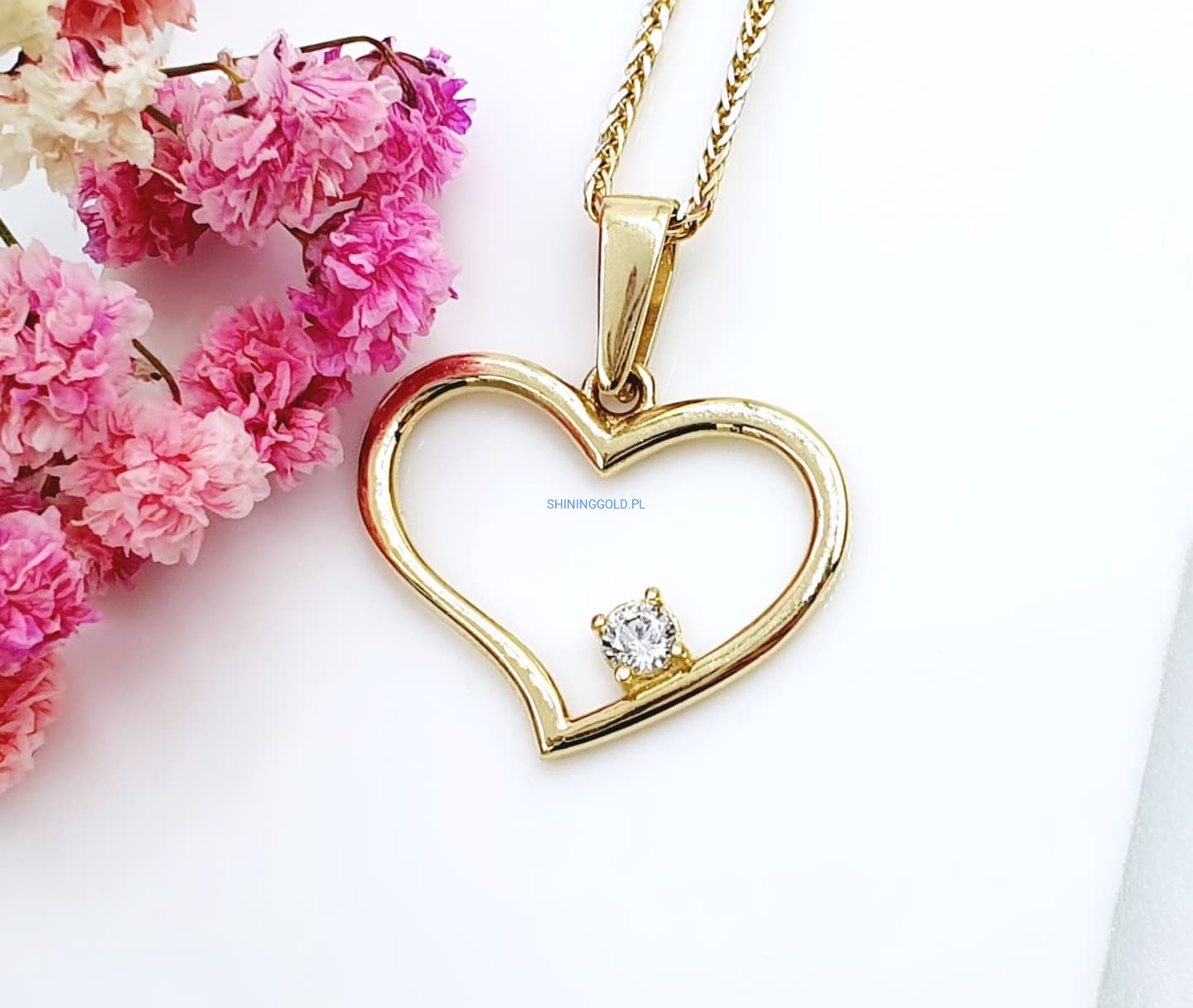 Złota zawieszka serce z cyrkonią – symbol miłości i elegancji