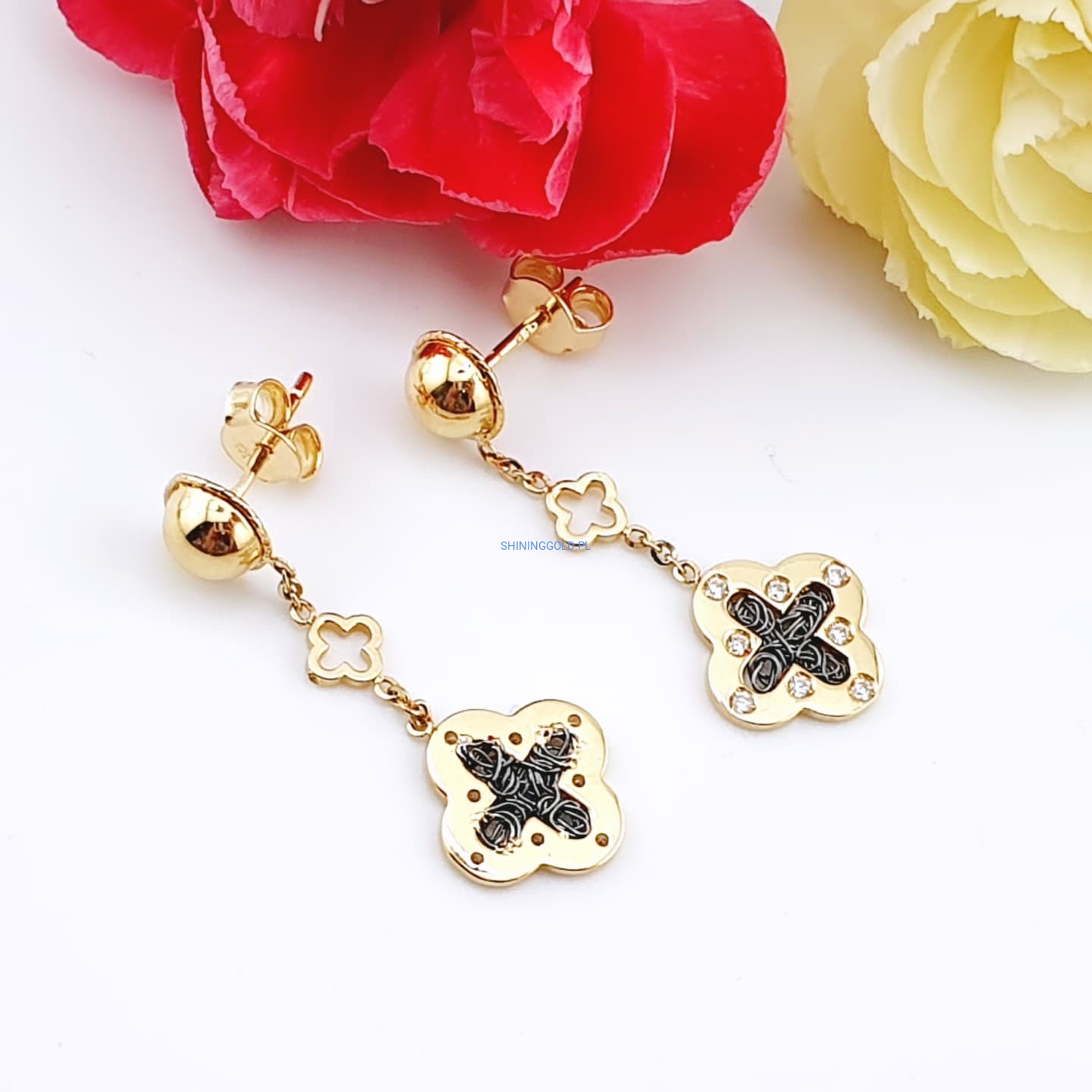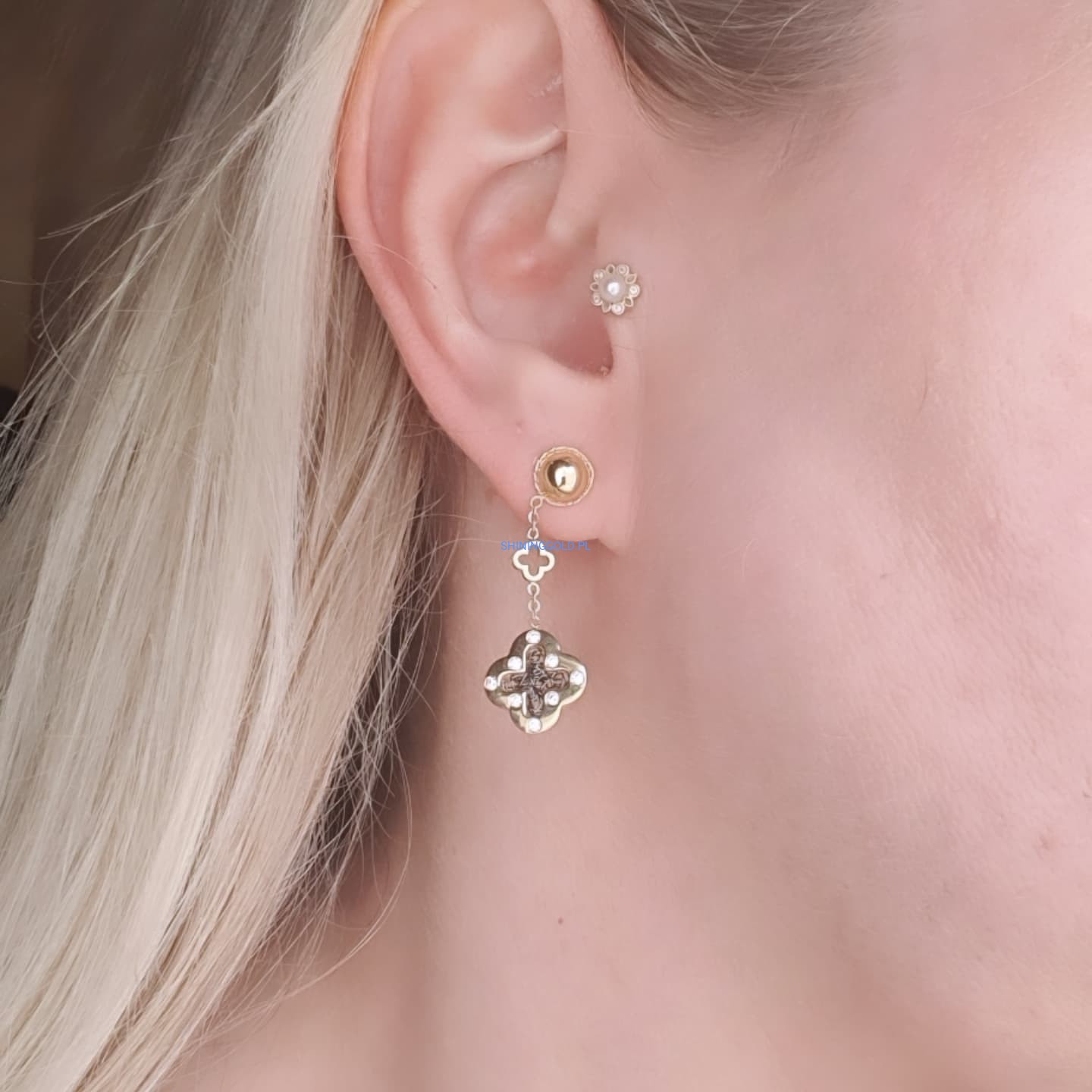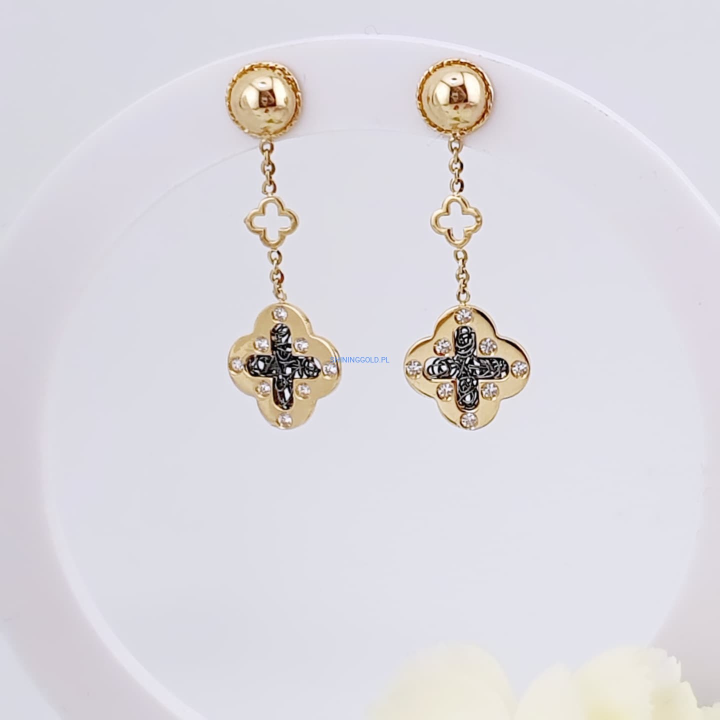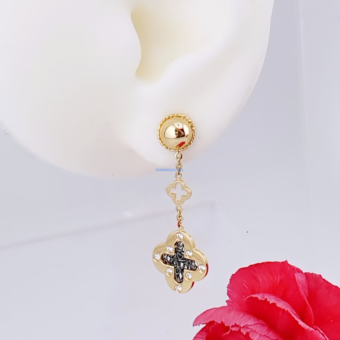 Zakończenie: Złote kolczyki wiszące to ponadczasowa biżuteria, która z pewnością doda uroku każdej stylizacji. Doskonały wybór na prezent lub jako wyjątkowy element Twojej kolekcji. Zamów już dziś, aby poczuć elegancję zamkniętą w tej pięknej biżuterii!