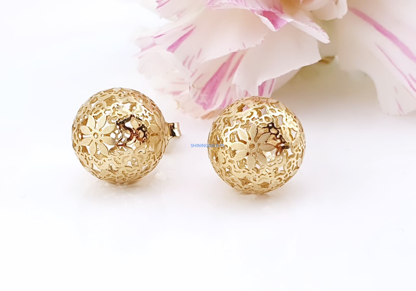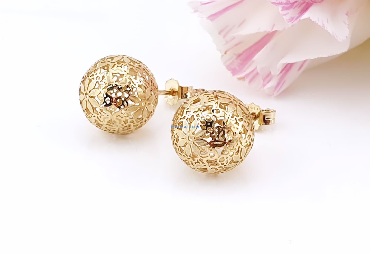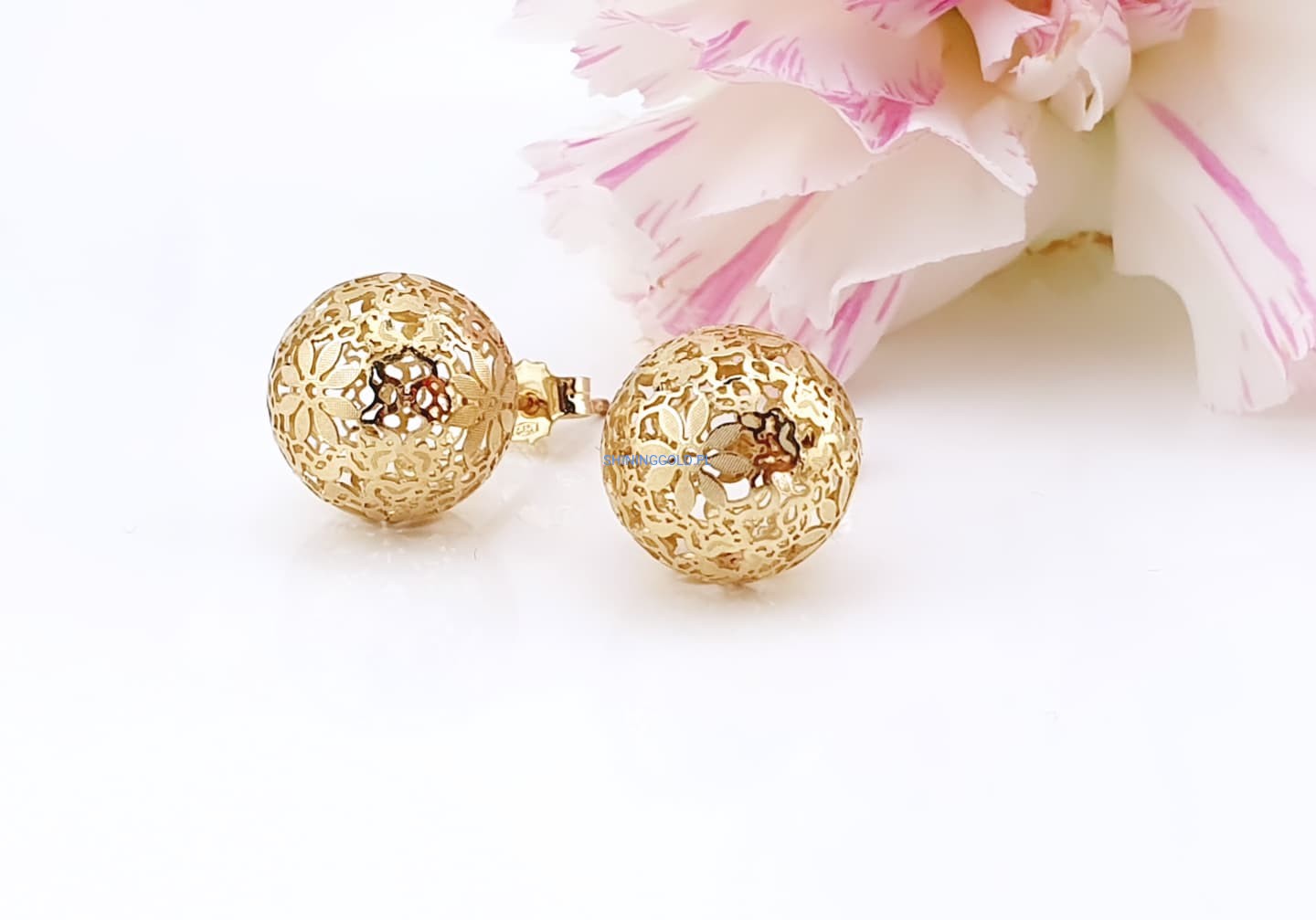 Złote Kolczyki Ażurowe Kulki – Próba 585