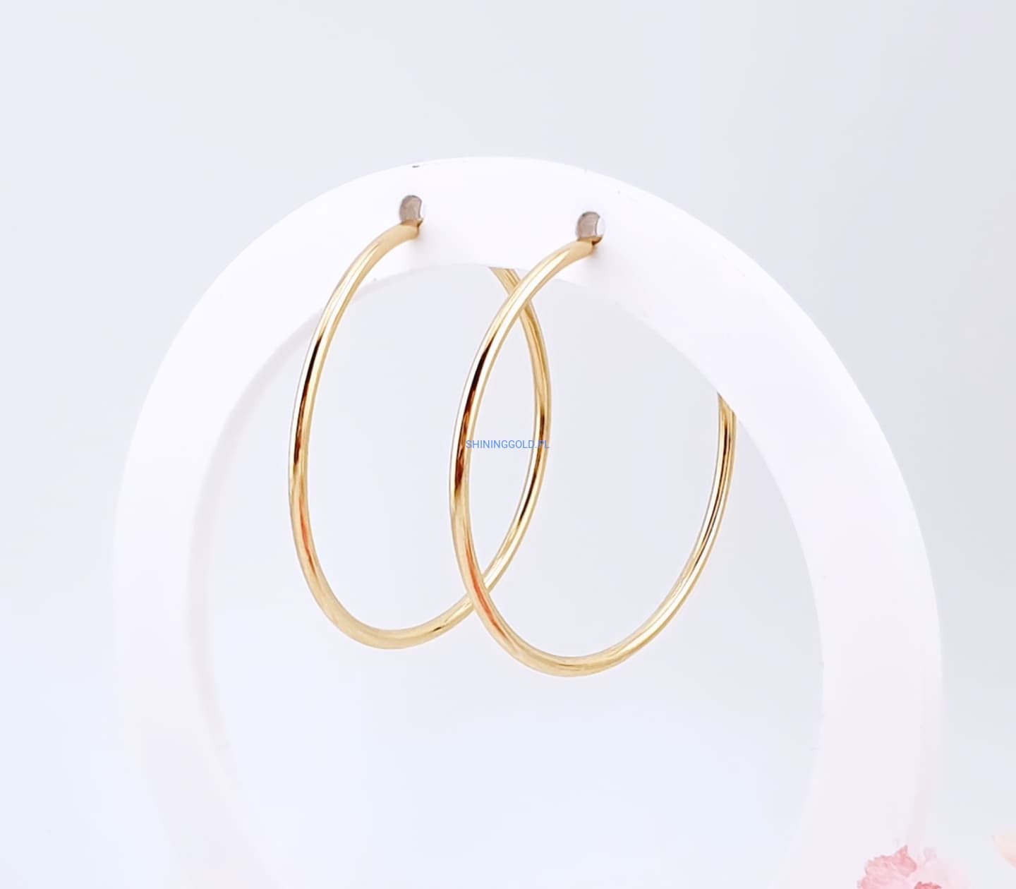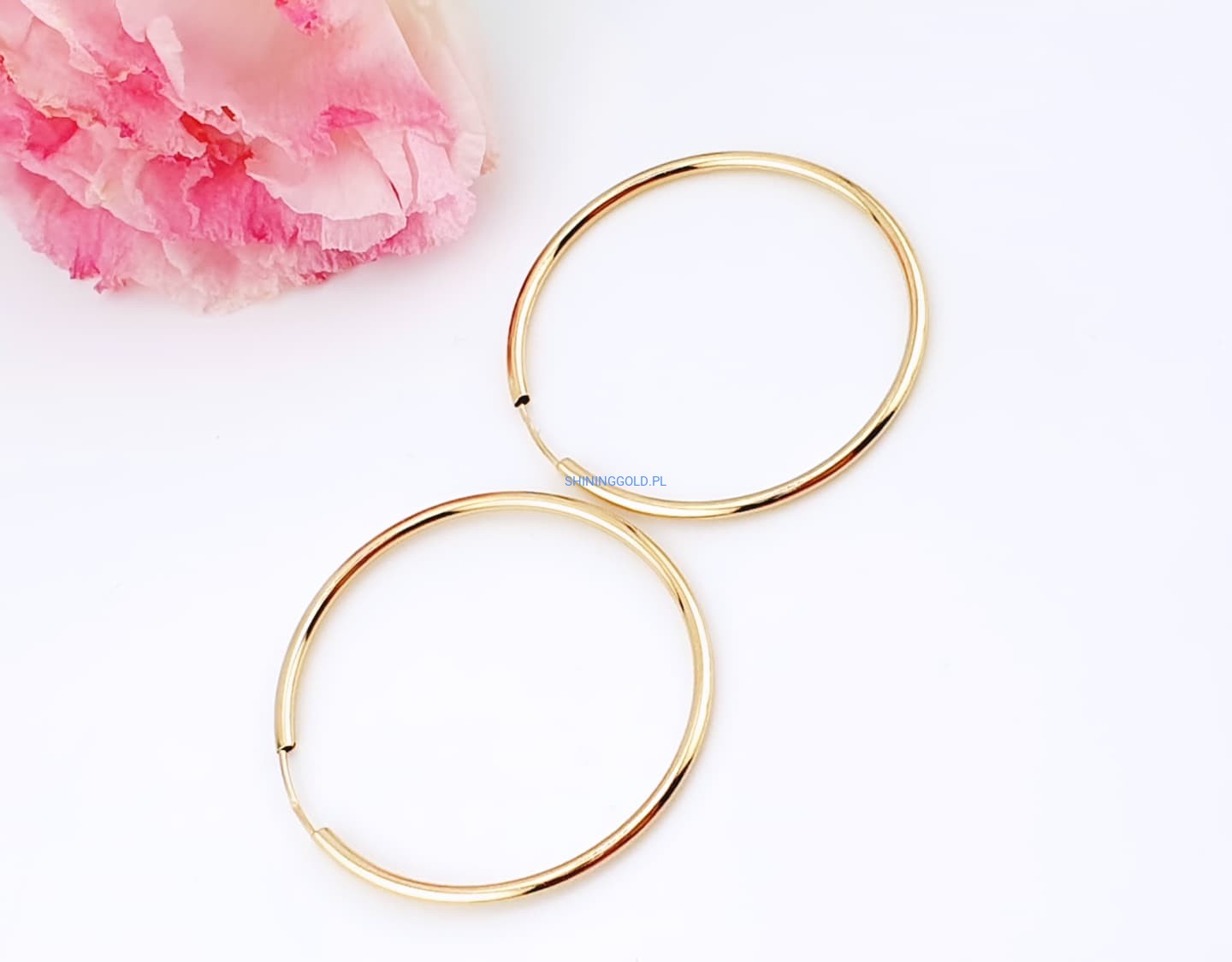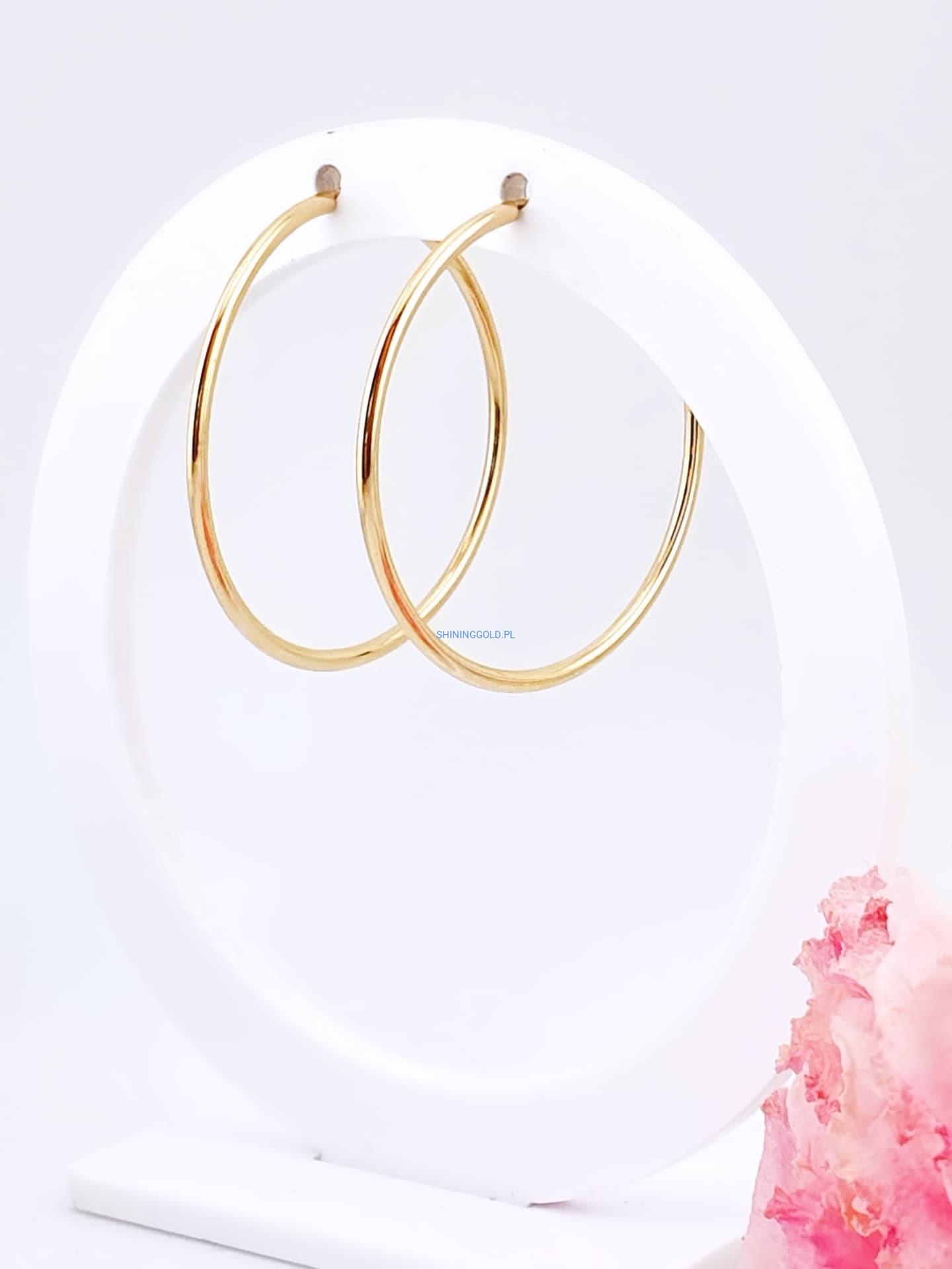 Klasyczne kolczyki w formie dużych, delikatnych kół, wykonane z wysokiej jakości żółtego złota próby 585. Minimalistyczny design i lekka forma sprawiają, że są one doskonałym dodatkiem na każdą okazję – od codziennego noszenia po bardziej eleganckie wyjścia.