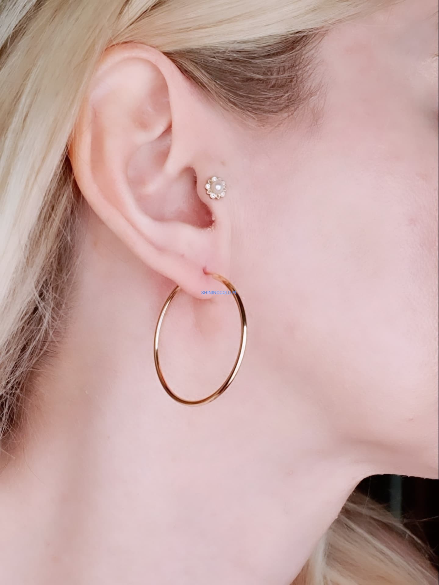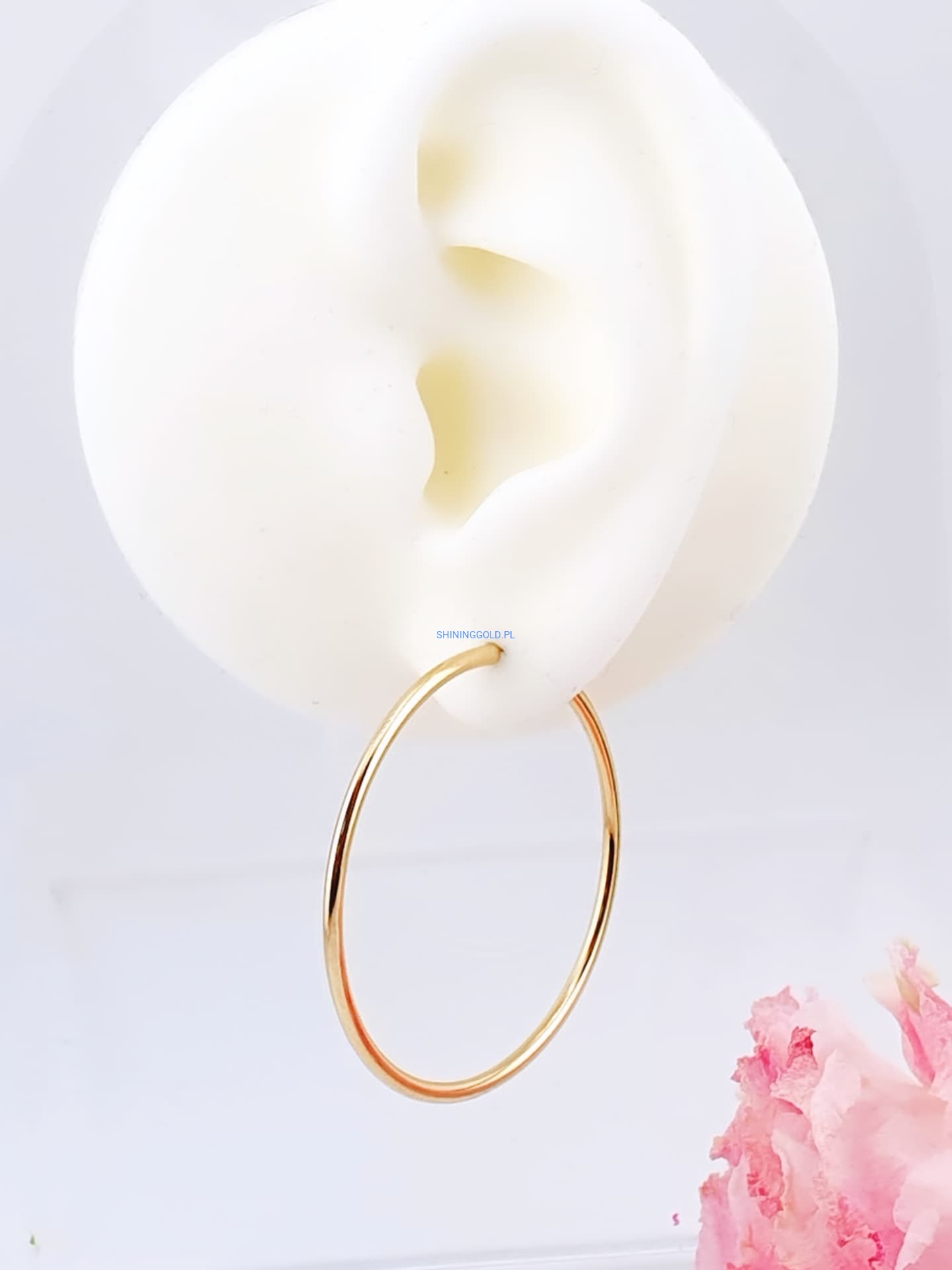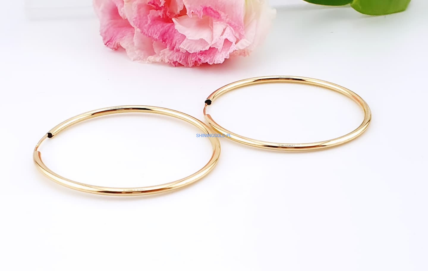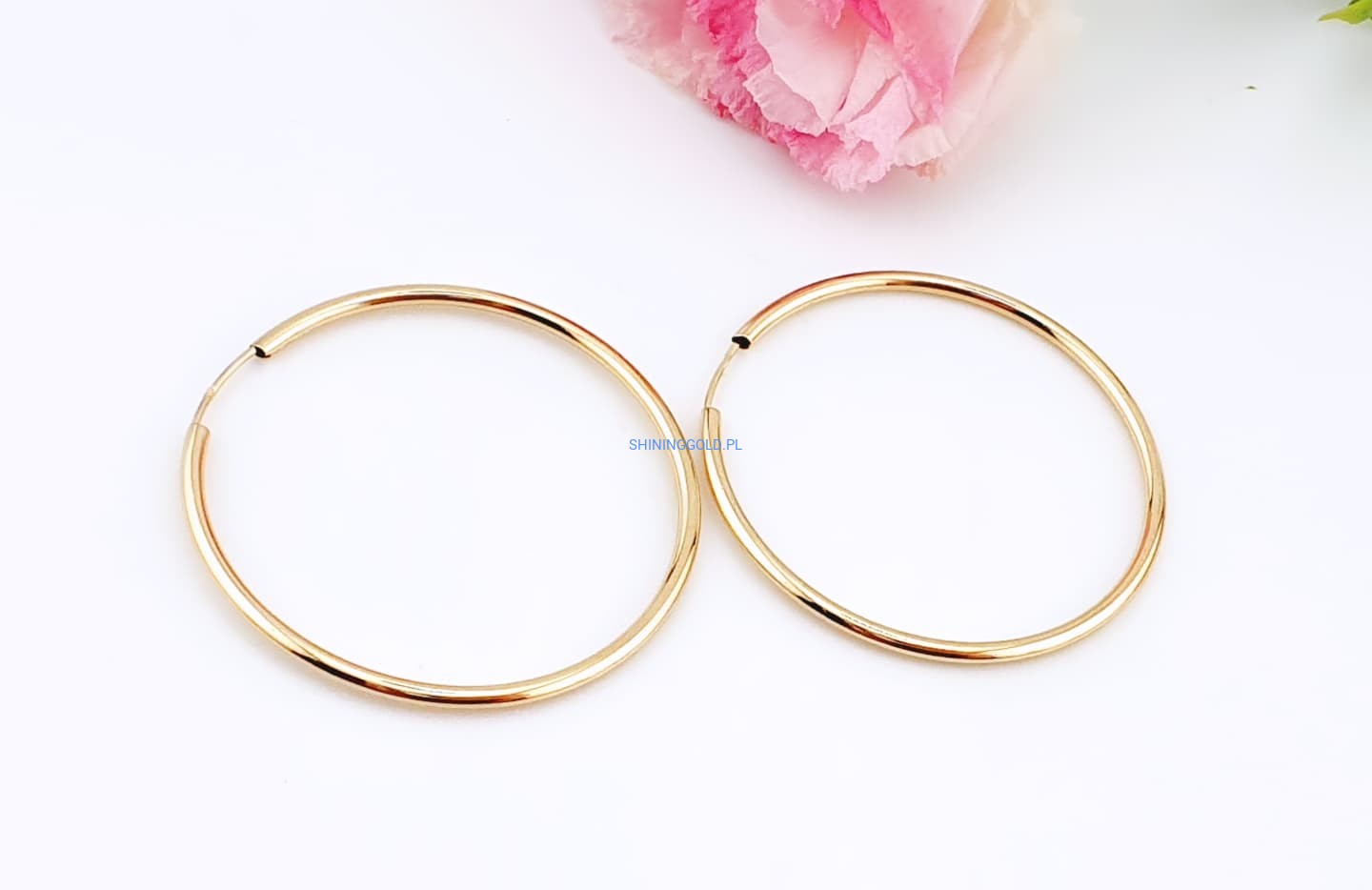 Klasyczne kolczyki w formie dużych, delikatnych kół, wykonane z wysokiej jakości żółtego złota próby 585. Minimalistyczny design i lekka forma sprawiają, że są one doskonałym dodatkiem na każdą okazję – od codziennego noszenia po bardziej eleganckie wyjścia.