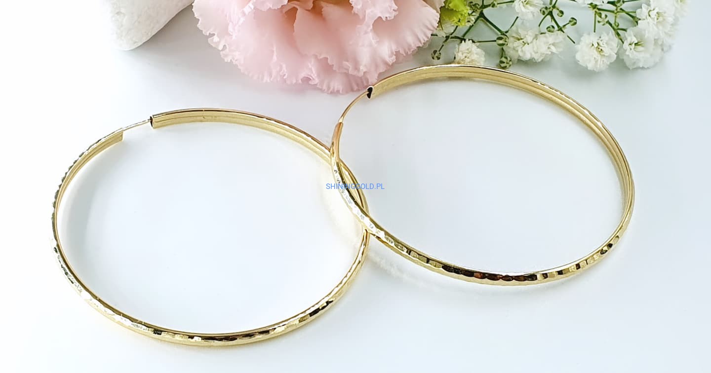 Klasyczne i efektowne kolczyki w kształcie dużych kół, wykonane z żółtego złota próby 585. Ich ponadczasowy design sprawia, że doskonale pasują zarówno do codziennych, jak i eleganckich stylizacji.