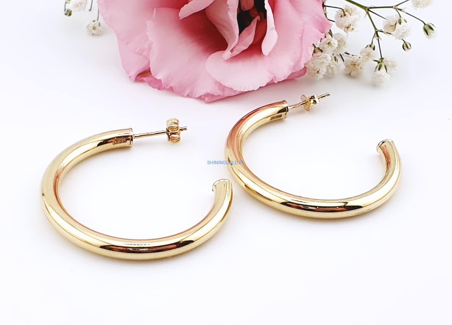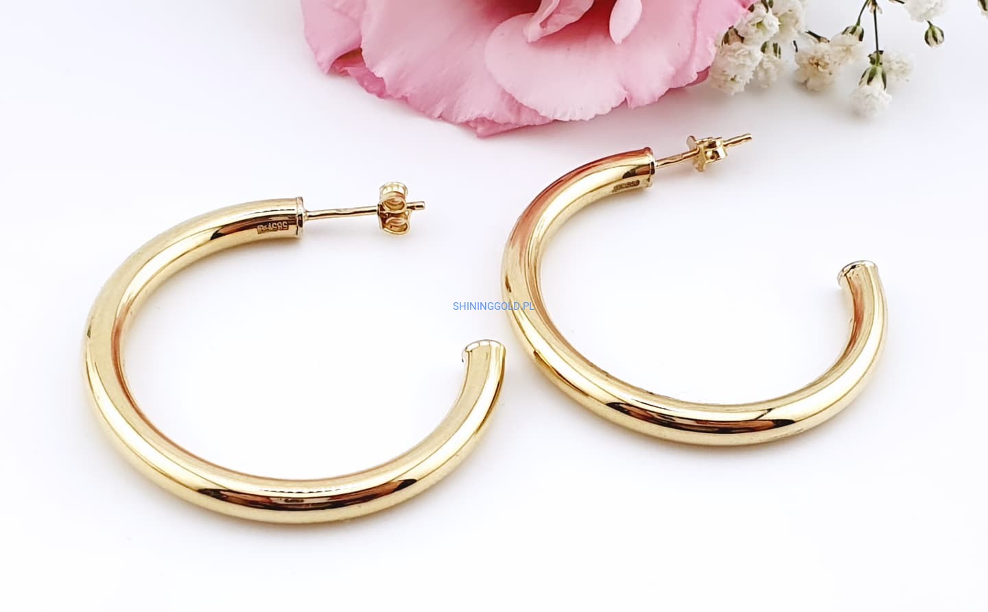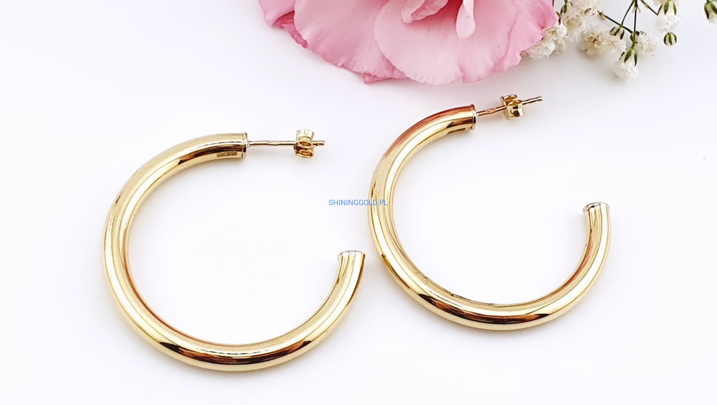 Złote, nowe kolczyki koła dmuchane – próba 585