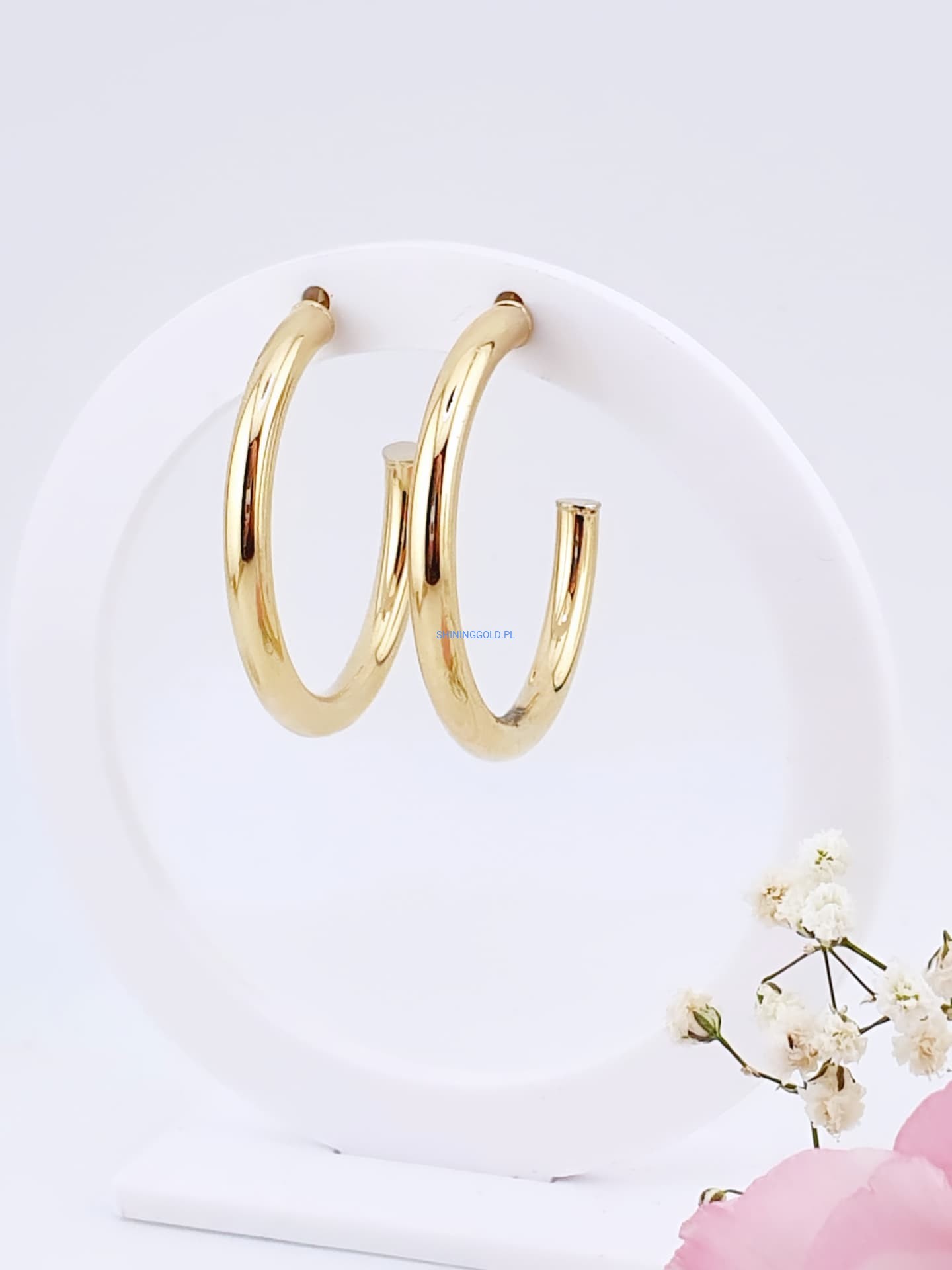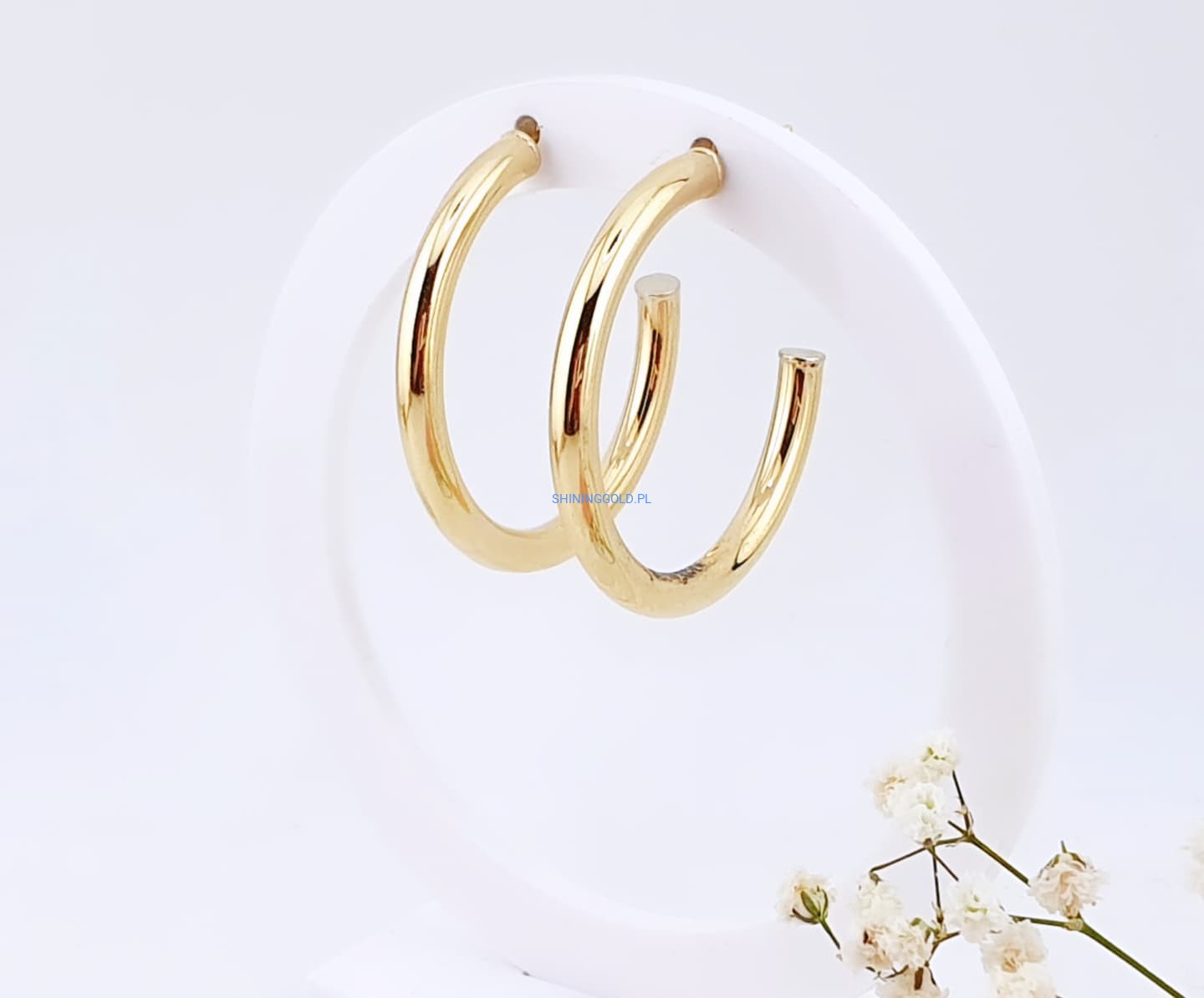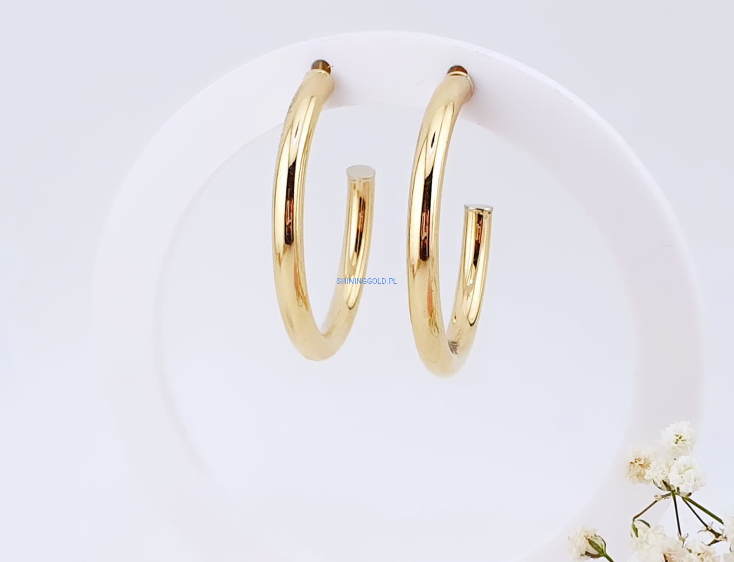 Te subtelnie połyskujące kolczyki to ponadczasowa klasyka w nowoczesnym wydaniu. Ich lekka konstrukcja sprawia, że mimo dużego rozmiaru są wygodne w noszeniu. Pasują do wielu stylizacji – od codziennych po bardziej eleganckie.
