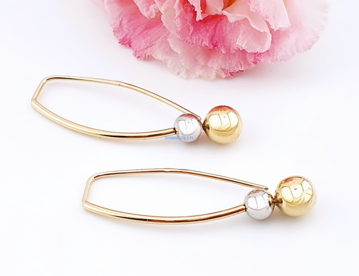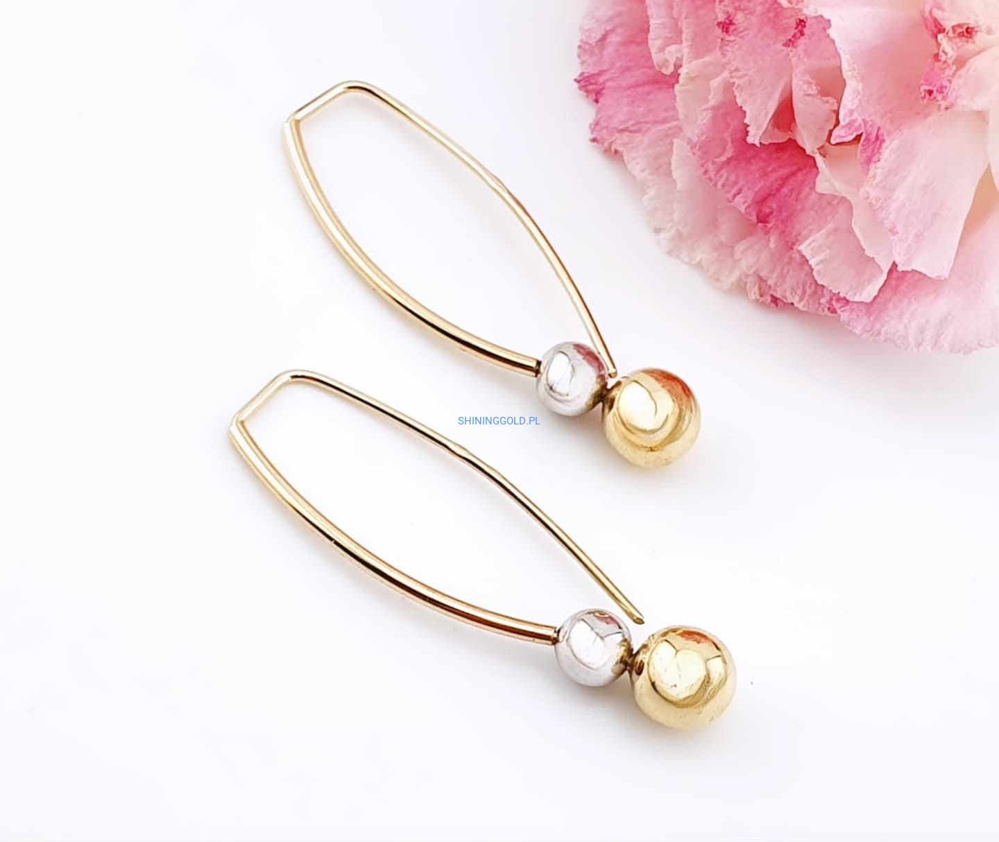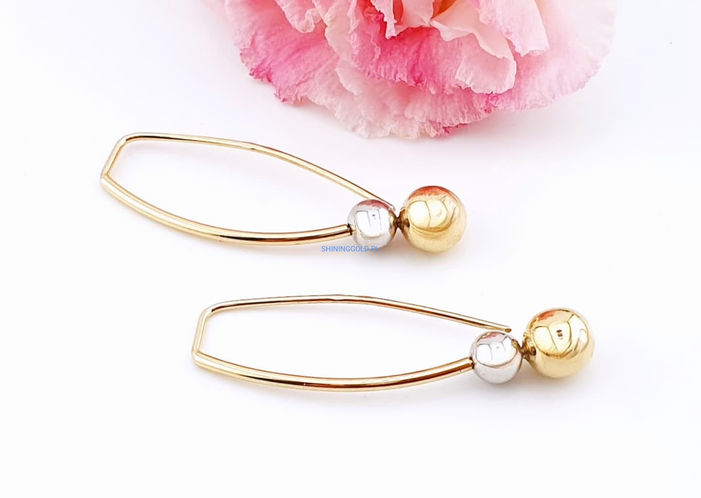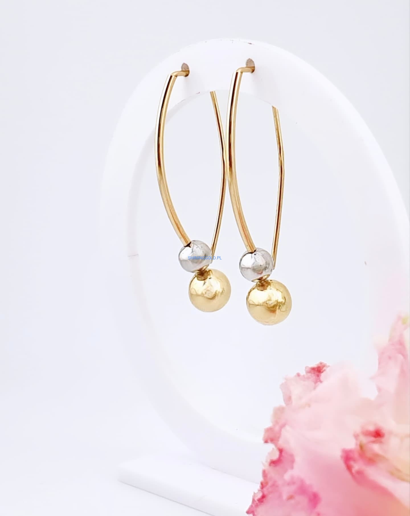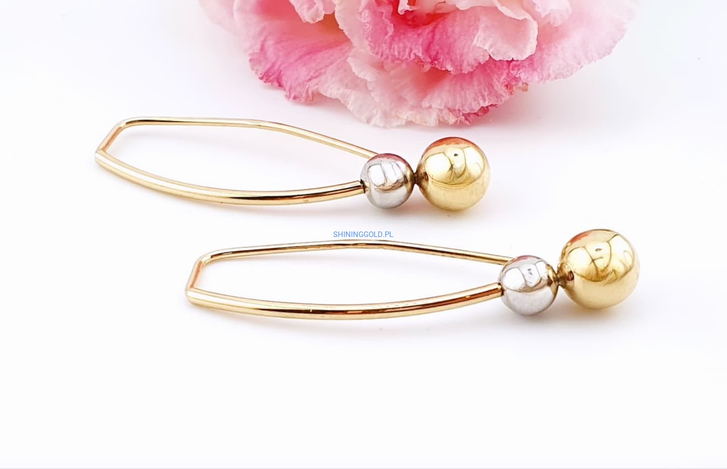 Złote, nowe kolczyki wiszące z kulkami – próba 585