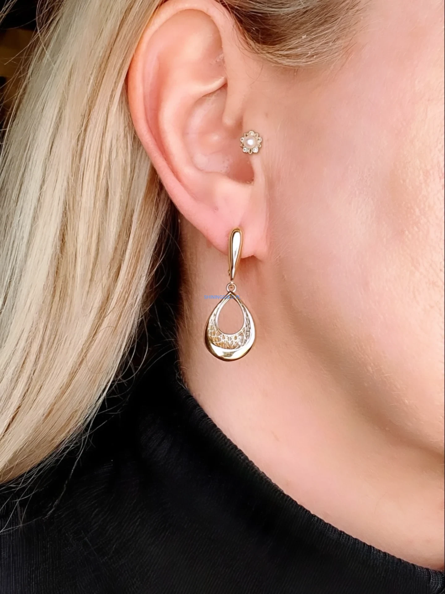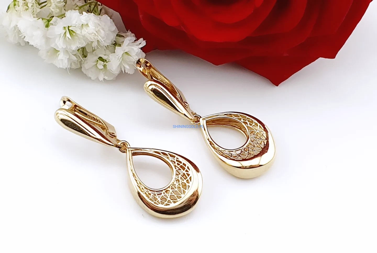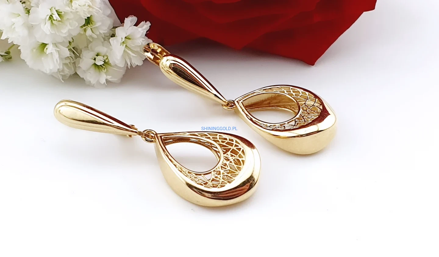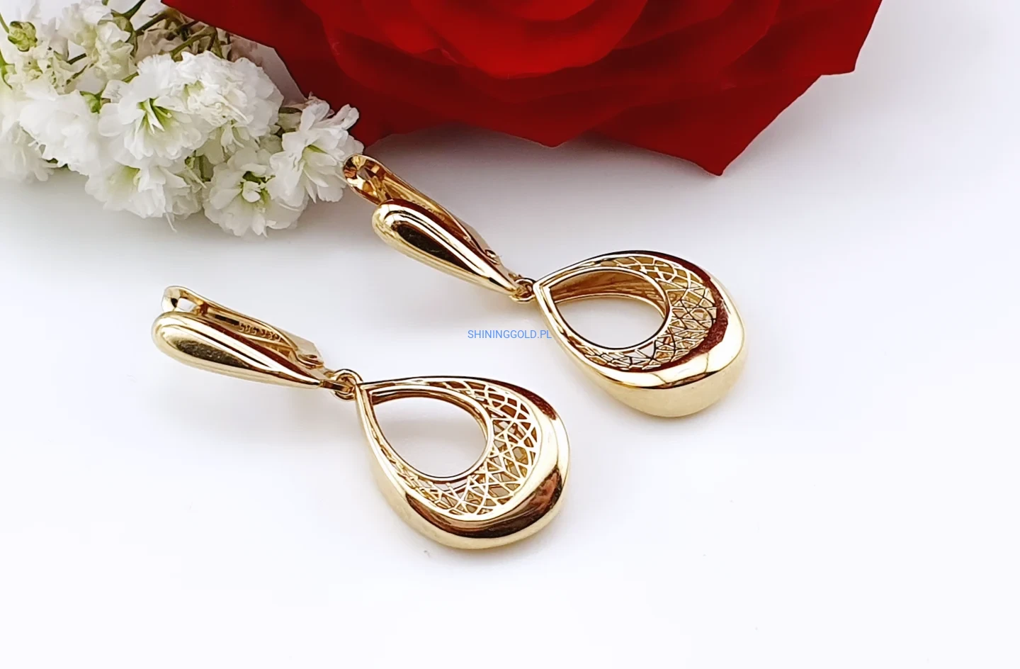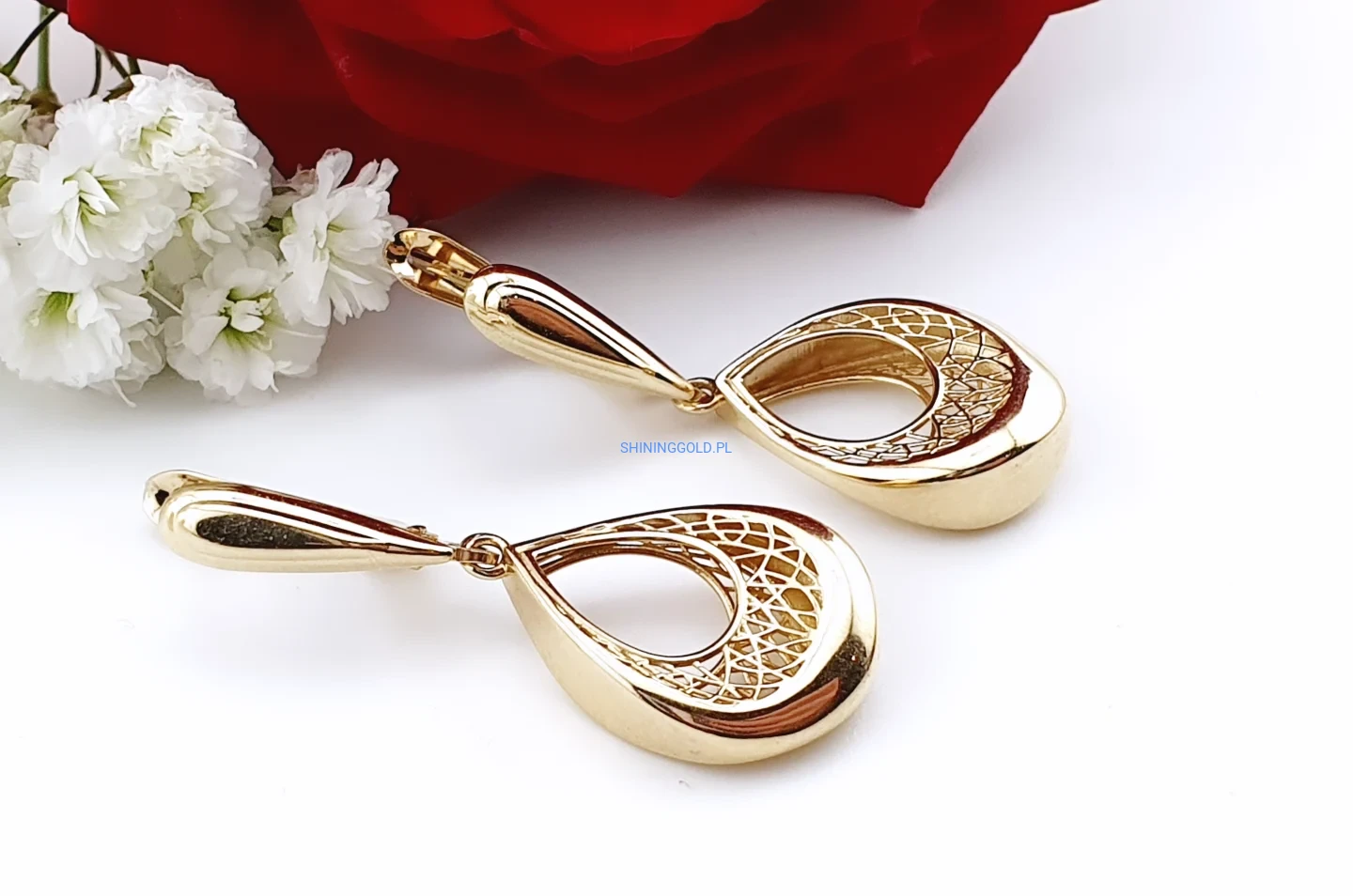 Złote ażurowe kolczyki 735a to elegancka biżuteria, która łączy klasykę i nowoczesność. Wykonane ze złota próby 585, zachwycają misternym ażurowym wzorem, który nadaje im lekkości i sprawia, że pięknie połyskują przy każdym ruchu. Ich wydłużona forma podkreśla szyję i dodaje całości wyjątkowego charakteru.