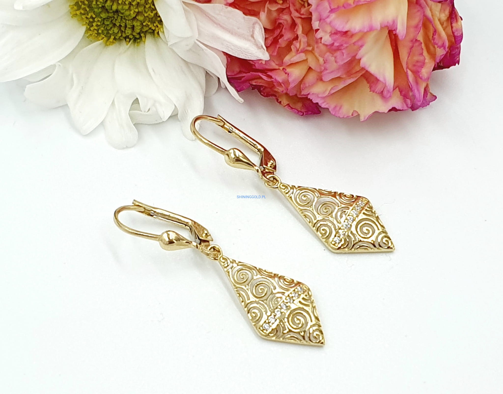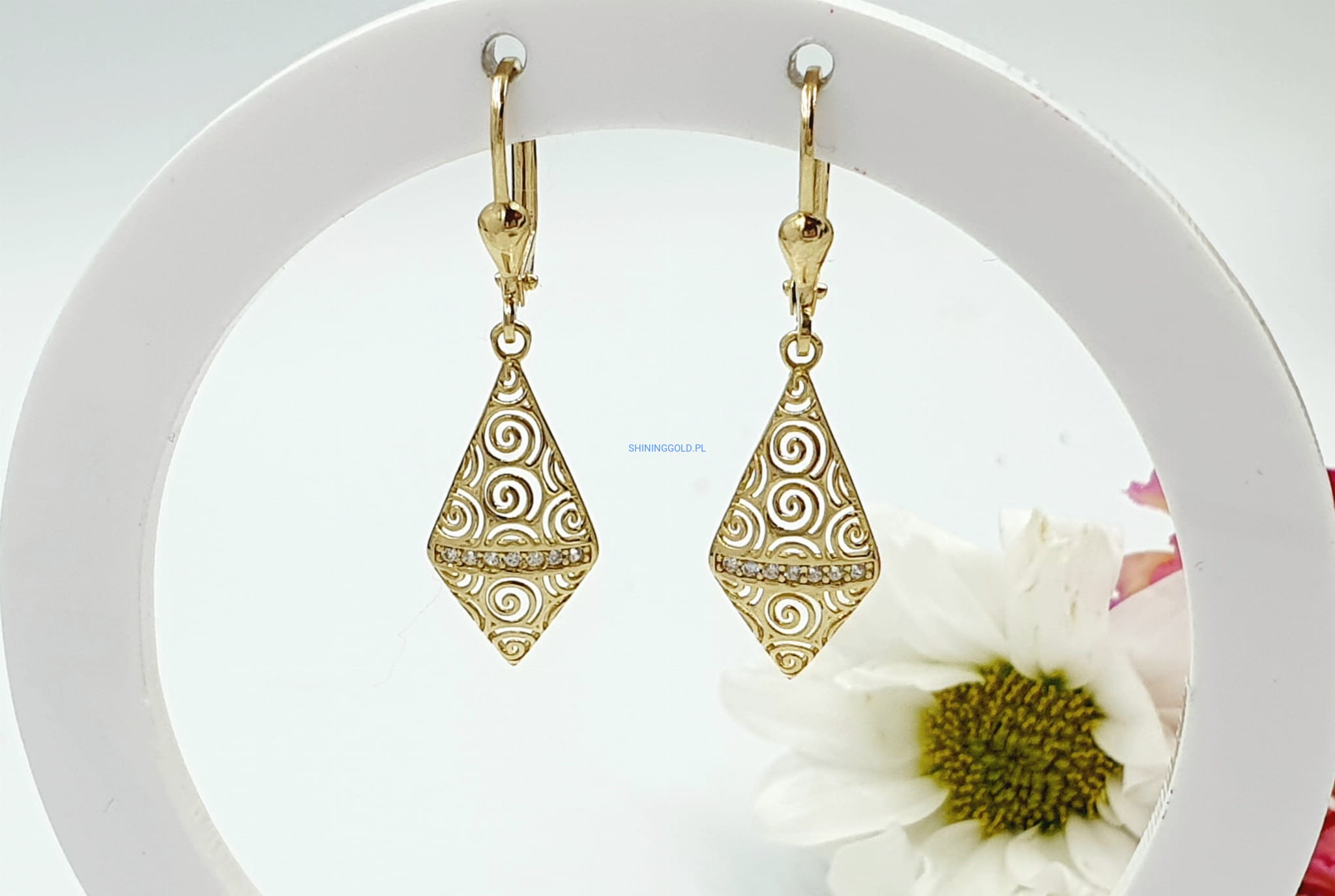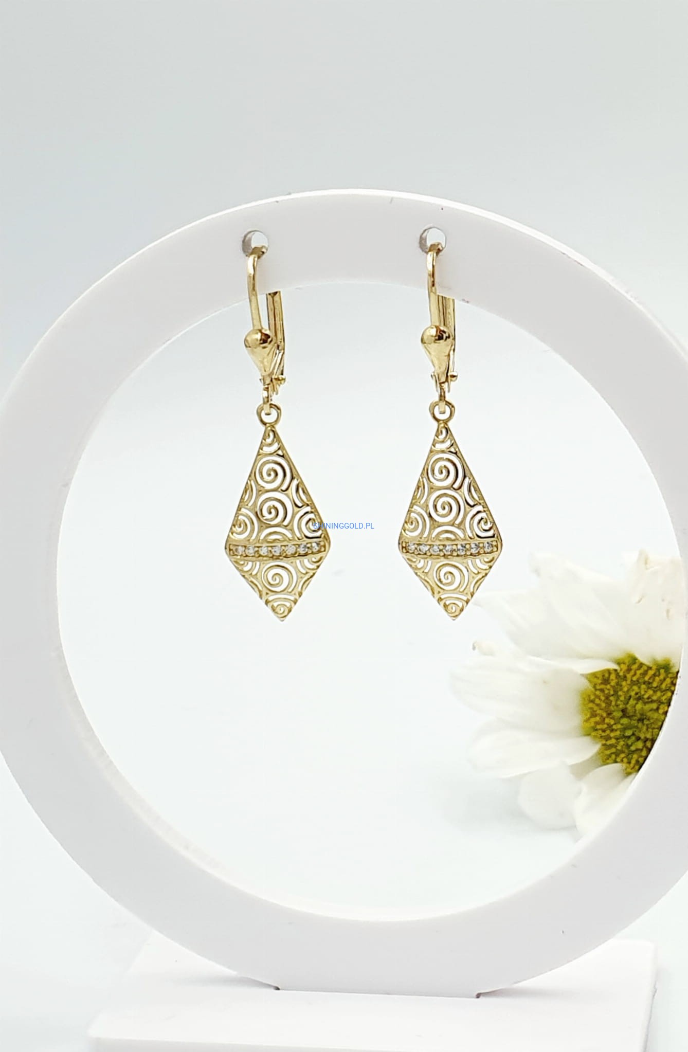 Dodaj blasku swoim stylizacjom dzięki wyjątkowym, złotym kolczykom o misternym ażurowym wzorze. Ich unikalny design, podkreślony subtelnymi cyrkoniami, sprawia, że są idealnym wyborem zarówno na co dzień, jak i na wyjątkowe okazje.