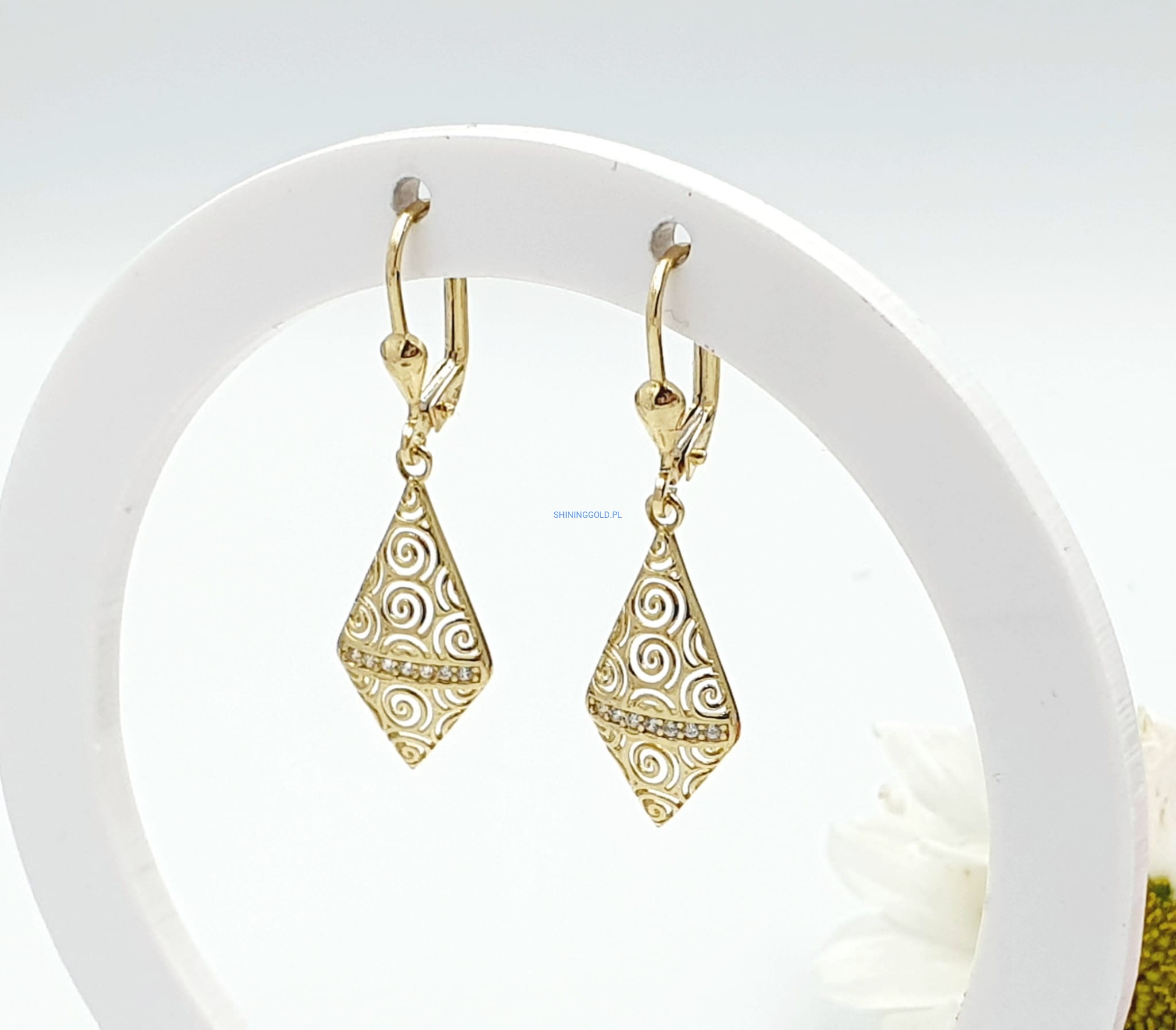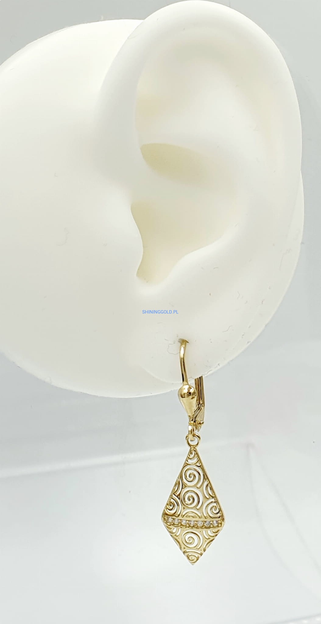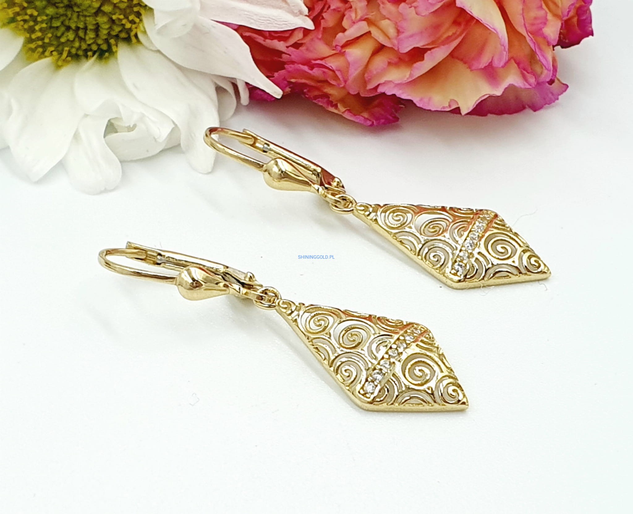 Dodaj blasku swoim stylizacjom dzięki wyjątkowym, złotym kolczykom o misternym ażurowym wzorze. Ich unikalny design, podkreślony subtelnymi cyrkoniami, sprawia, że są idealnym wyborem zarówno na co dzień, jak i na wyjątkowe okazje.