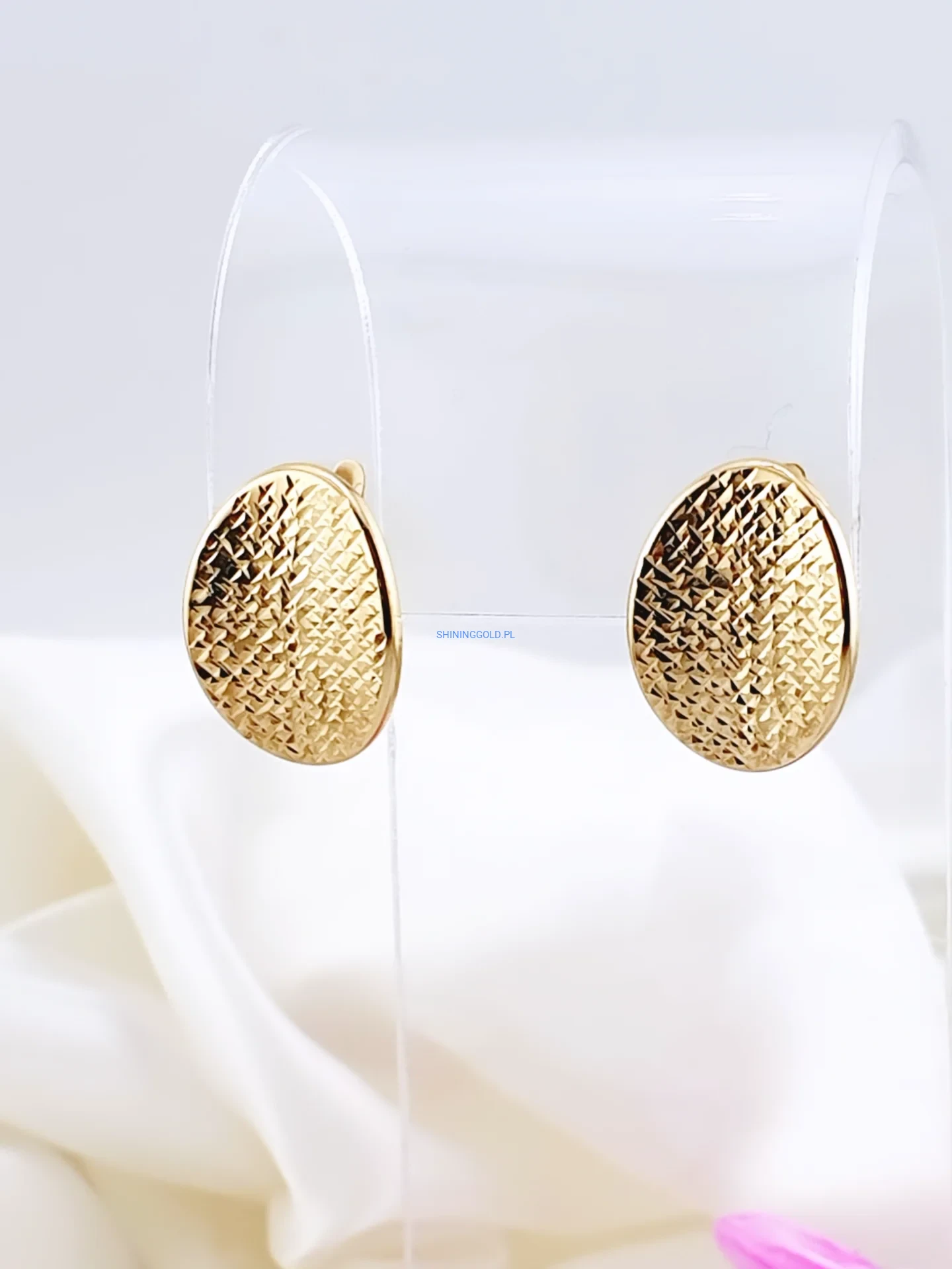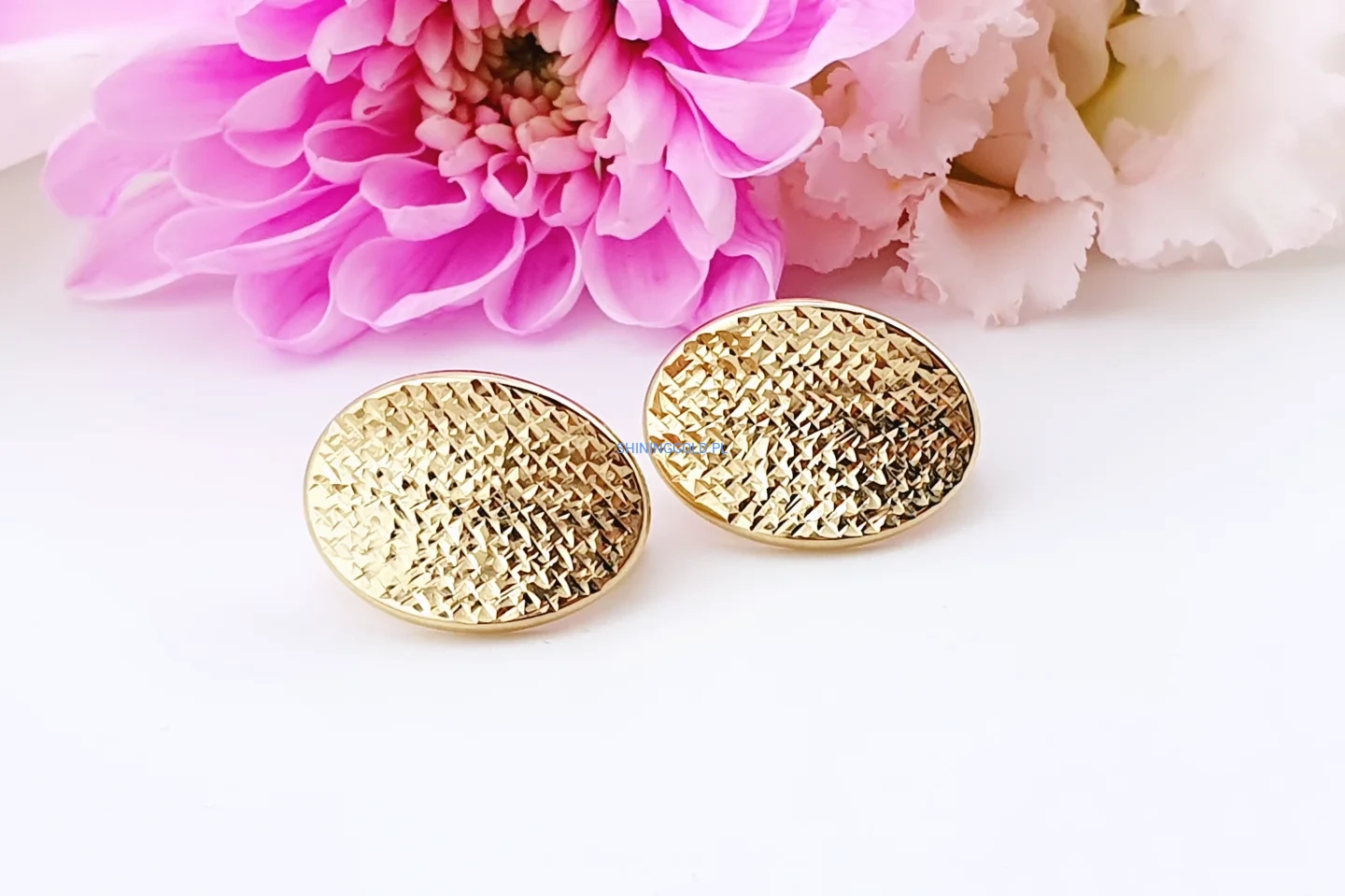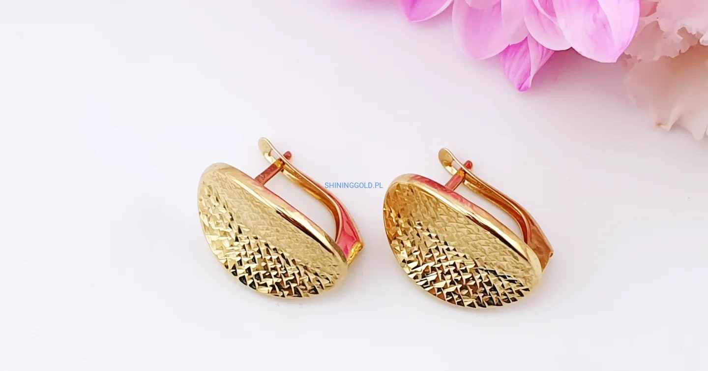 Złote kolczyki 585 – klasyczne, eleganckie, o pięknie fakturowanej powierzchni