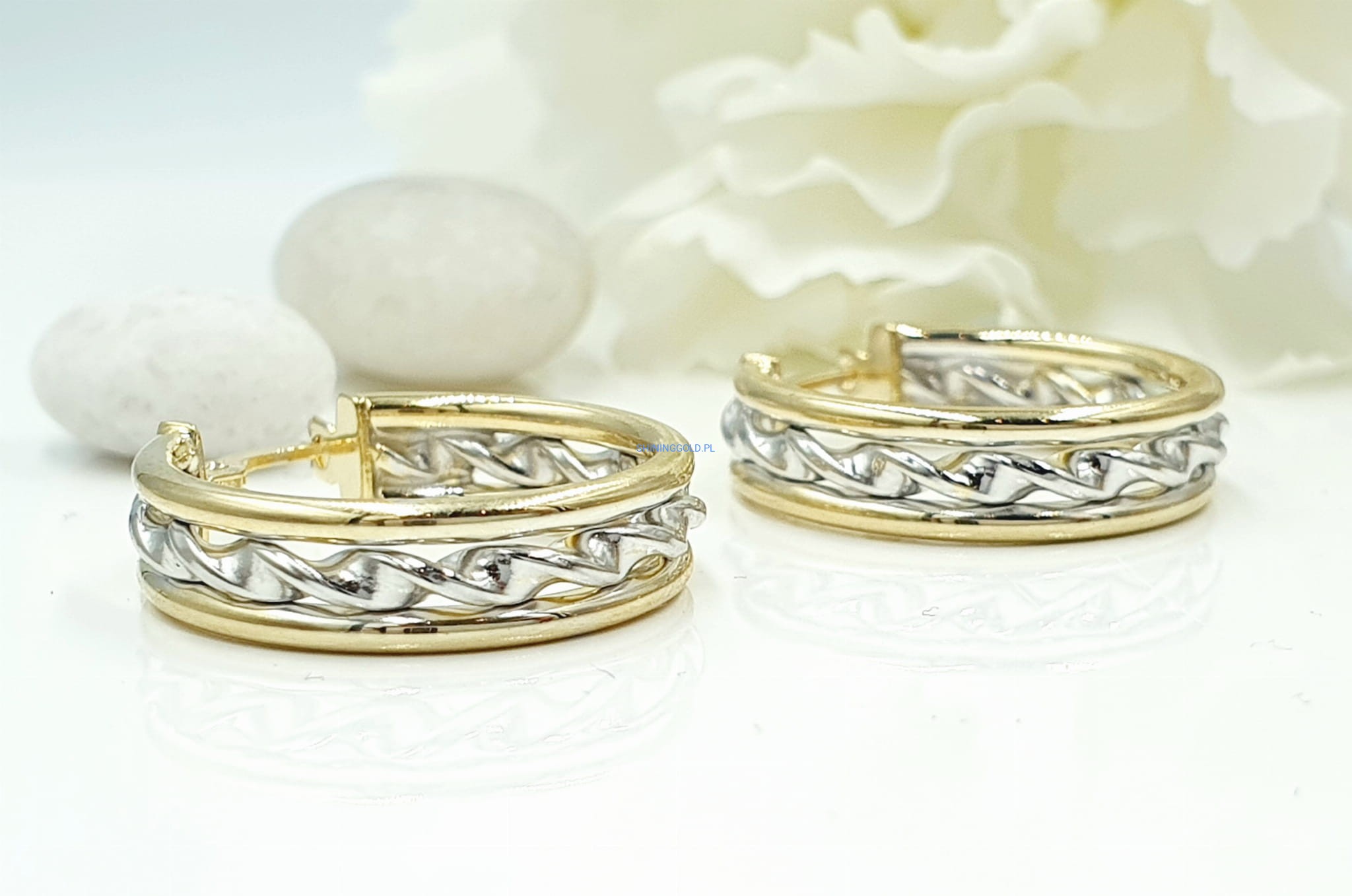 Dwa kolory złota: Połączenie żółtego i białego złota tworzy elegancki kontrast, dodając kolczykom wyjątkowego uroku i szyku.