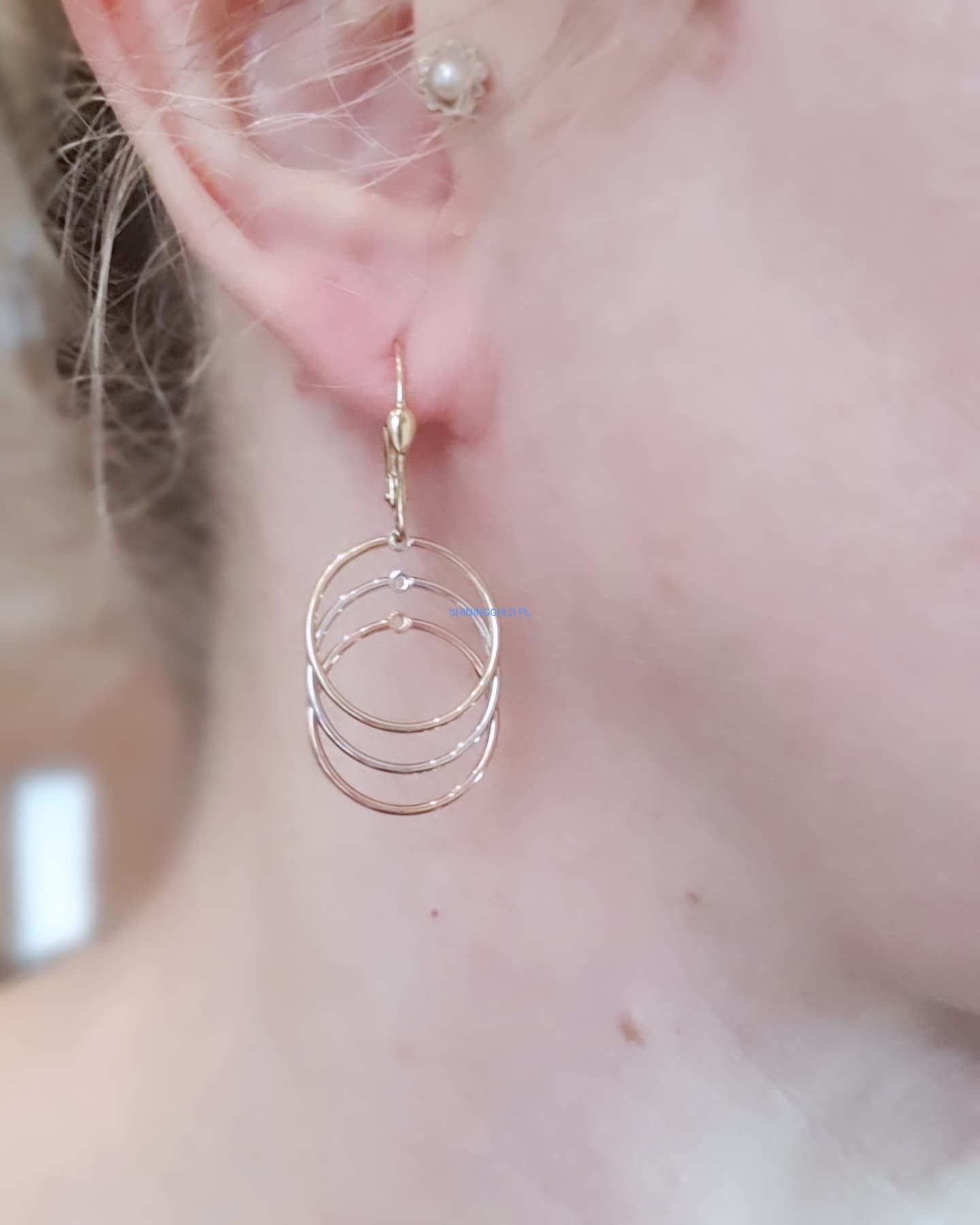 Złote, nowe kolczyki wiszące – trzykolorowe koła