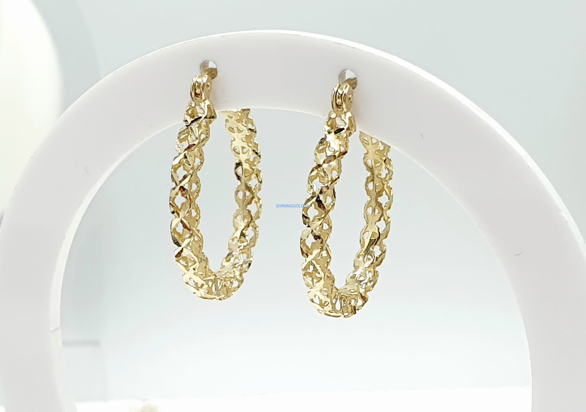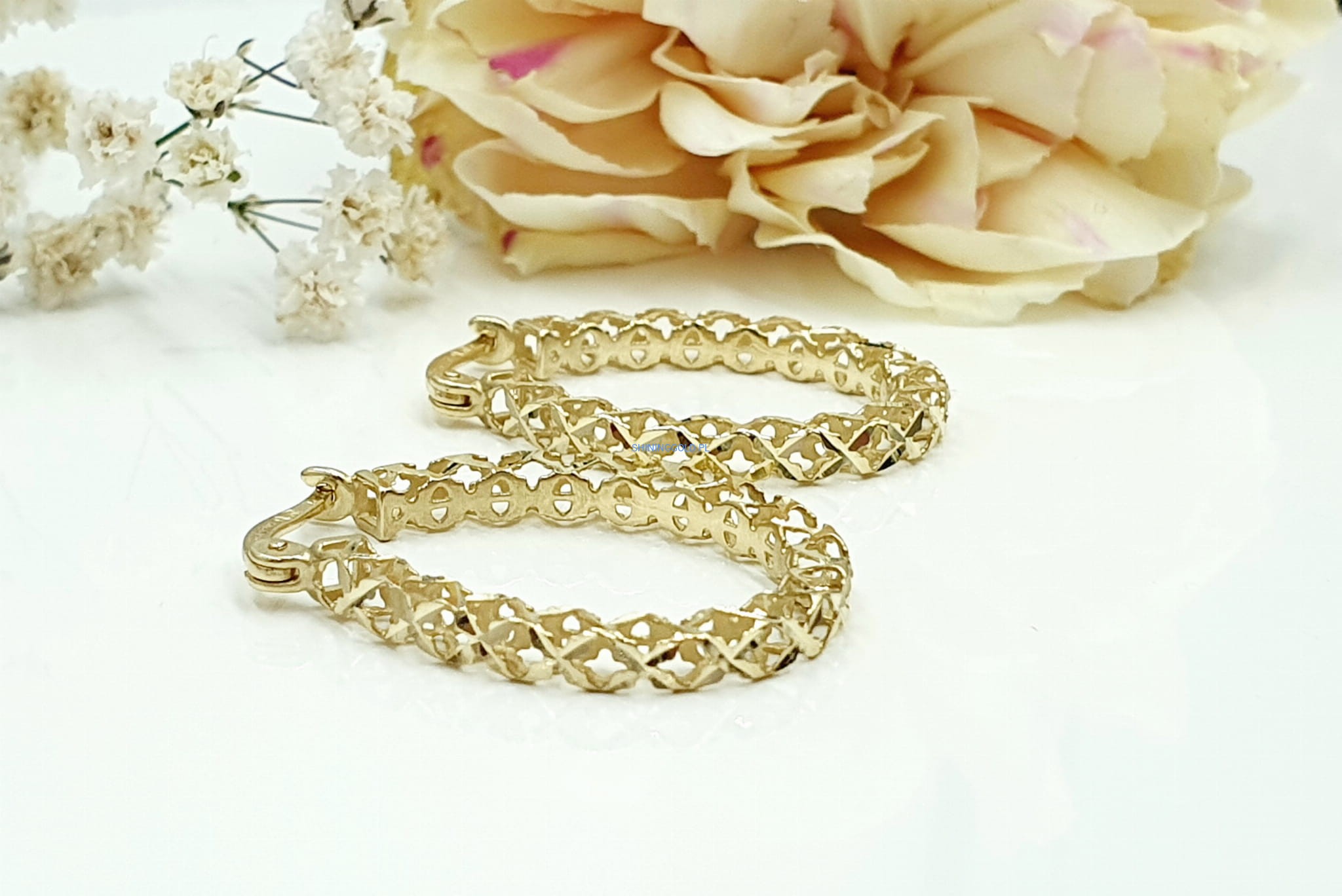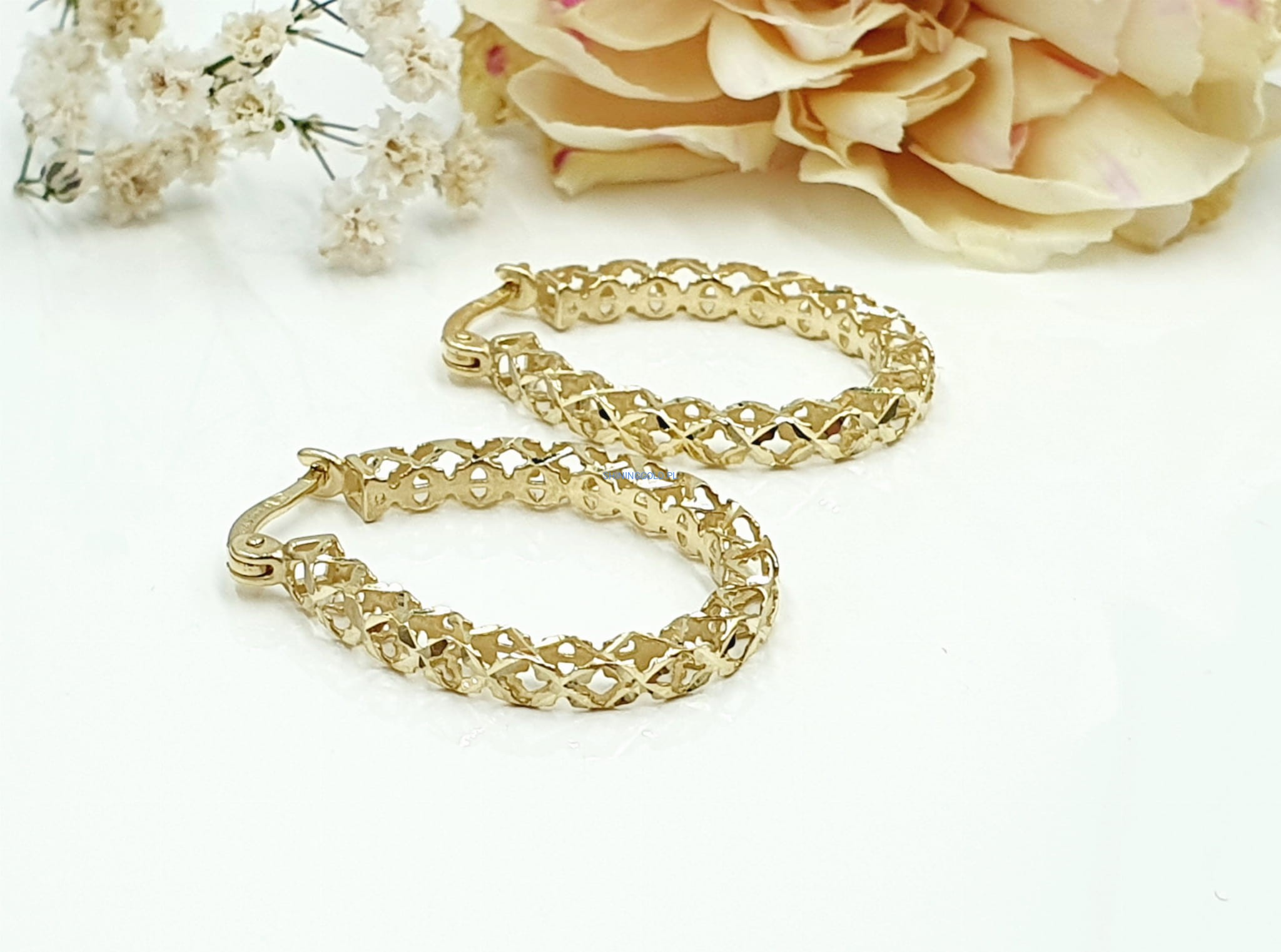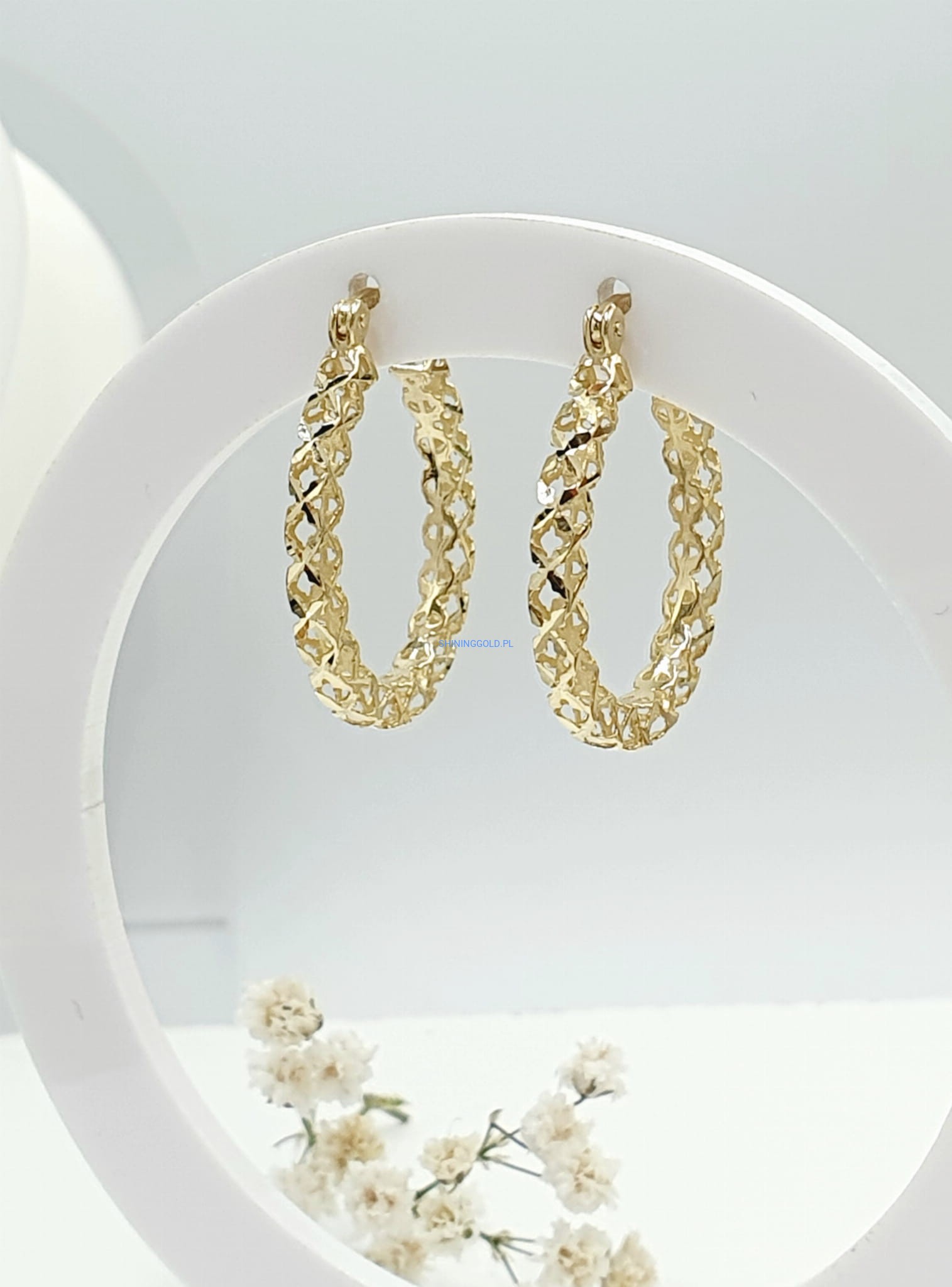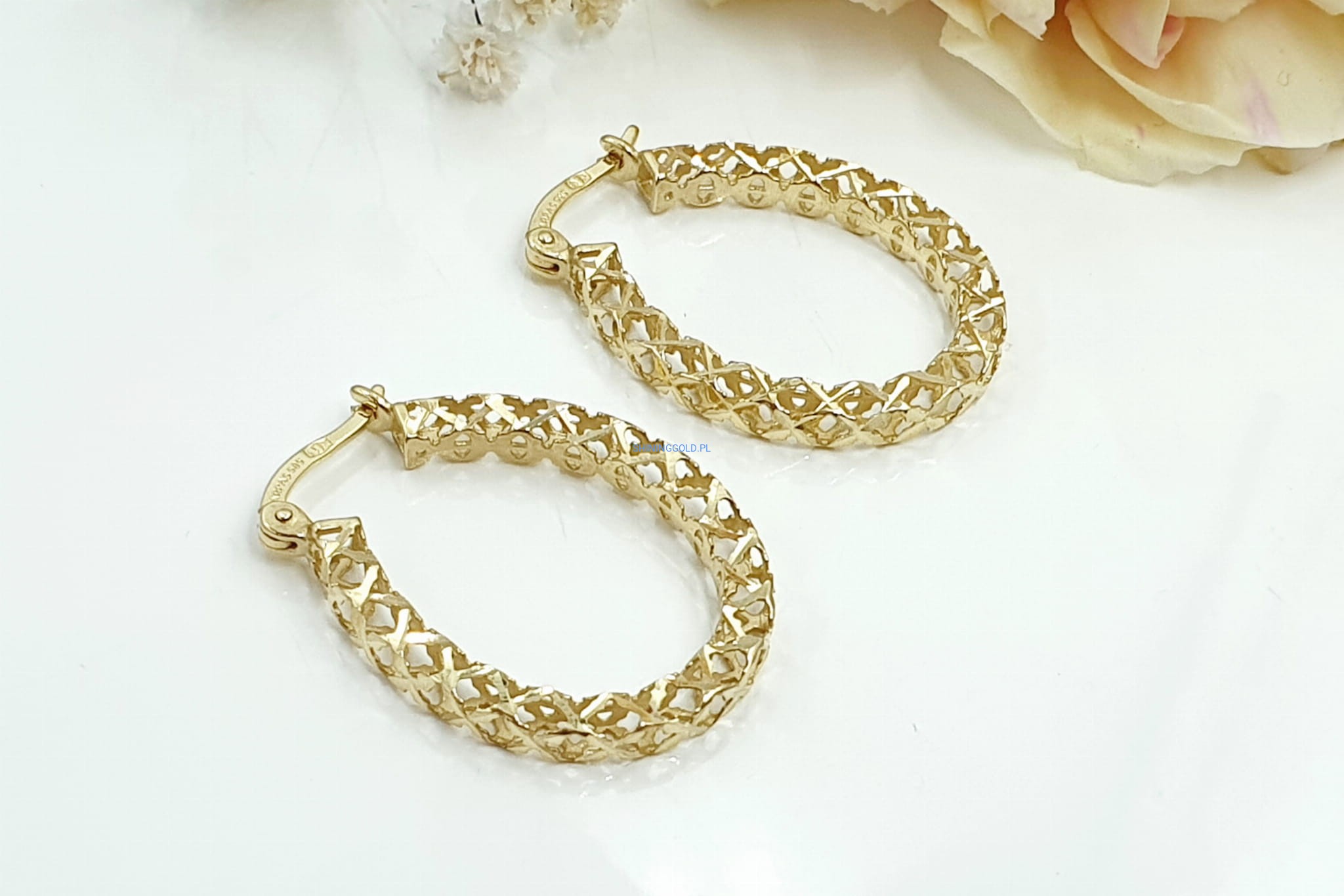 Te eleganckie ażurowe kolczyki wykonane z wysokiej jakości złota przyciągają uwagę swoim subtelnym, lekkim wzorem. Doskonałe na każdą okazję, będą pięknym uzupełnieniem codziennego lub wieczorowego stylu.
