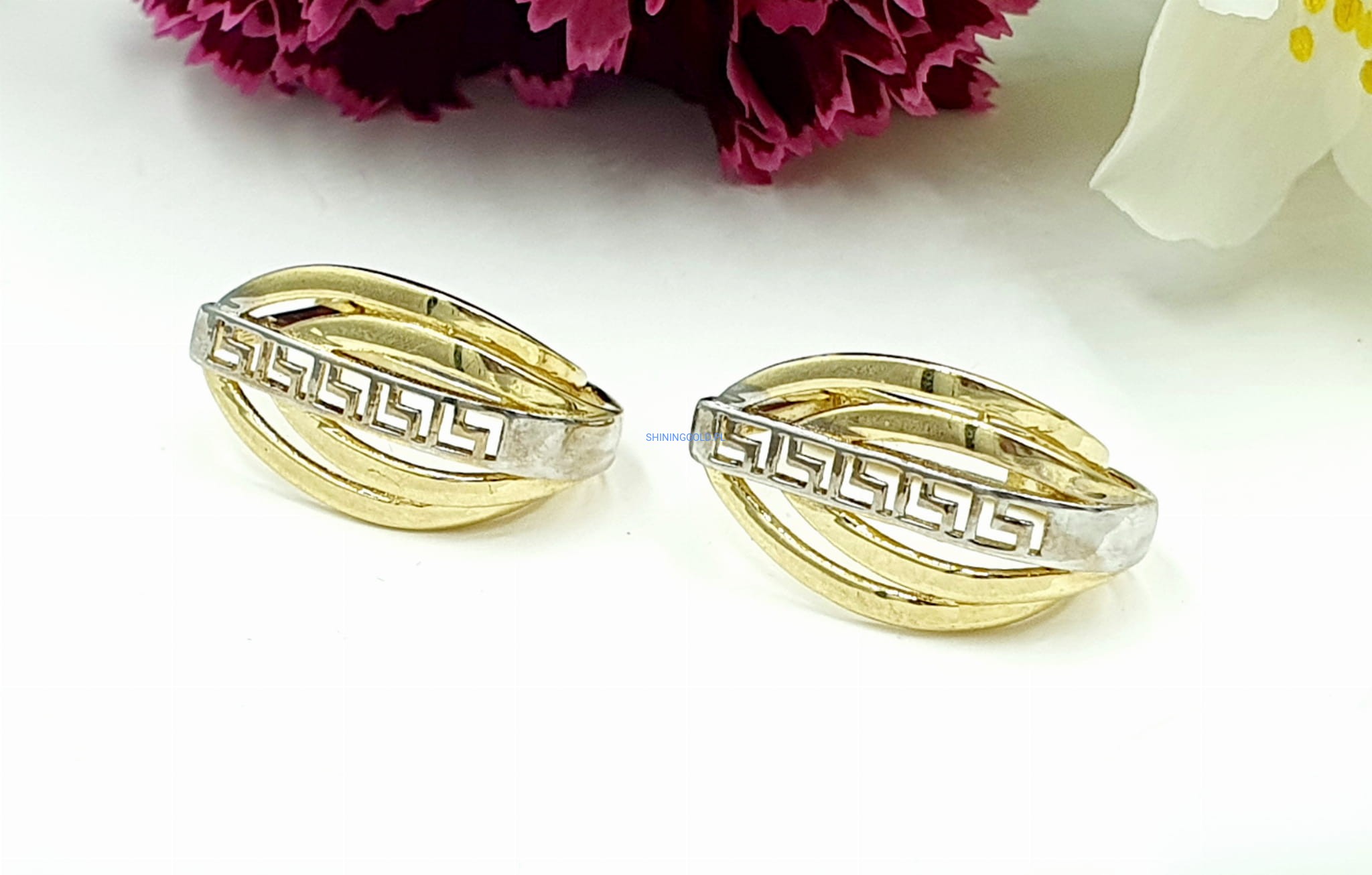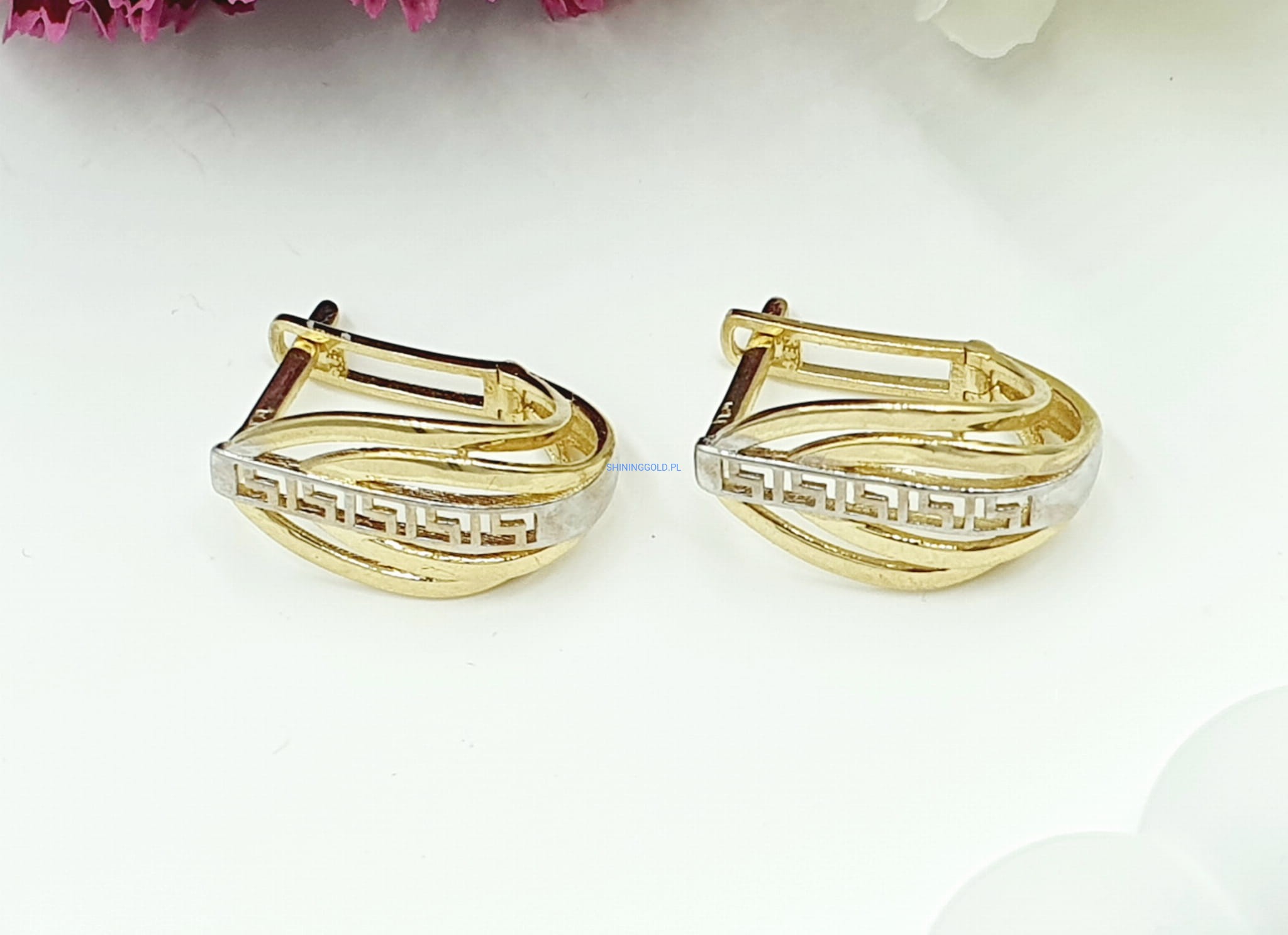 Dodaj odrobinę starożytnego blasku do swojej kolekcji biżuterii dzięki tym eleganckim złotym kolczykom. Wykonane z próby złota 585, te kolczyki cechują się klasycznym greckim wzorem, który nadaje im ponadczasowy i wyrafinowany wygląd.