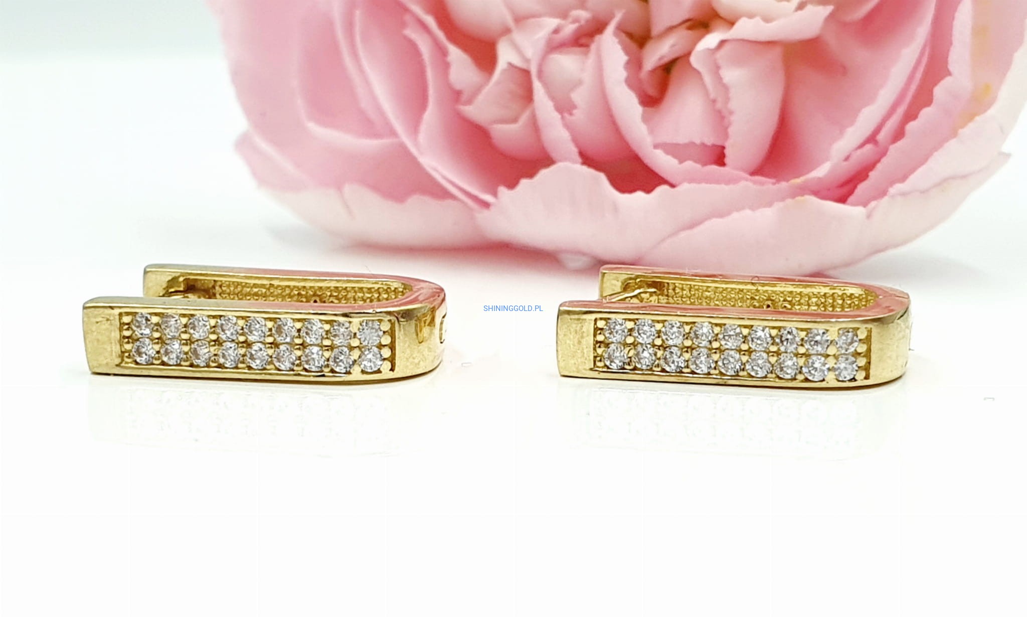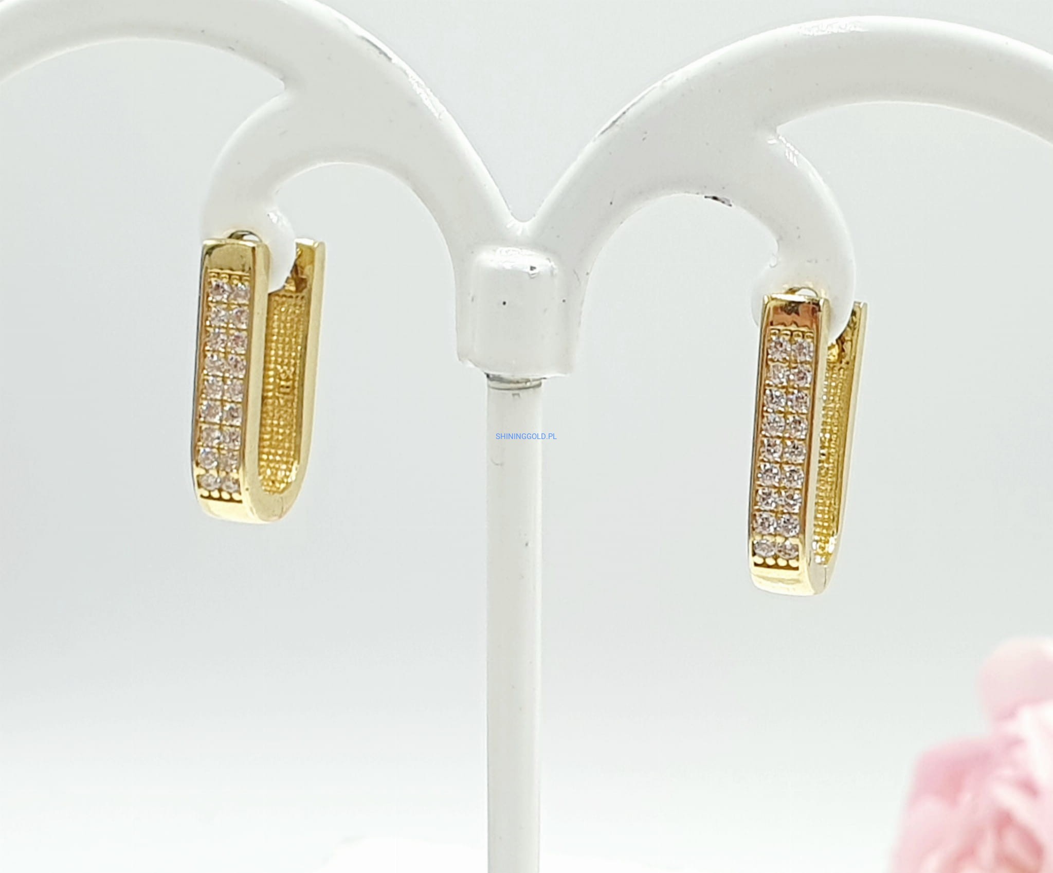 - Lśniące cyrkonie: Kolczyki zdobią piękne, lśniące cyrkonie, które przyciągają uwagę i dodają im elegancji.