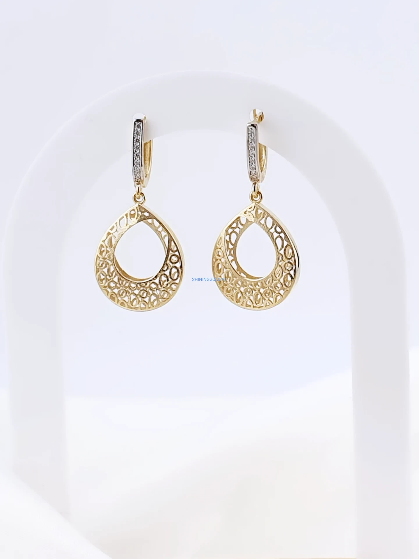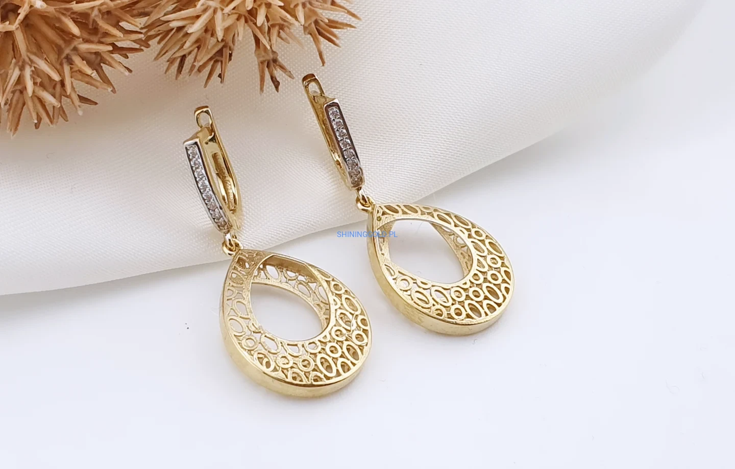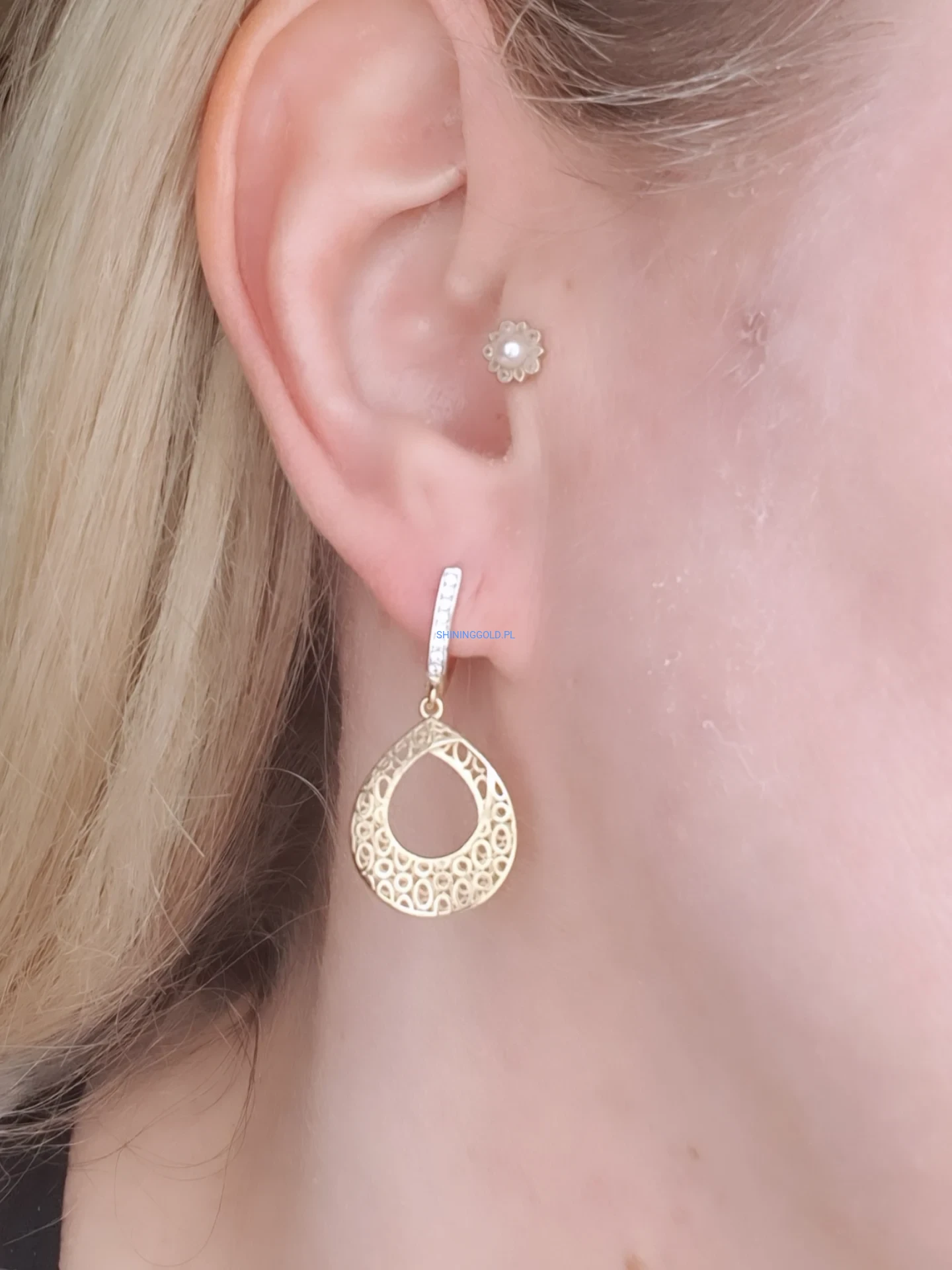 Złote kolczyki ażurowe łezki to połączenie klasycznej formy i subtelnej elegancji. Wykonane z żółtego złota próby 375, zachwycają lekkim, przestrzennym wzorem oraz delikatnym połyskiem. Ich kobiecy kształt łezki pięknie wysmukla twarz, dodając blasku każdej stylizacji – zarówno codziennej, jak i wieczorowej.